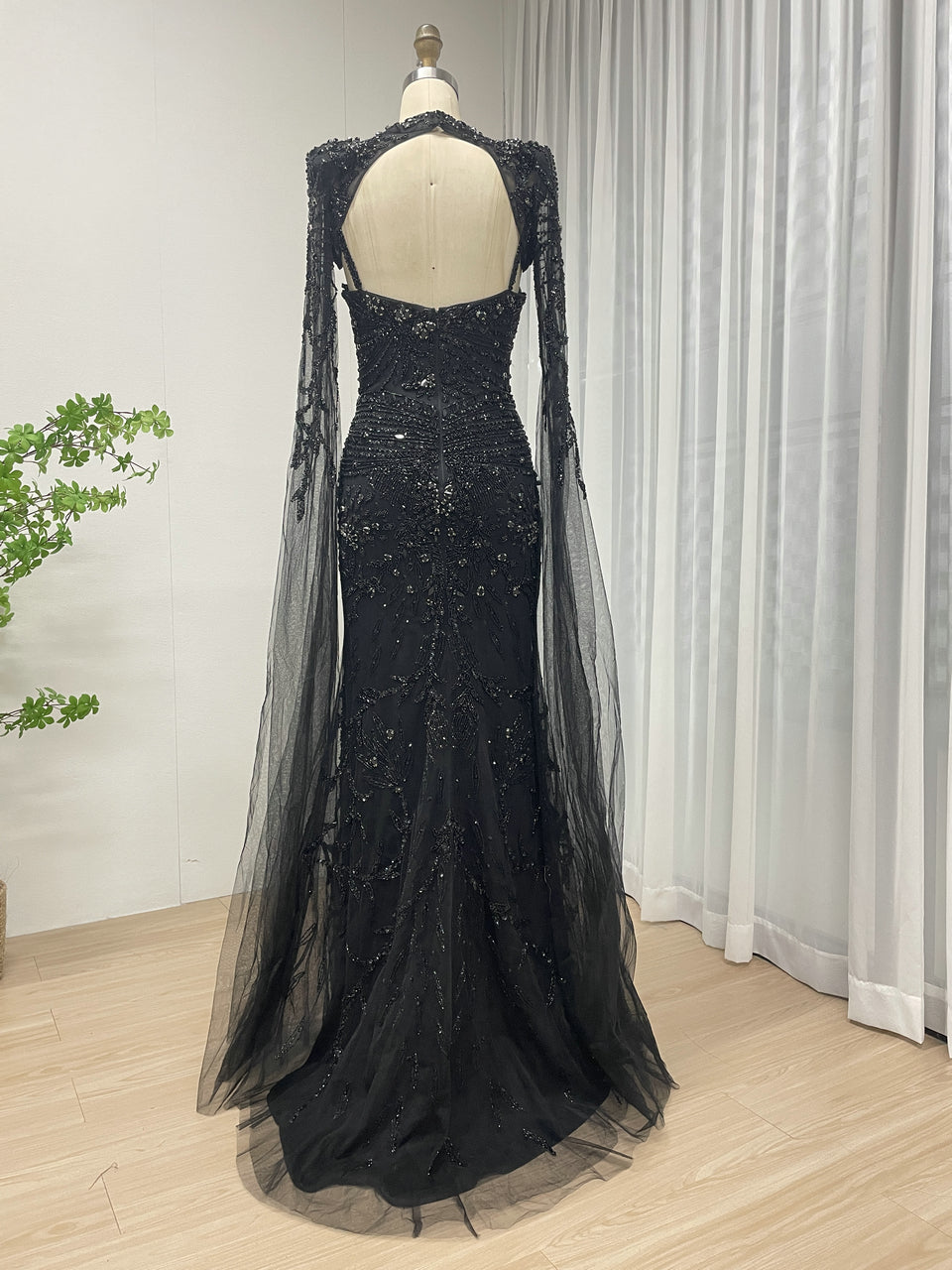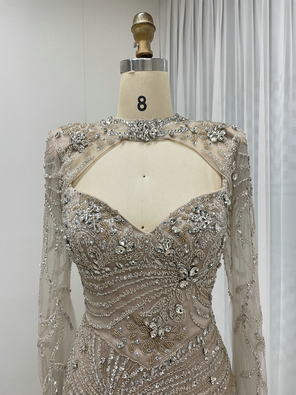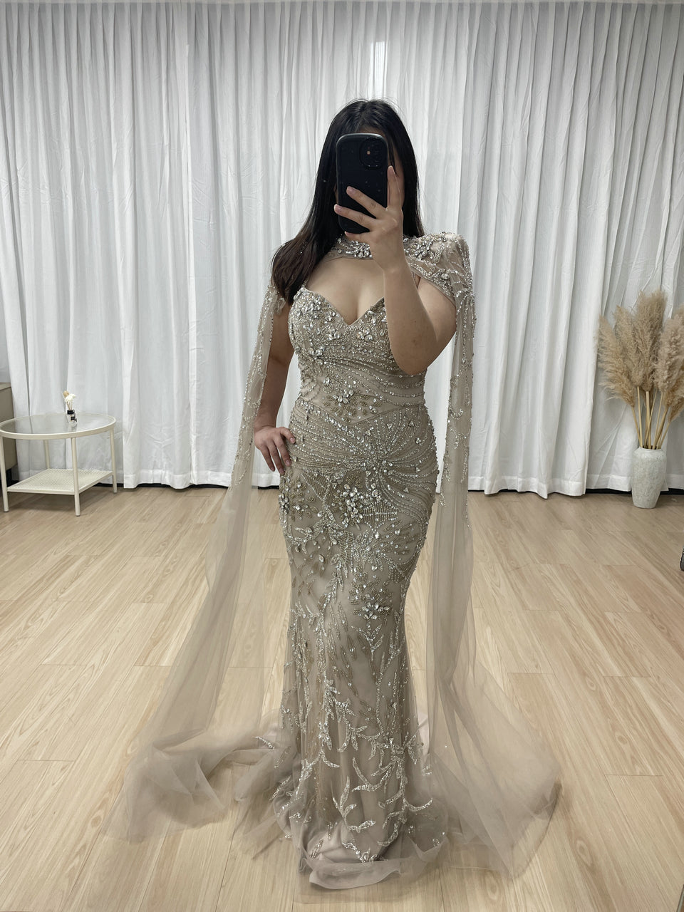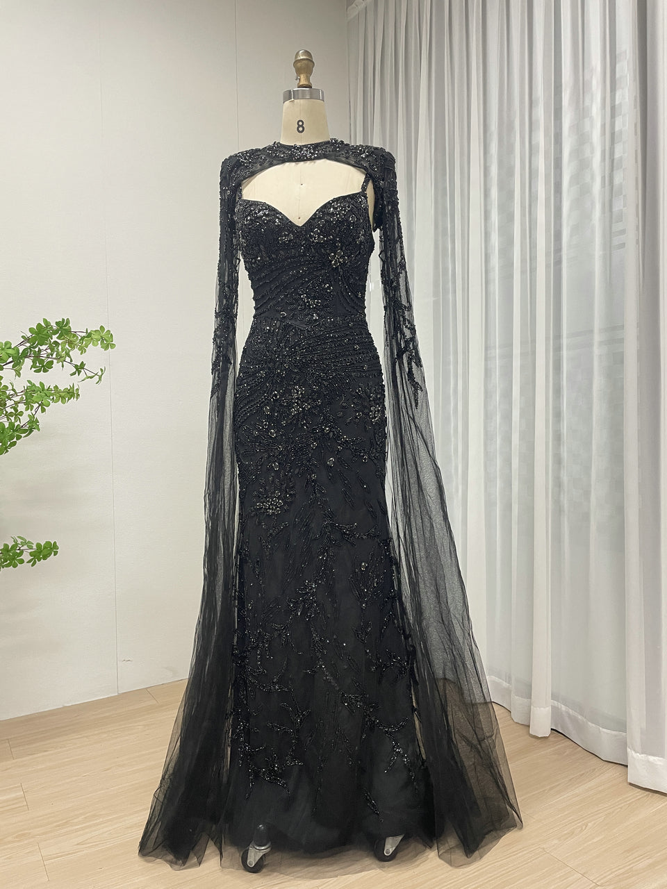 Glamorous Handmade Beading Removable Cape Sleeve Wedding Party Mother Of Bride Dress MB40236-2