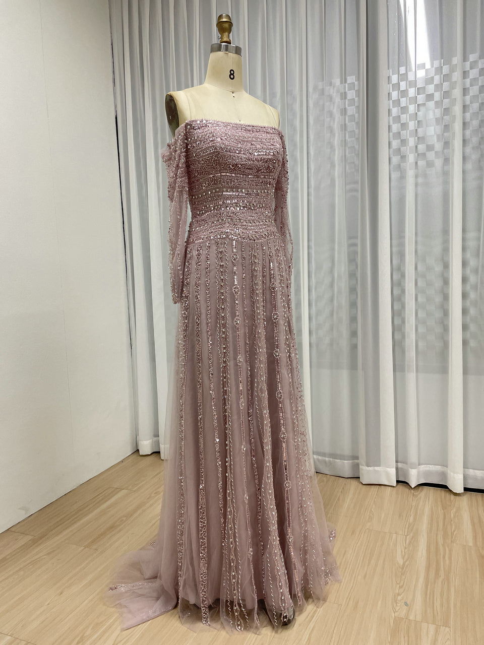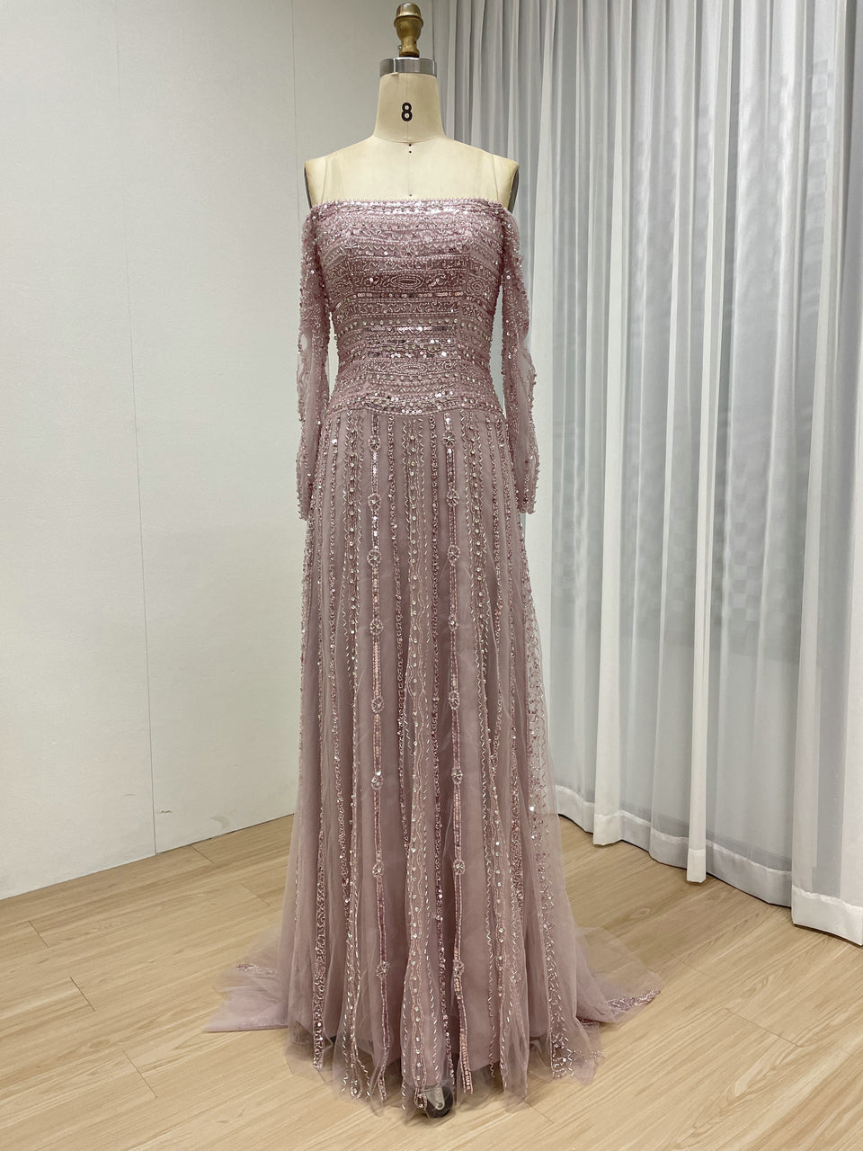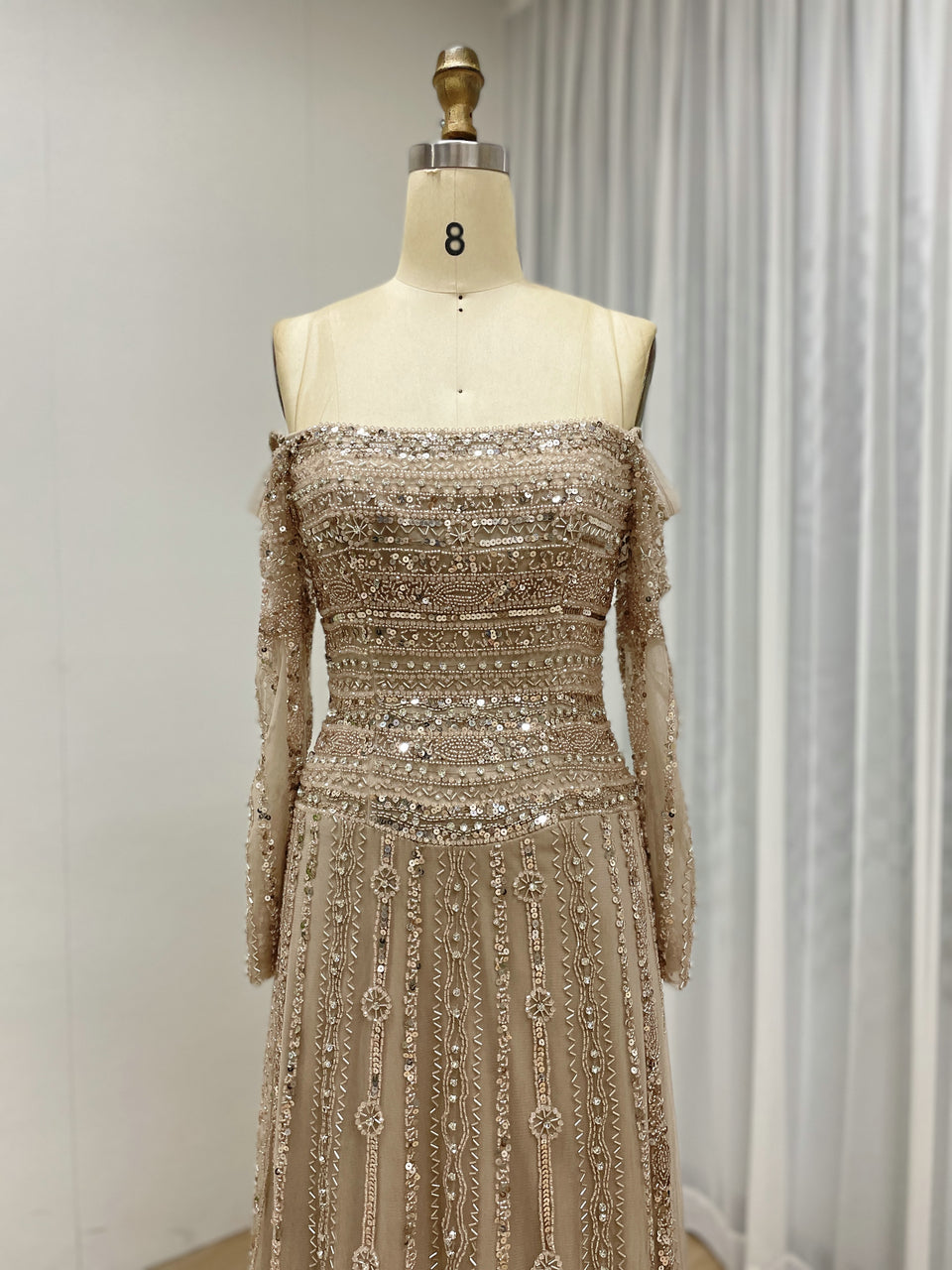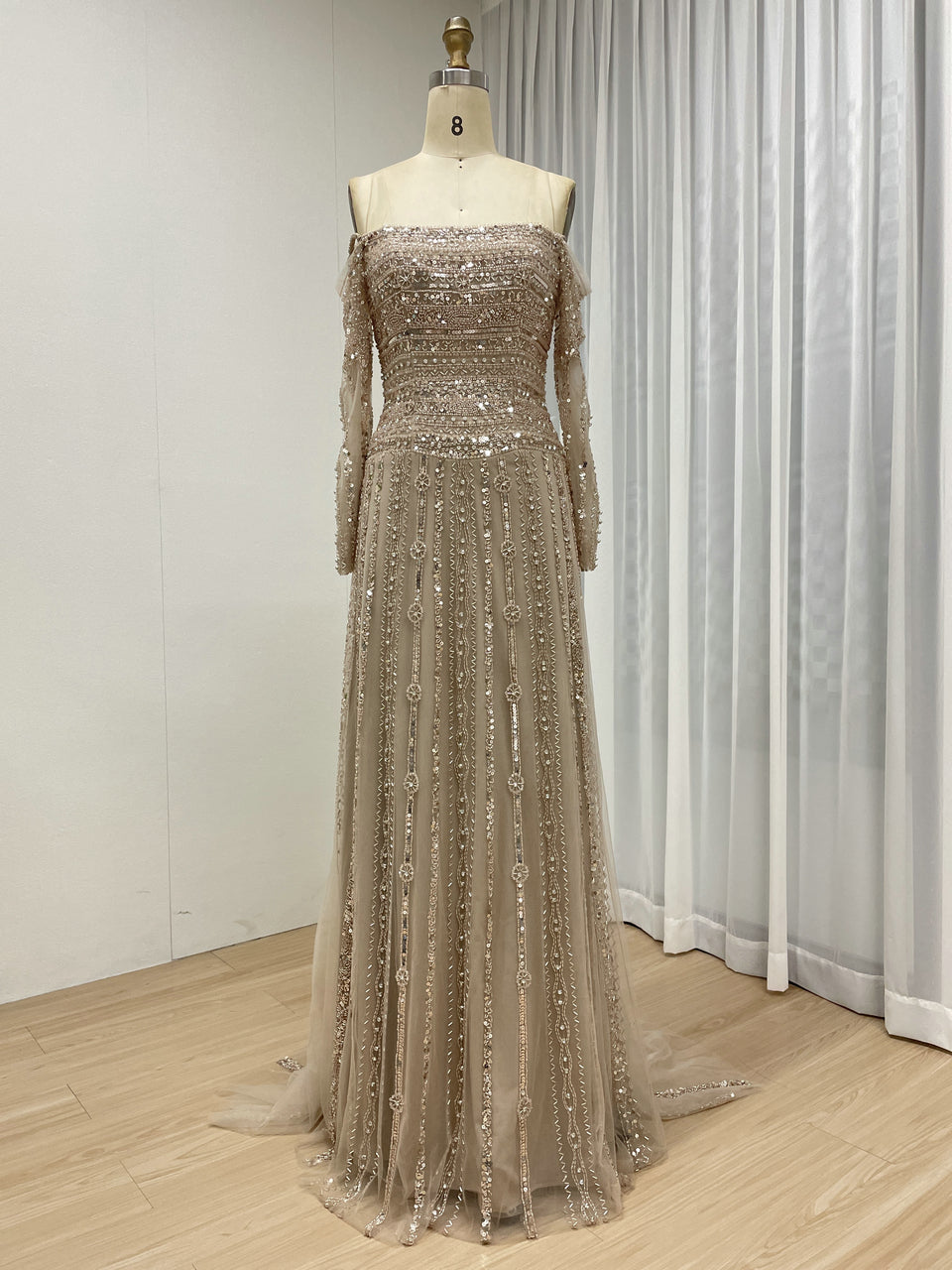 Glamorous Off Shoulder Haute Couture Long Sleeve Evening Dress A Line Skirt MB40385