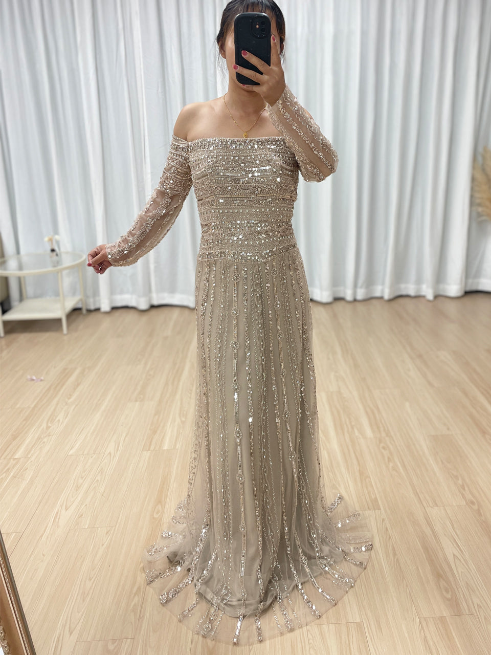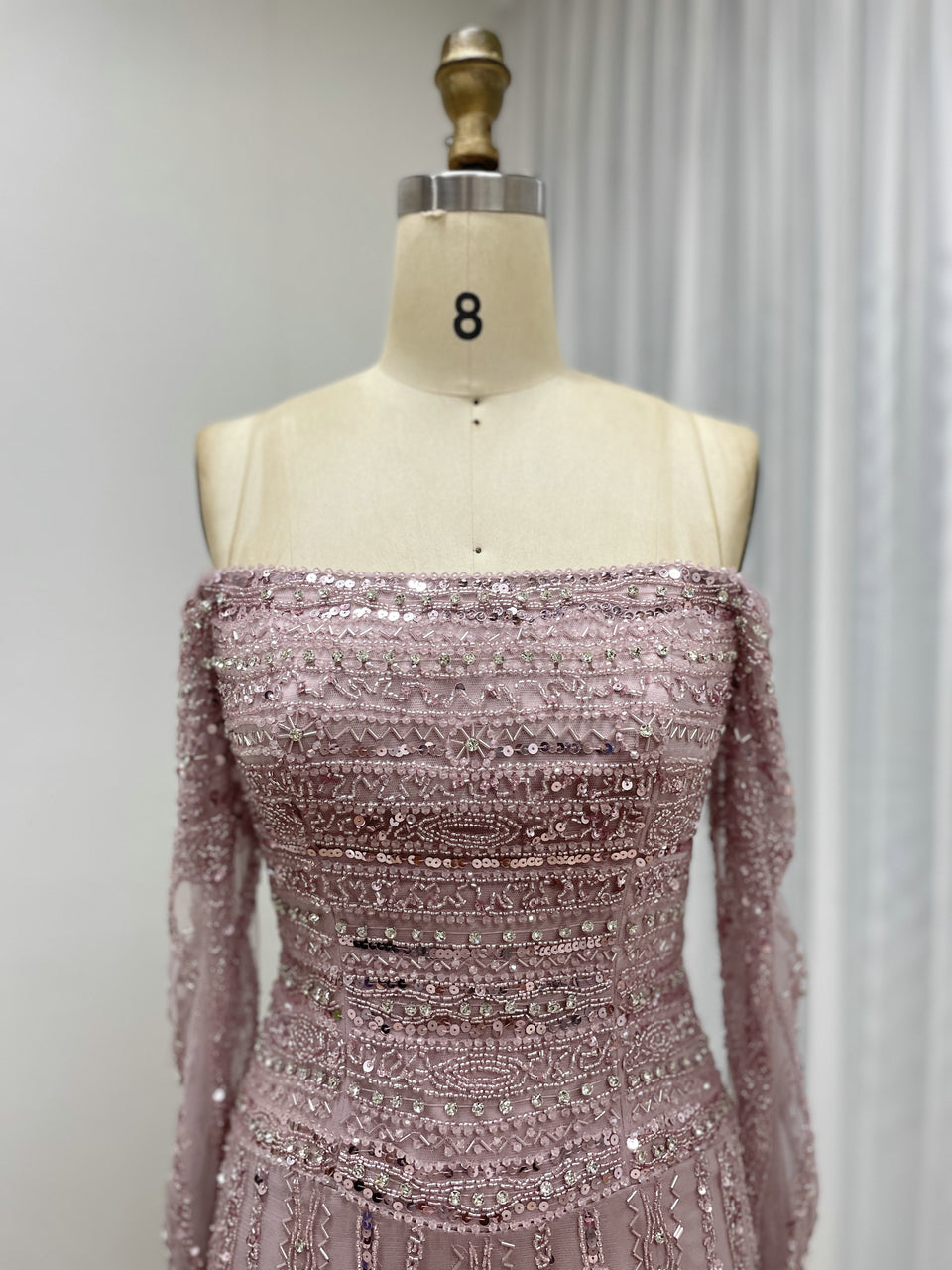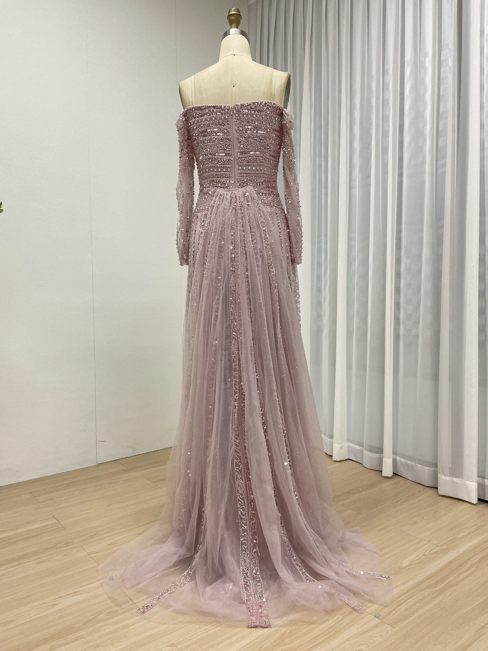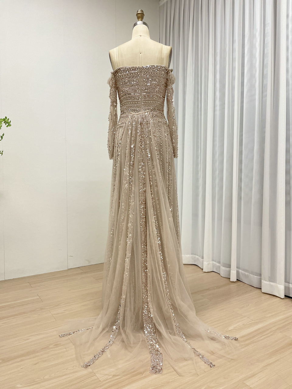 Glamorous Off Shoulder Haute Couture Long Sleeve Evening Dress A Line Skirt MB40385