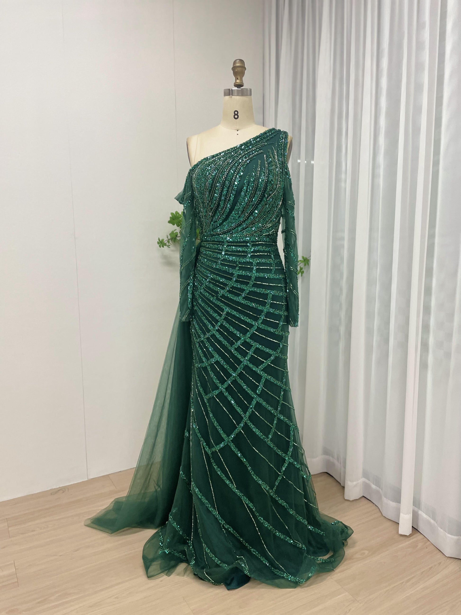 Glamorous One Shoulder Haute Couture Long Sleeve Wedding Party Evening Dress MB40167