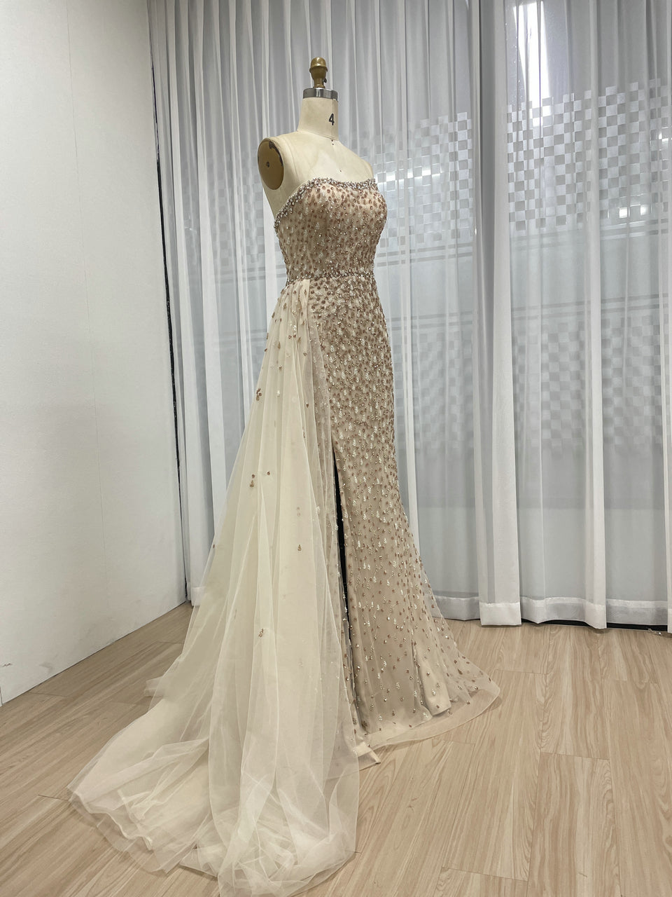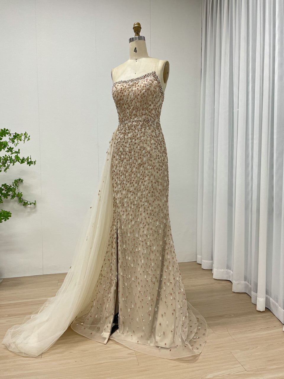 Golden Sexy Hight Slit Sleeveless Evening Gown Suitable for Banquet With Side Train MB40352