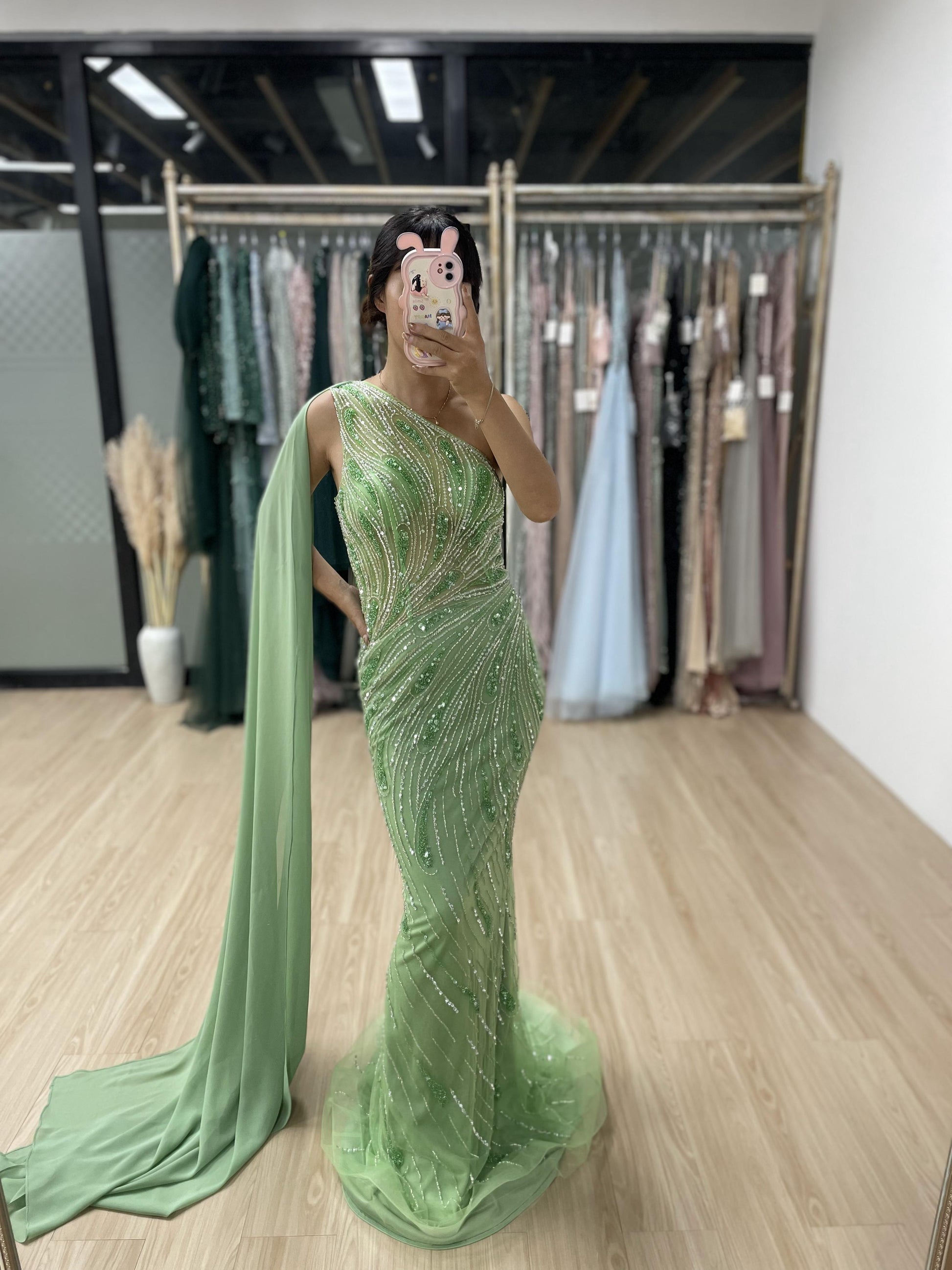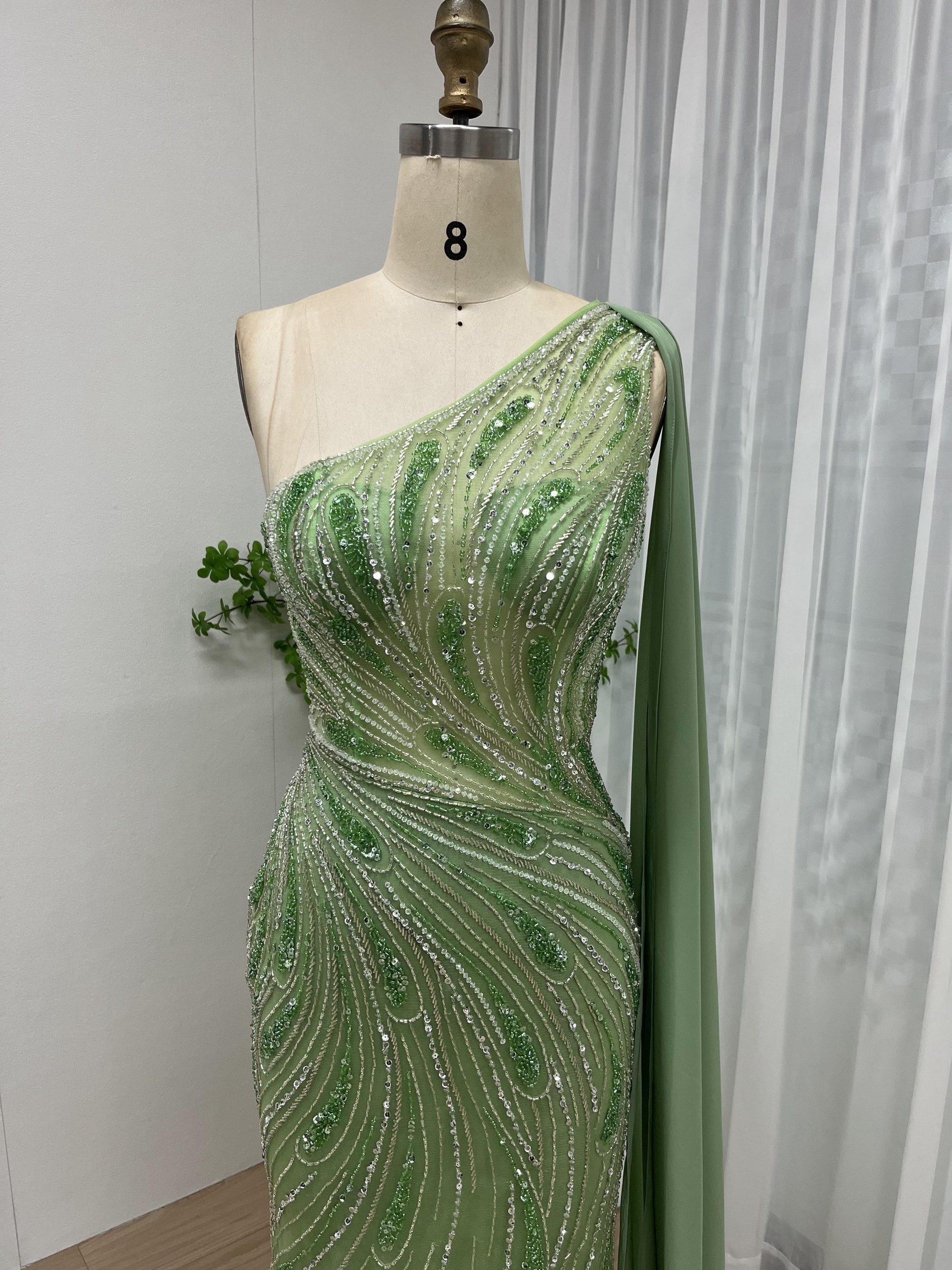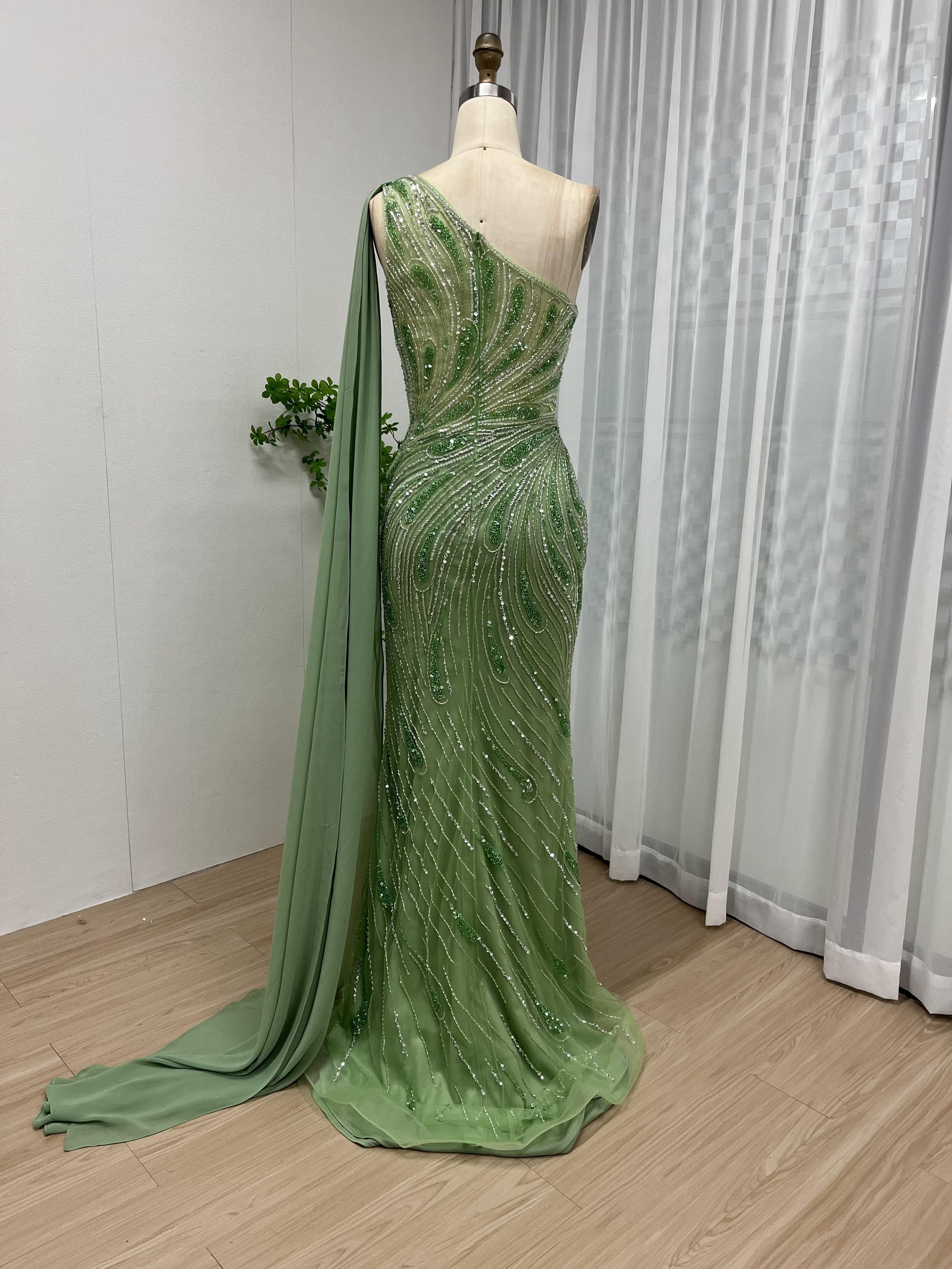 Graceful One Shoulder Handmade Beading Evening Dress MB40056-2