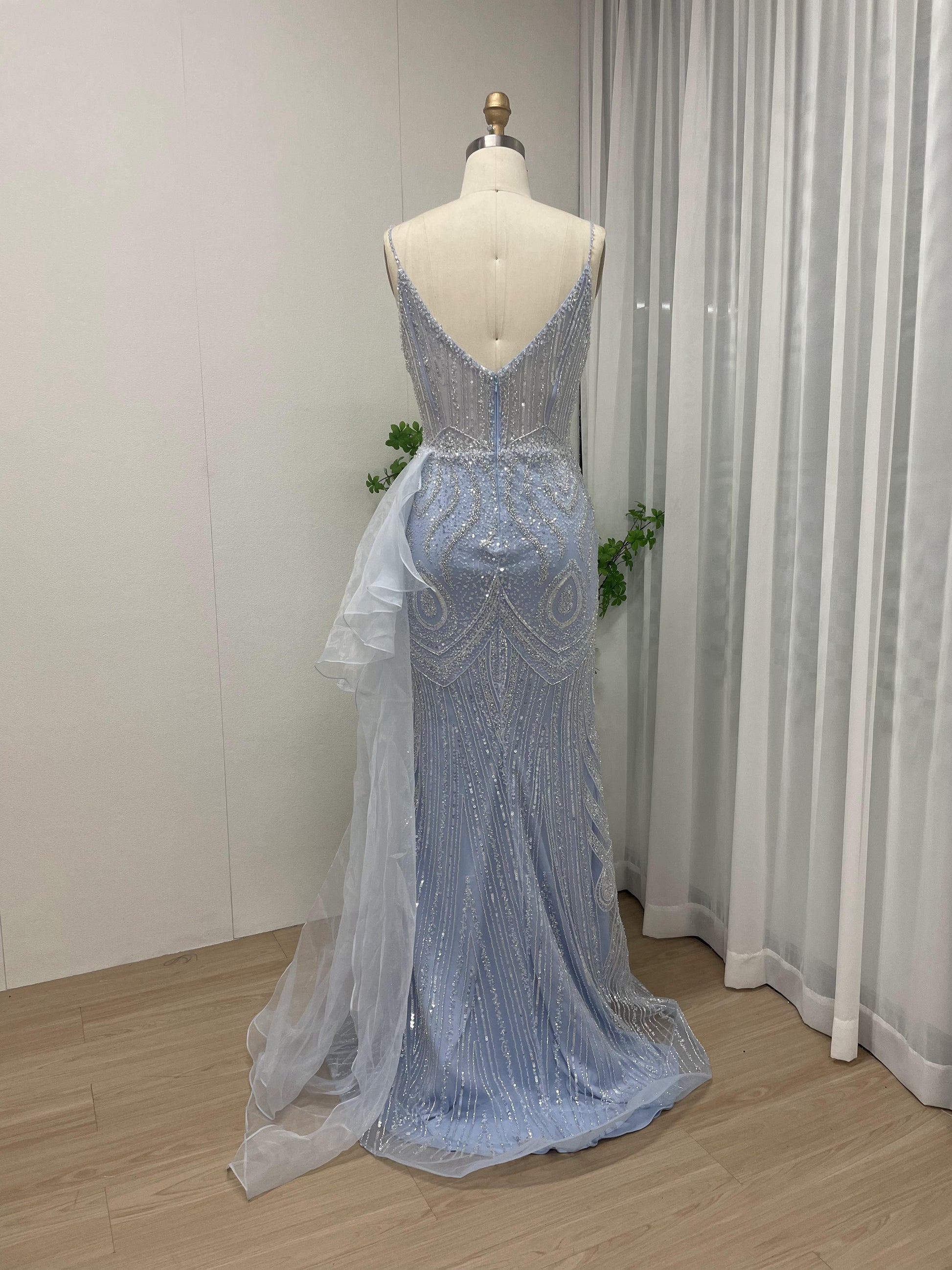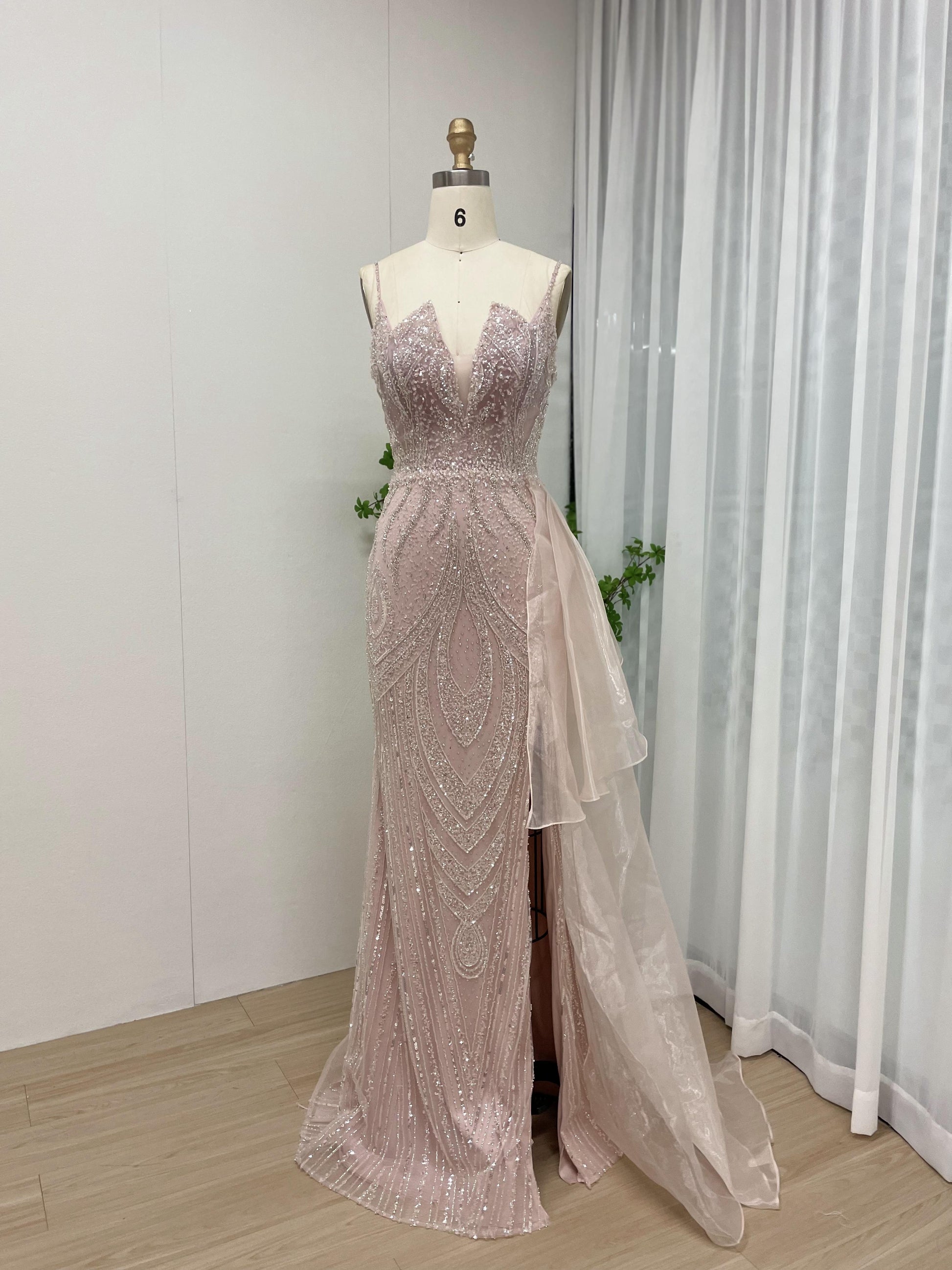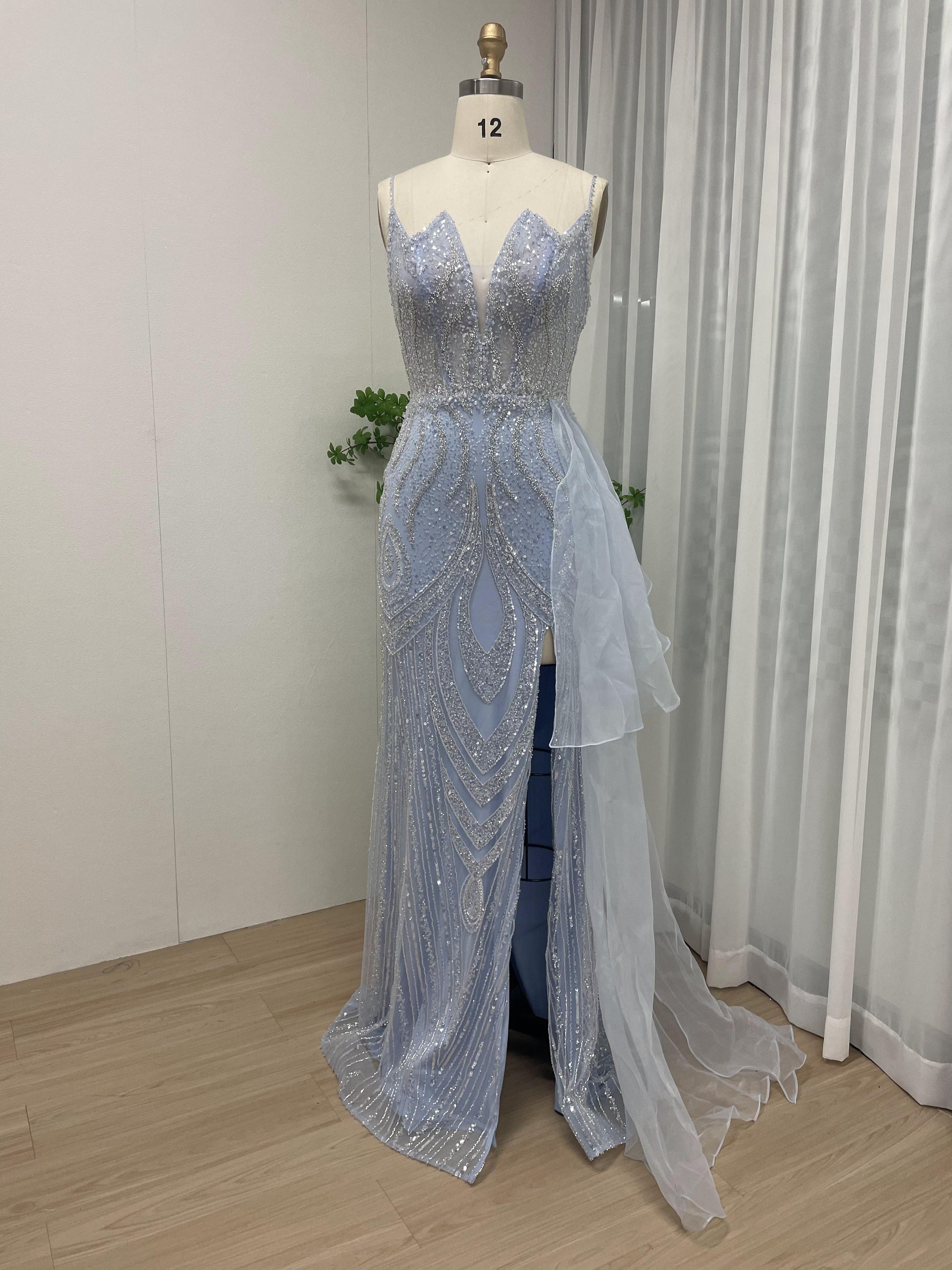 Graceful Spaghetti Strap V Back High Split Evening Prom Dress MB40143