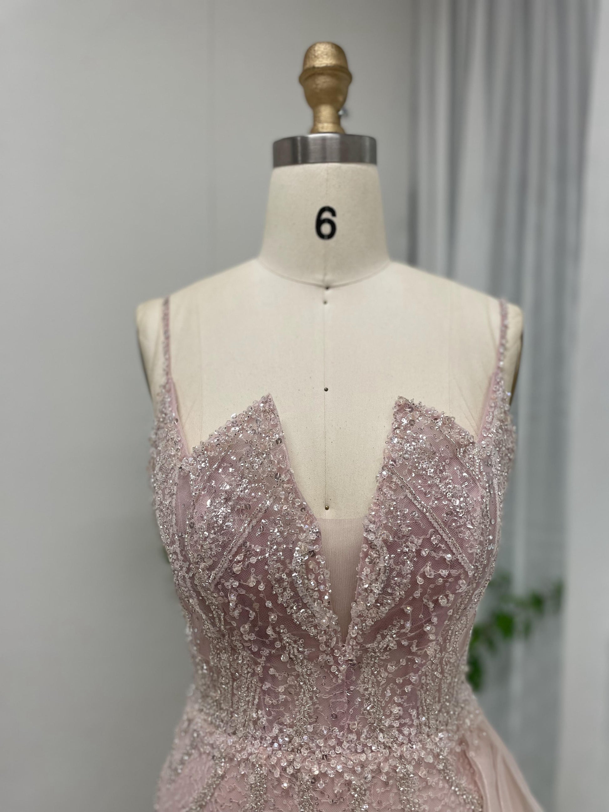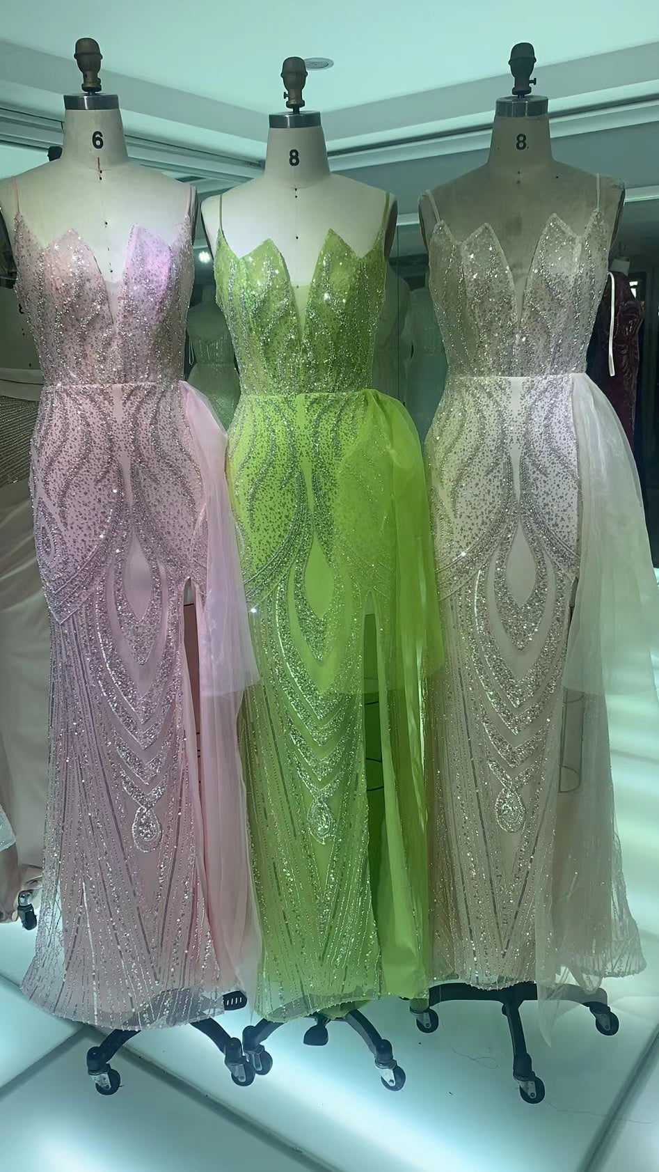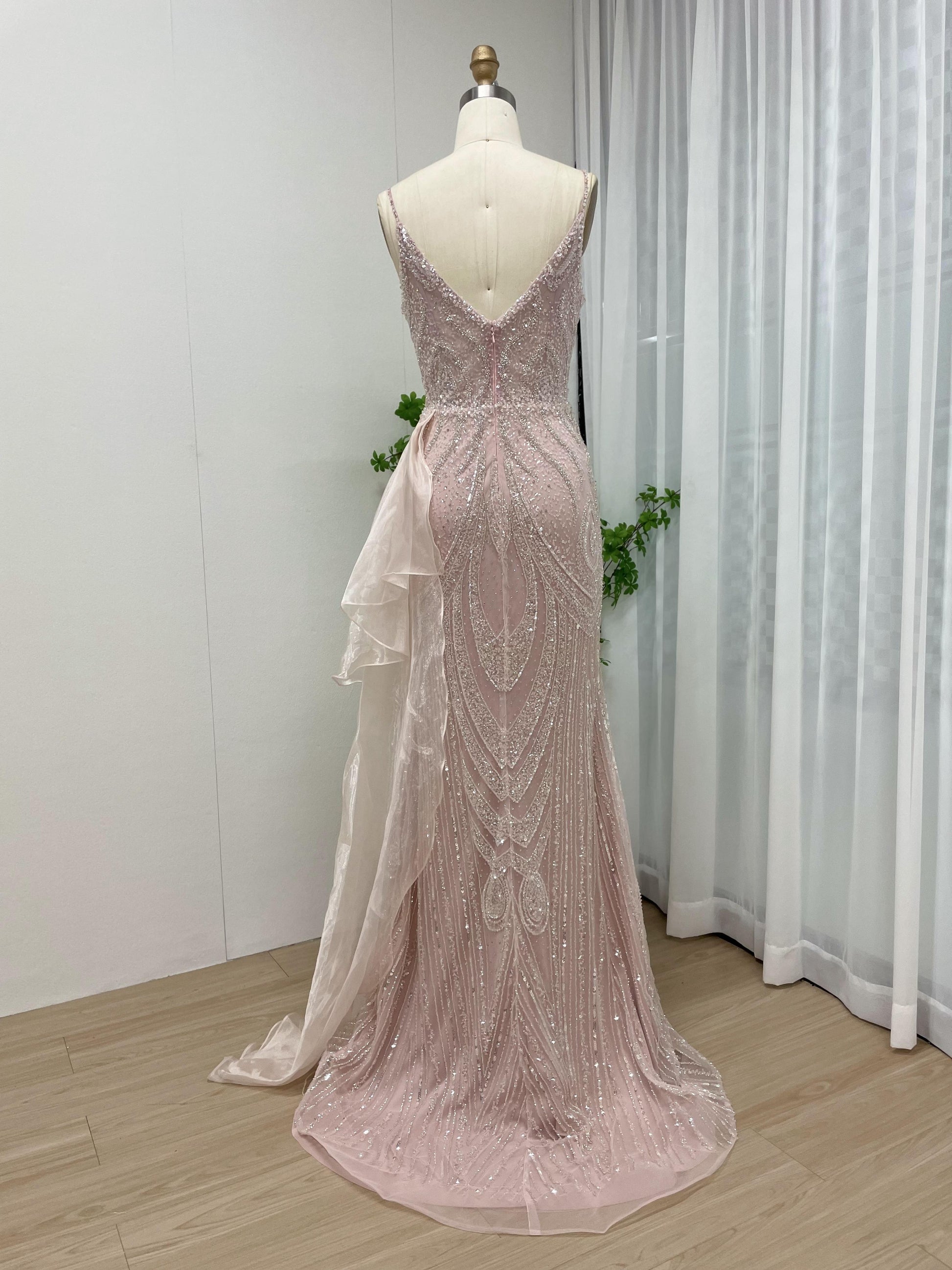 Graceful Spaghetti Strap V Back High Split Evening Prom Dress MB40143