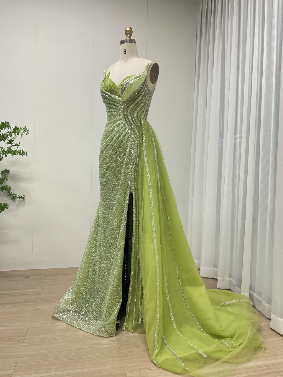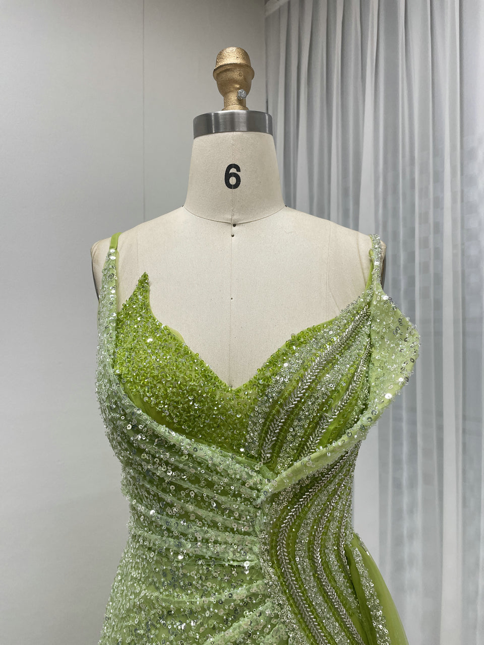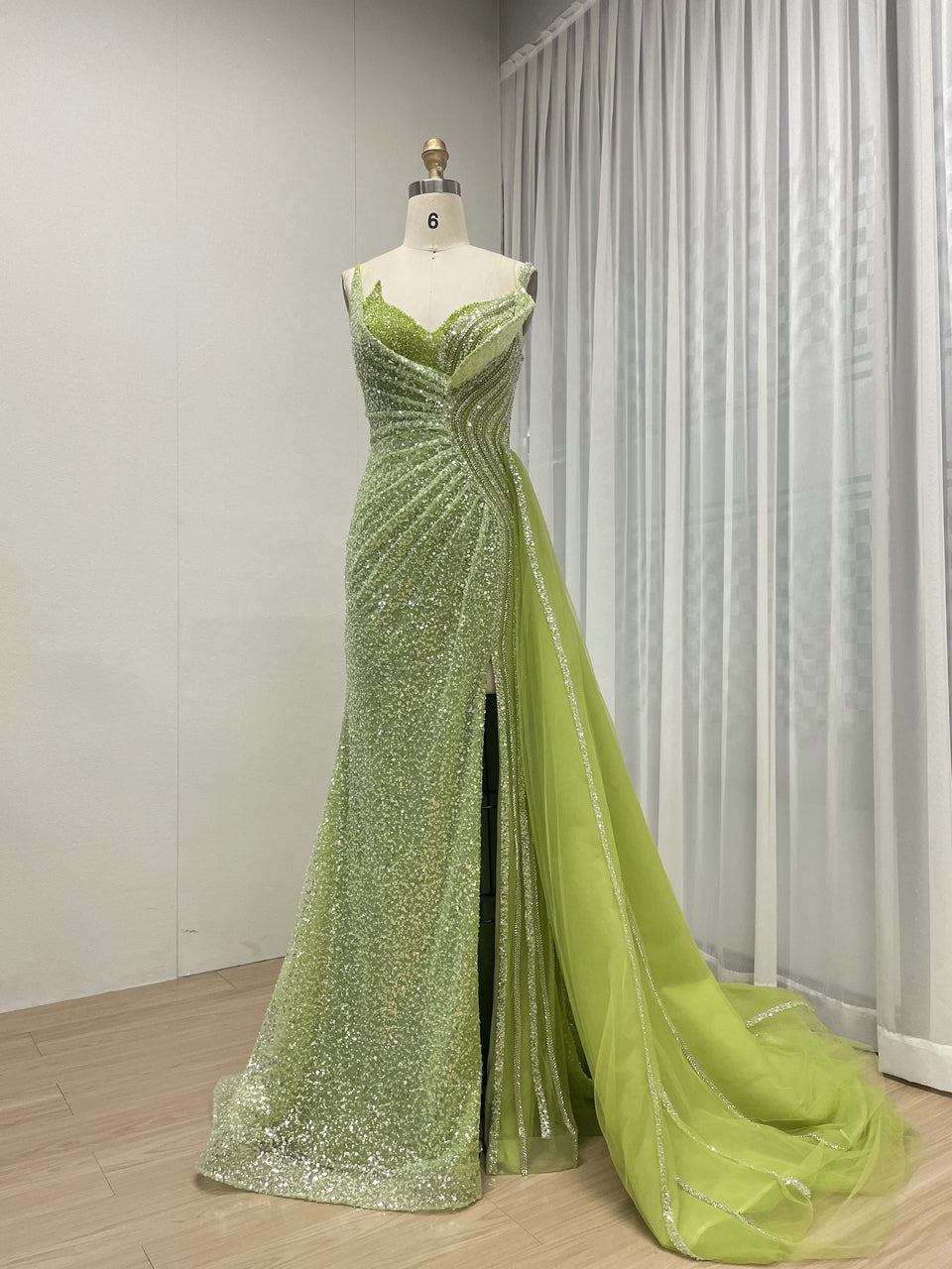 Green Bridesmaid Dresses Crystal Beading With Hjgh Slit Evening Gowns for Women Dress Long MB40307