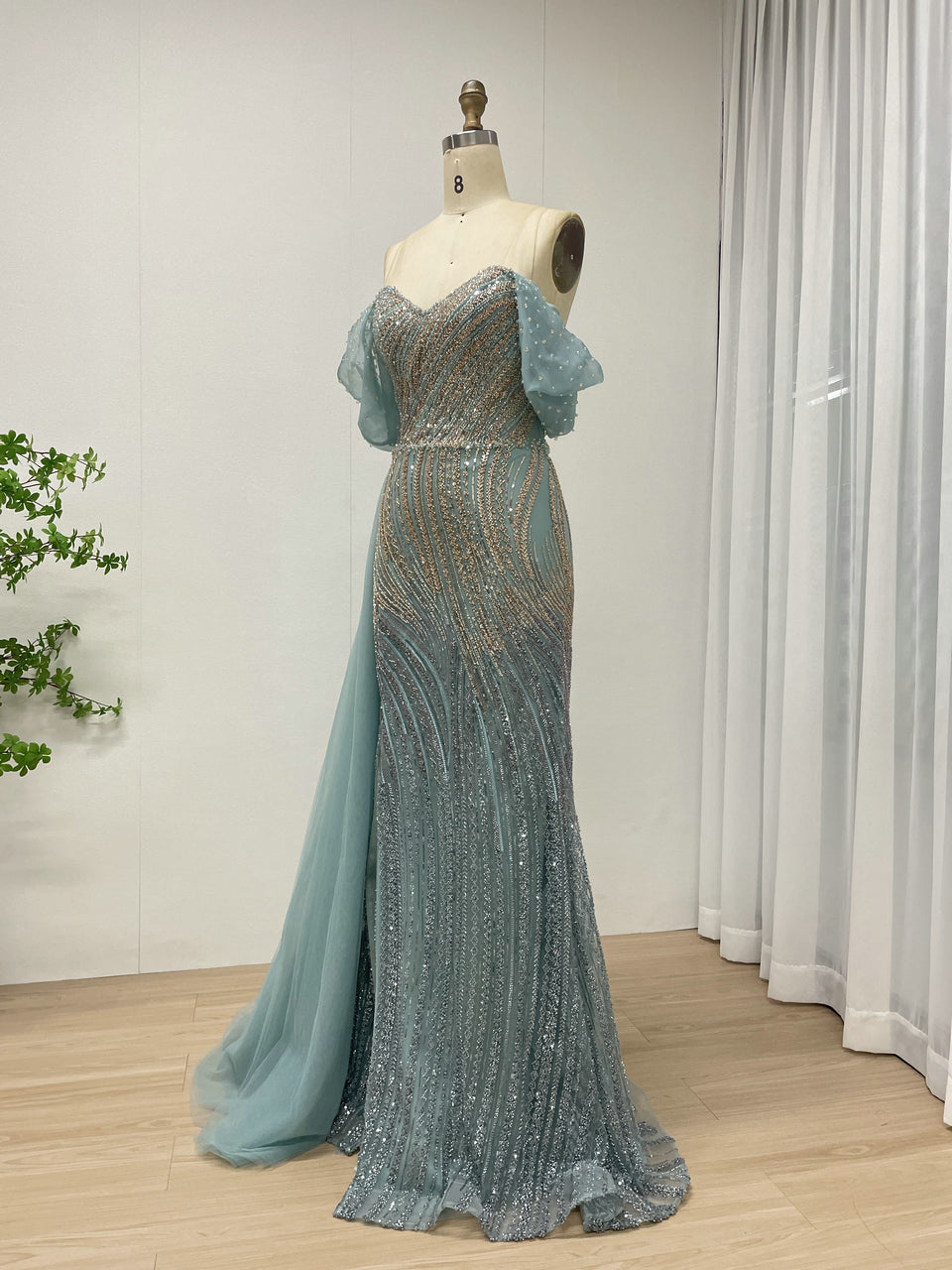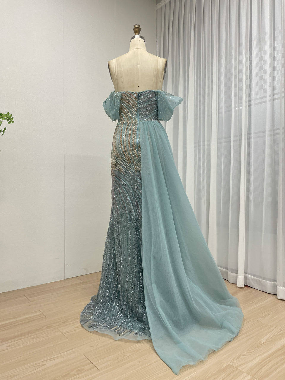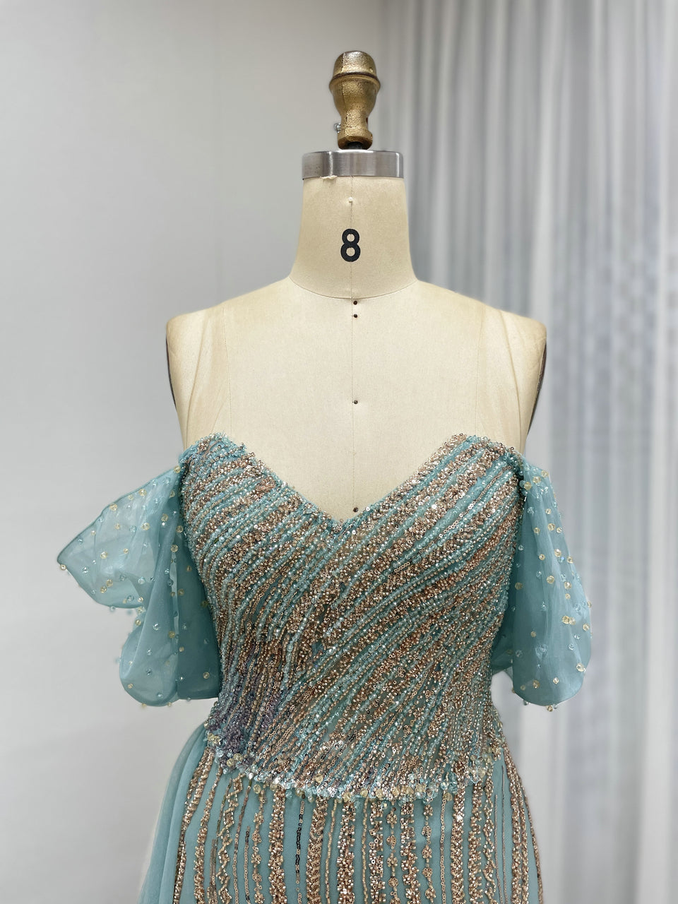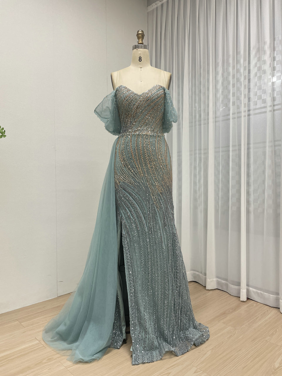 Green Luxurious Sweetheart Off Shoulder Prom Dresses with High Split for Women Dress Plus Size MB40419