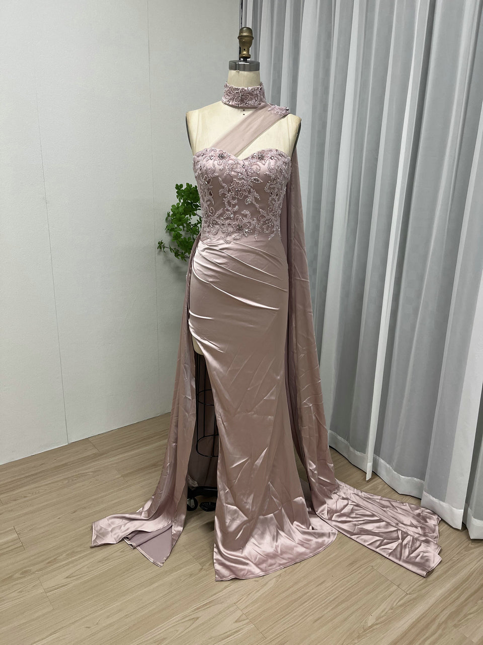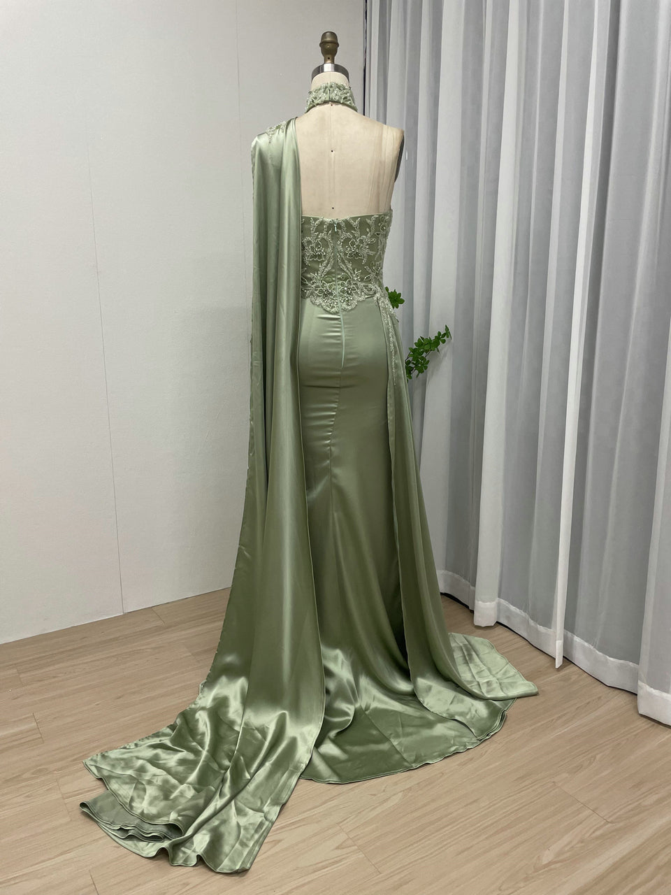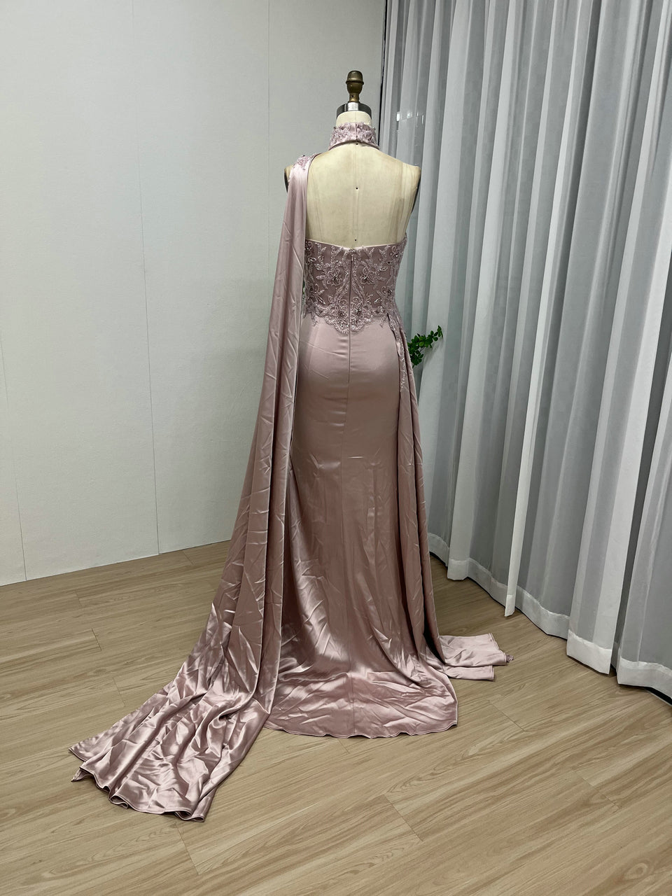 Halter Neck High Split Shoulder Cape Evening Dress MY30021