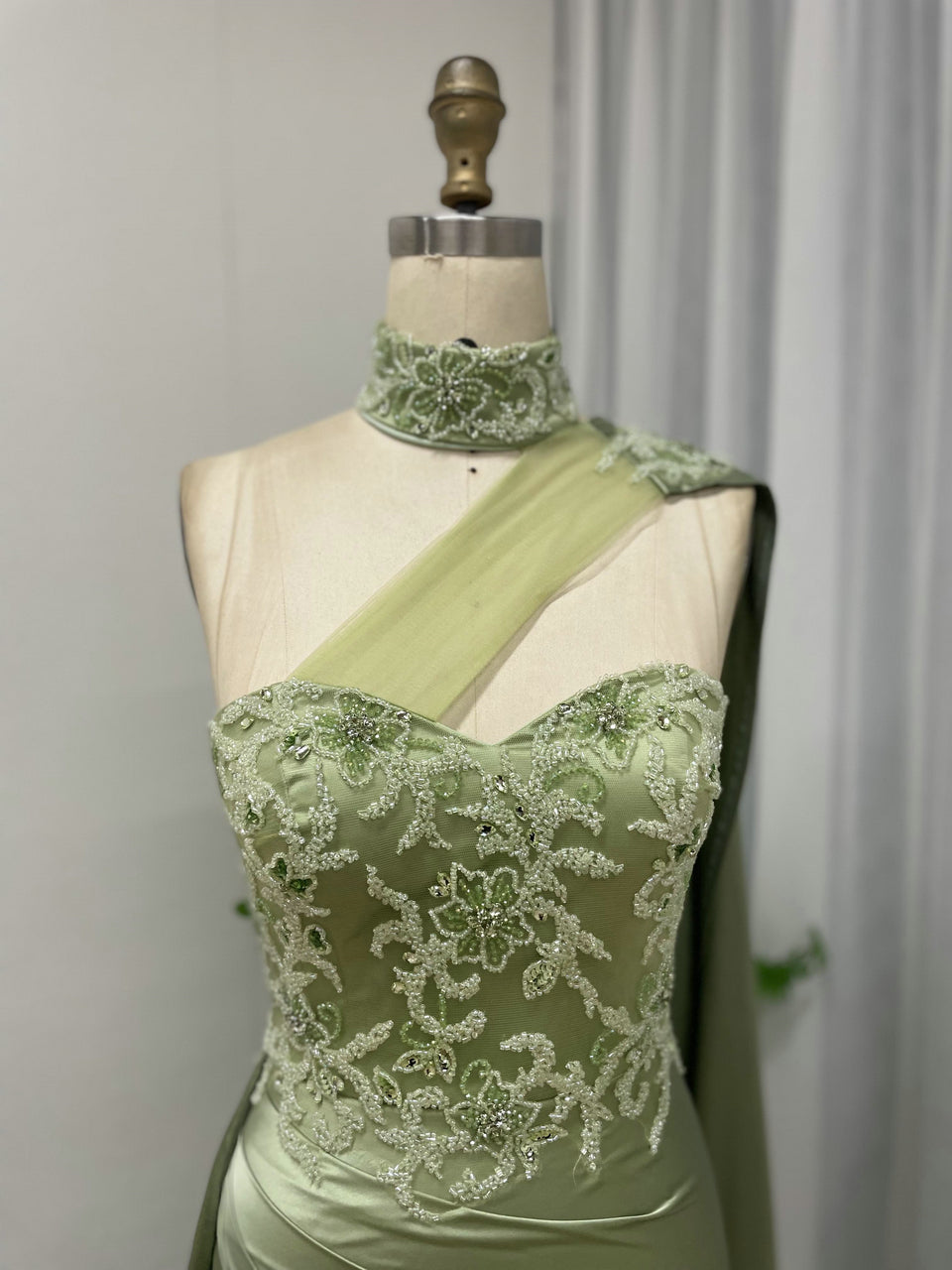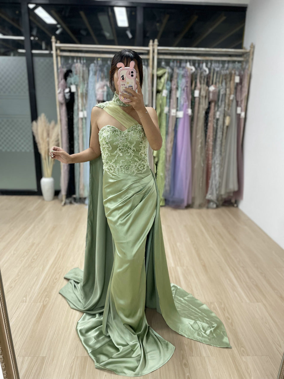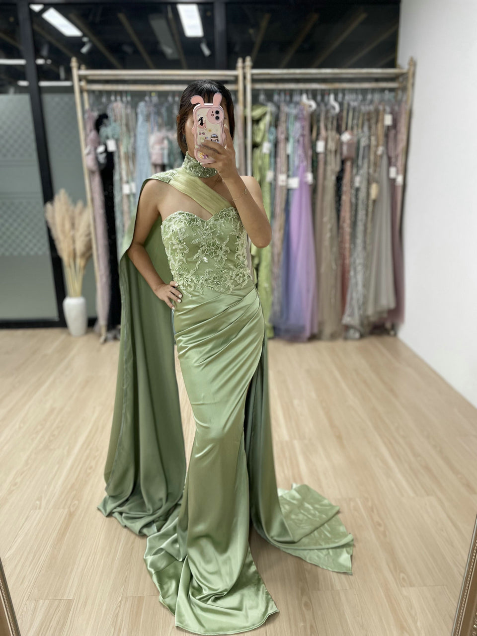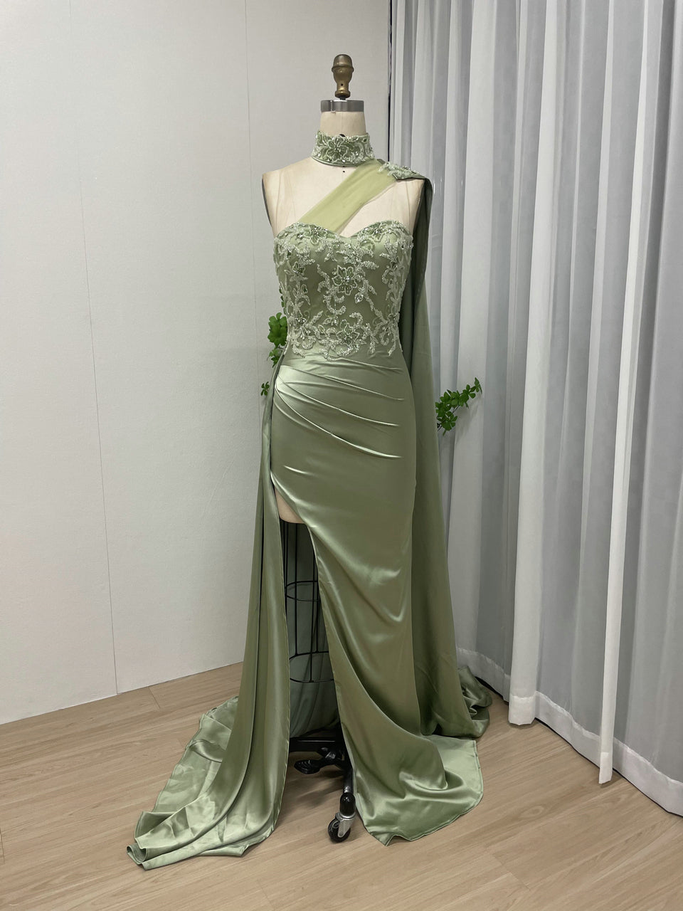 Halter Neck High Split Shoulder Cape Evening Dress MY30021