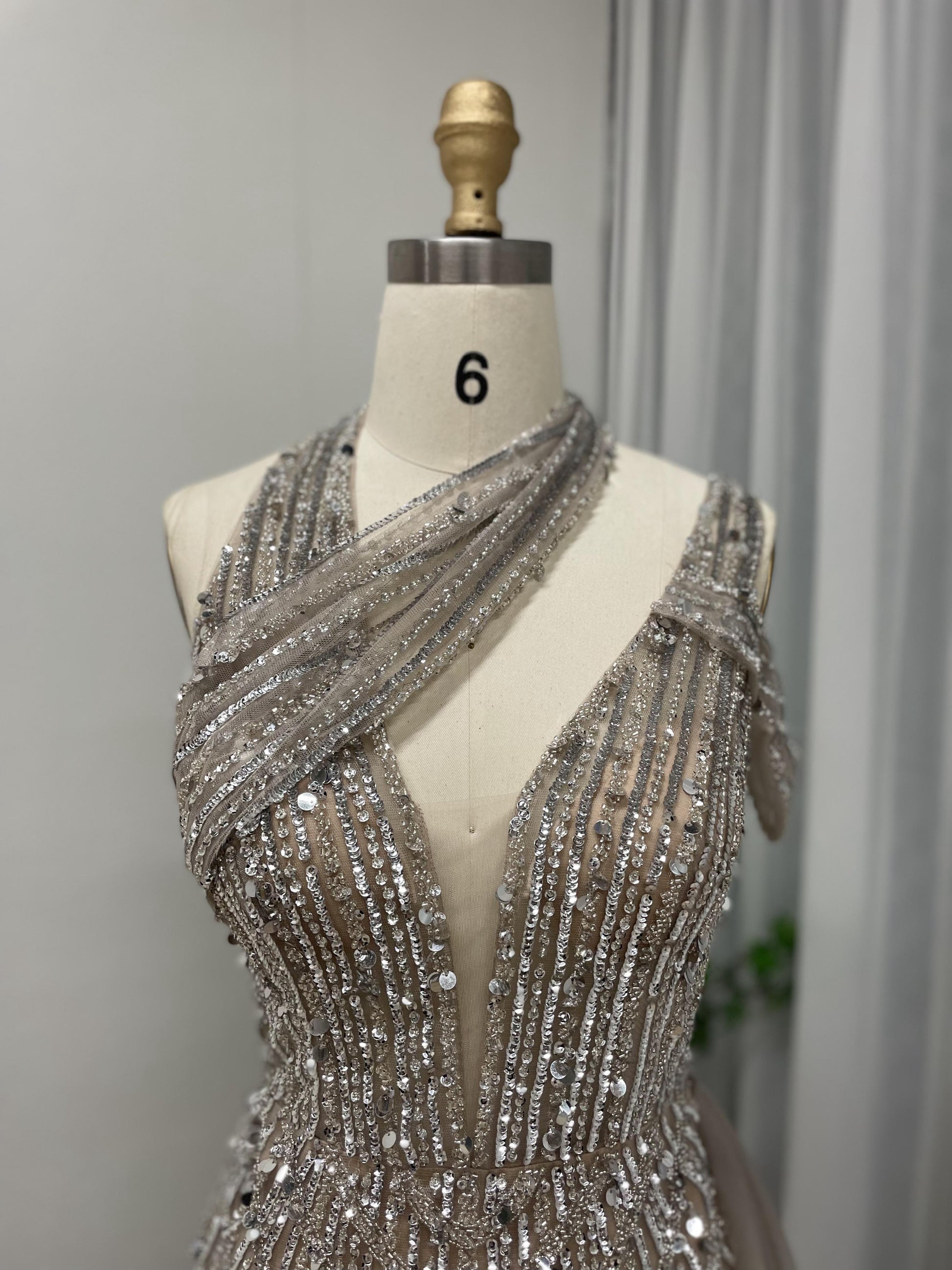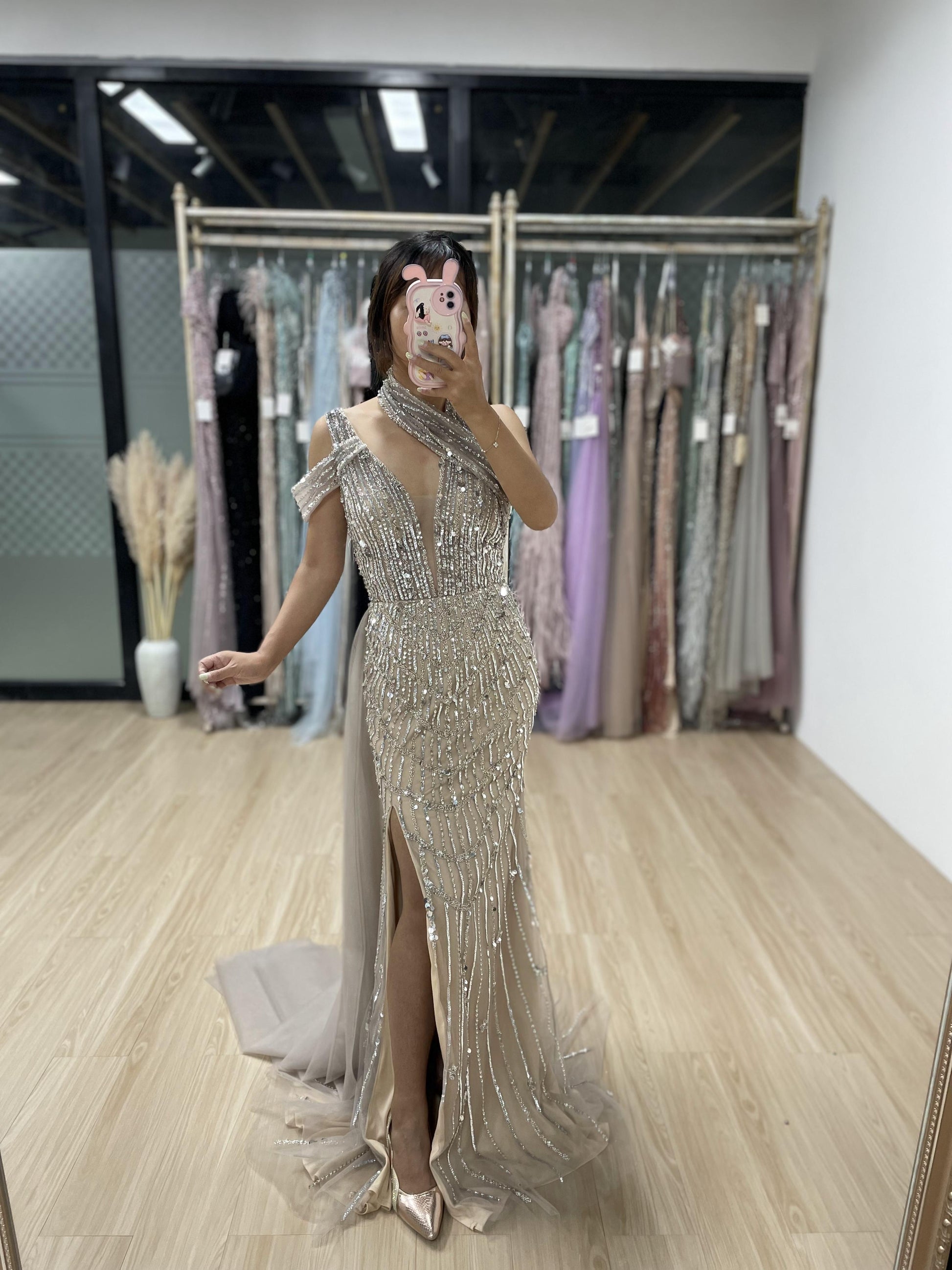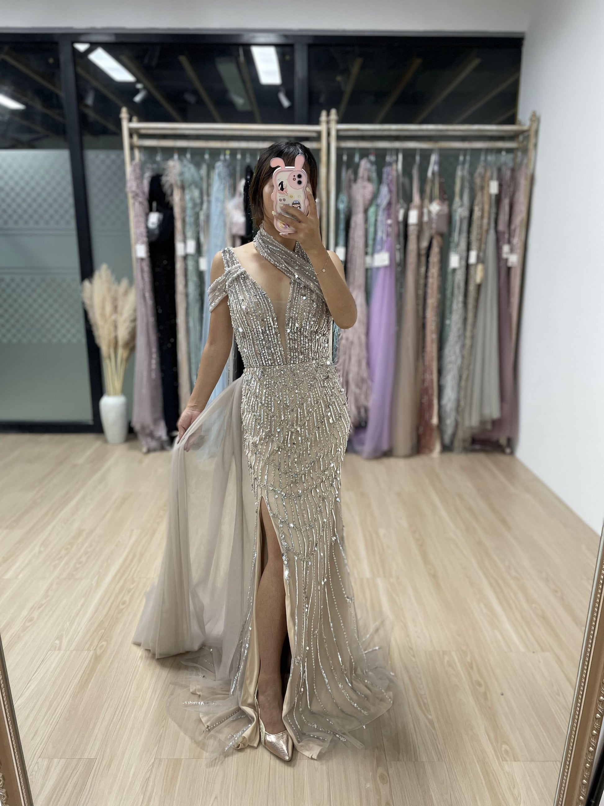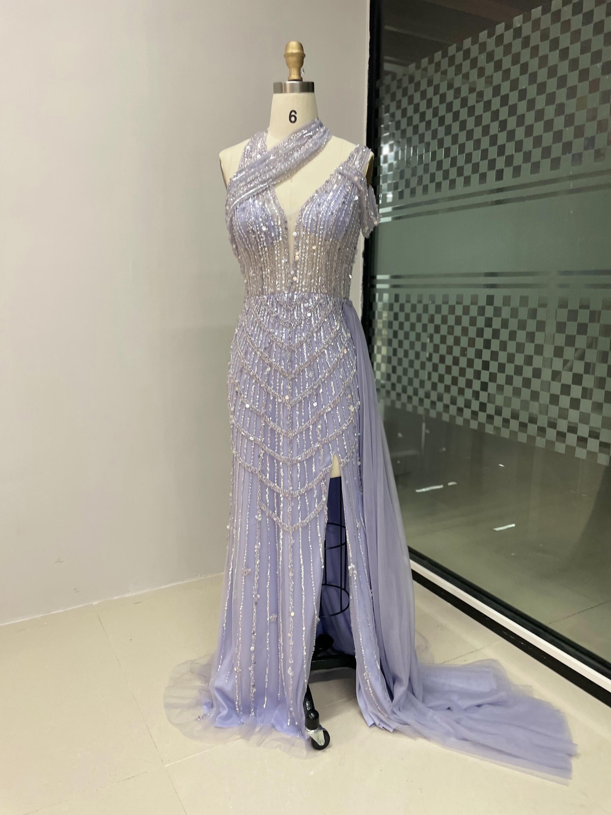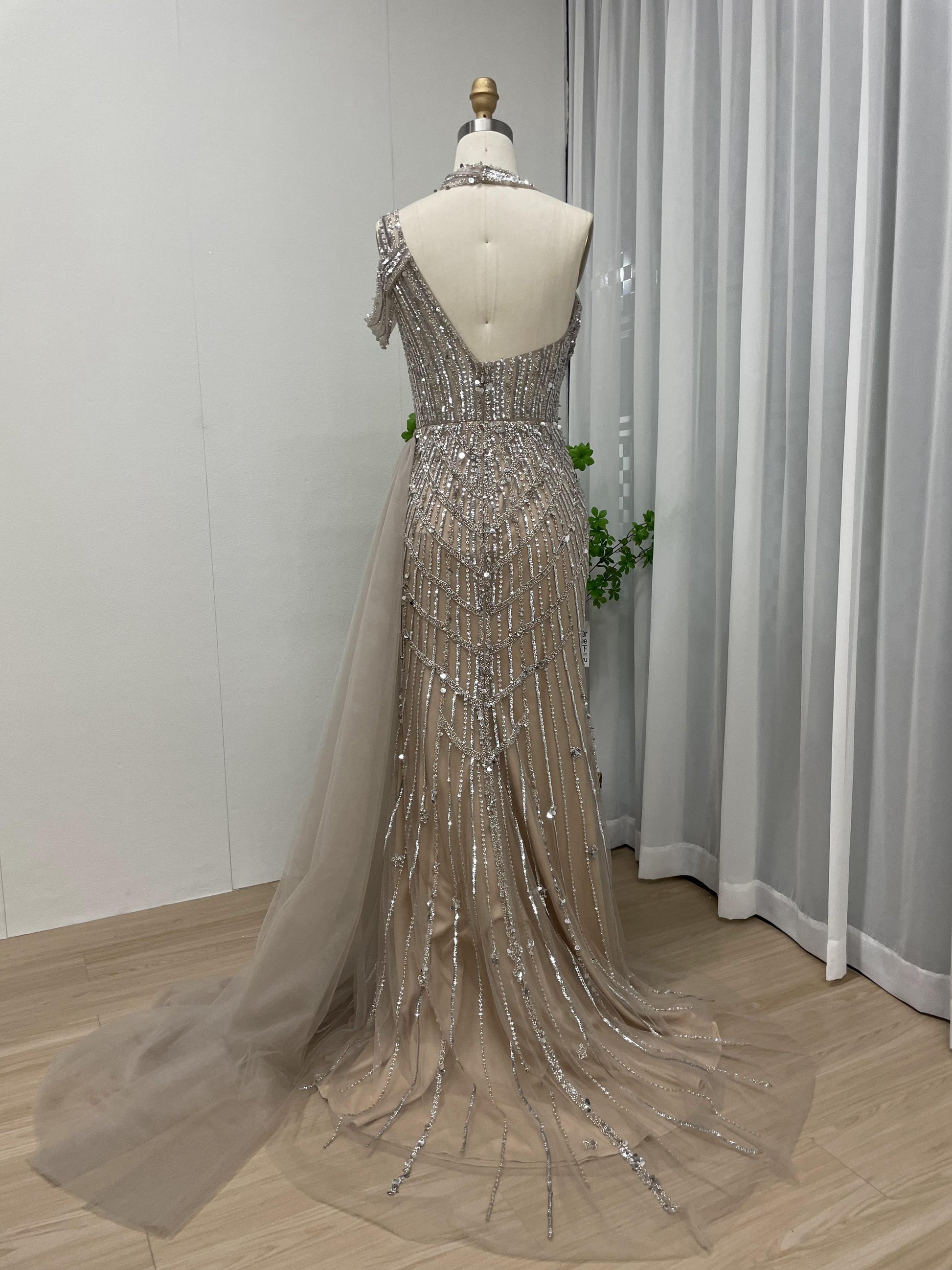 Halter Neck Off Shoulder Beading Couture Dress MB40026