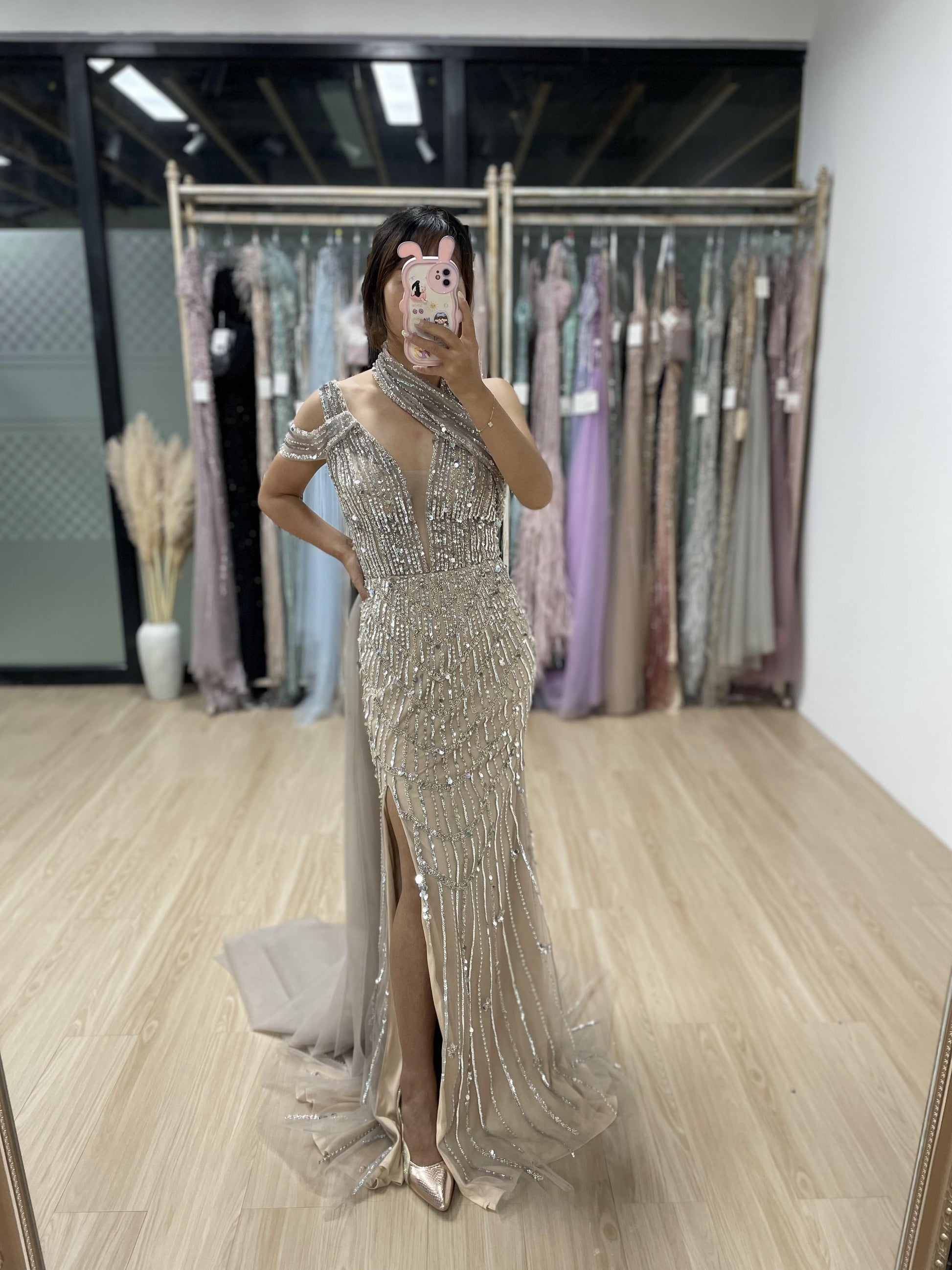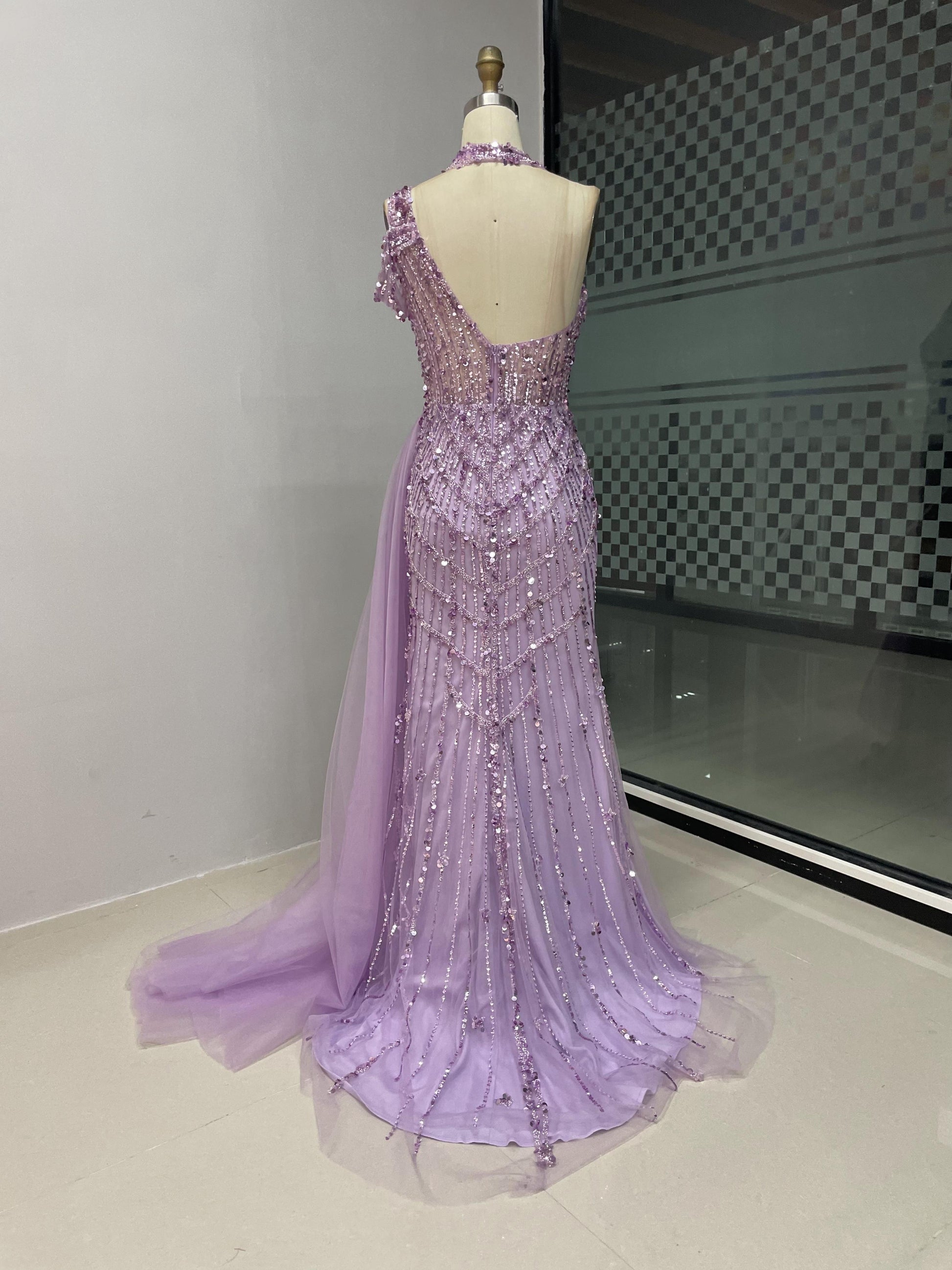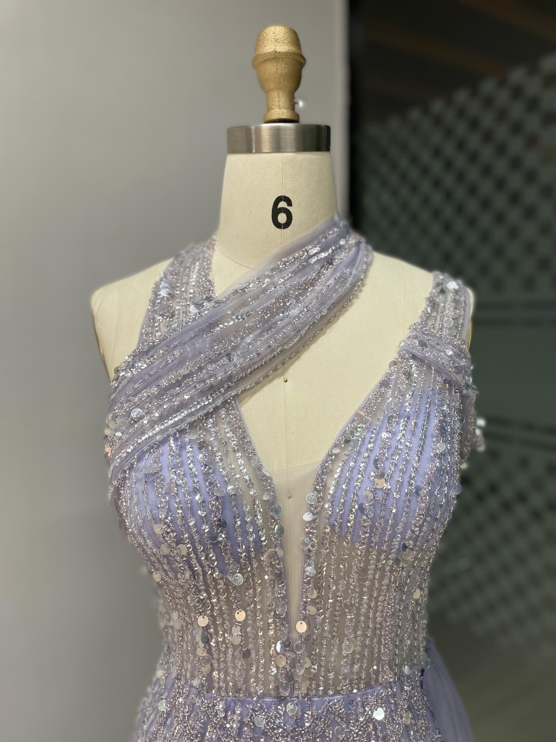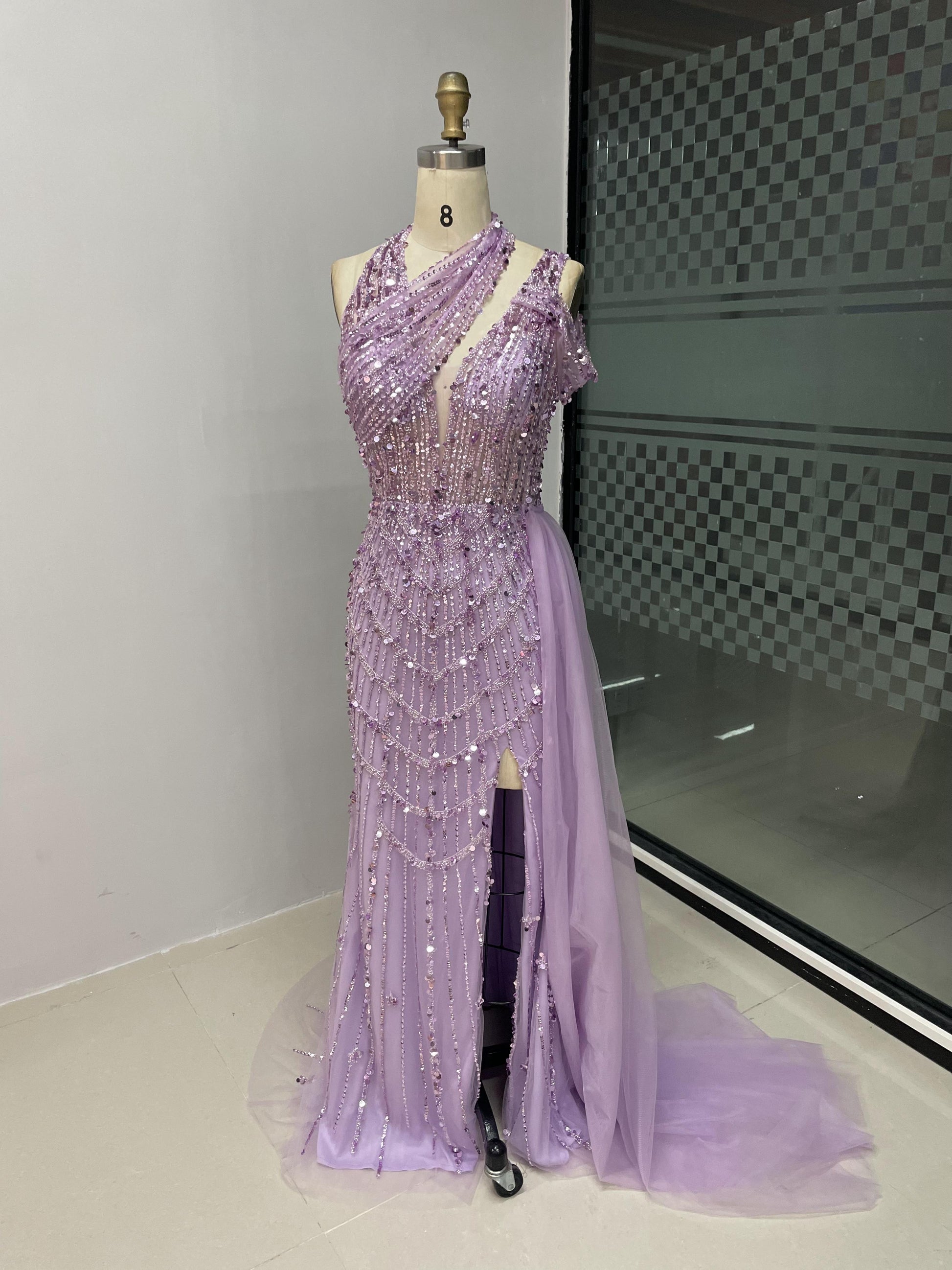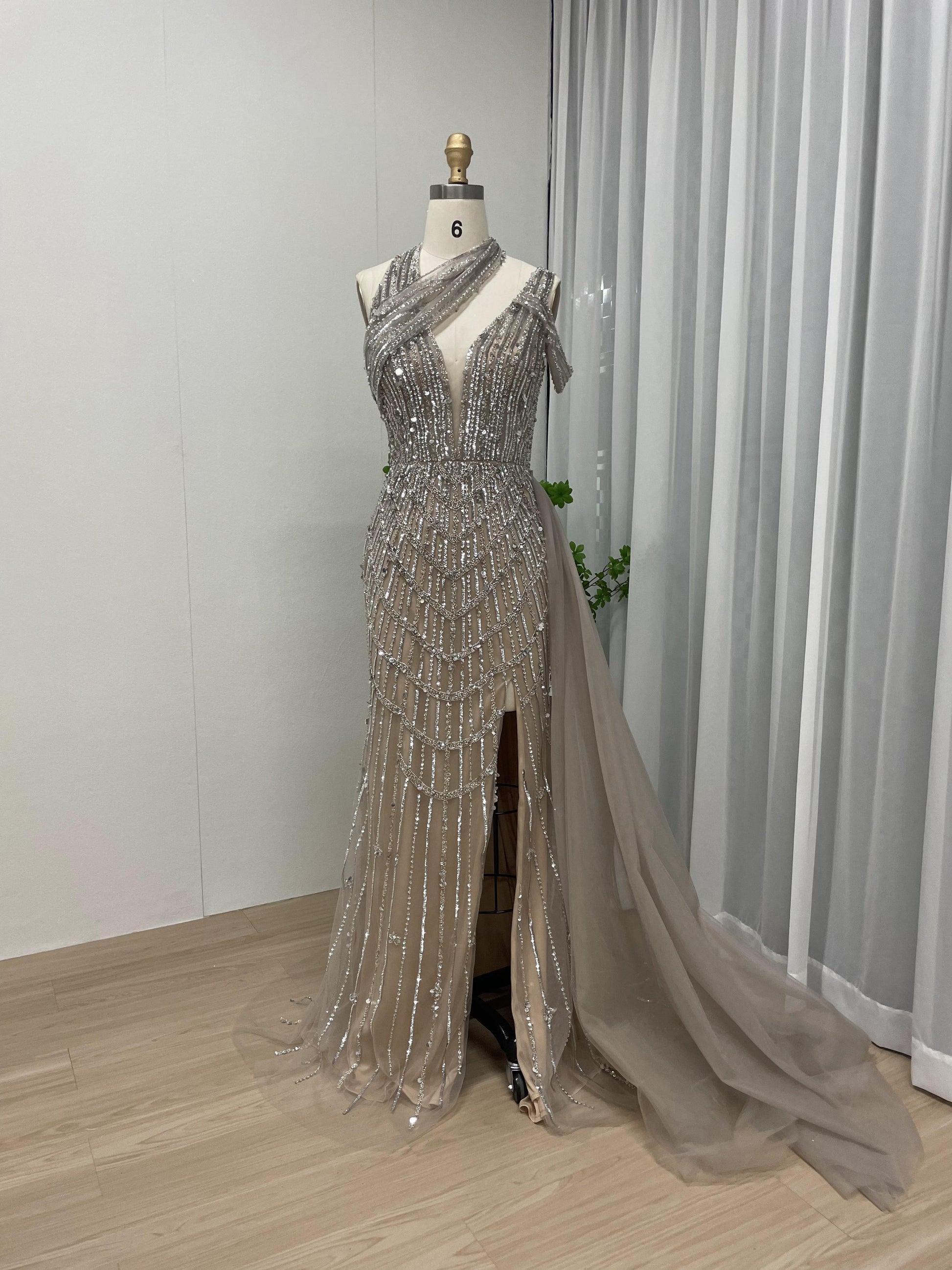 Halter Neck Off Shoulder Beading Couture Dress MB40026