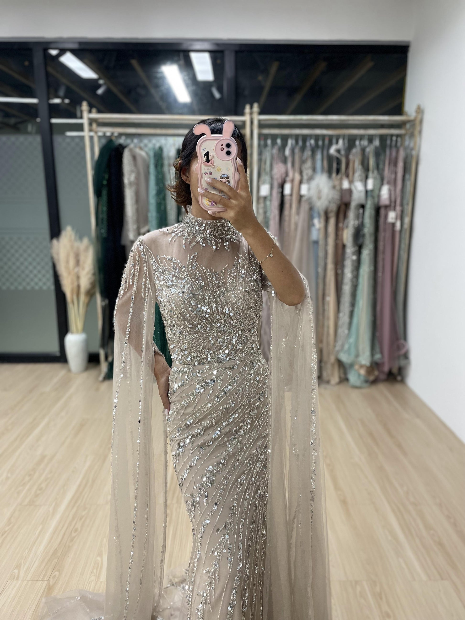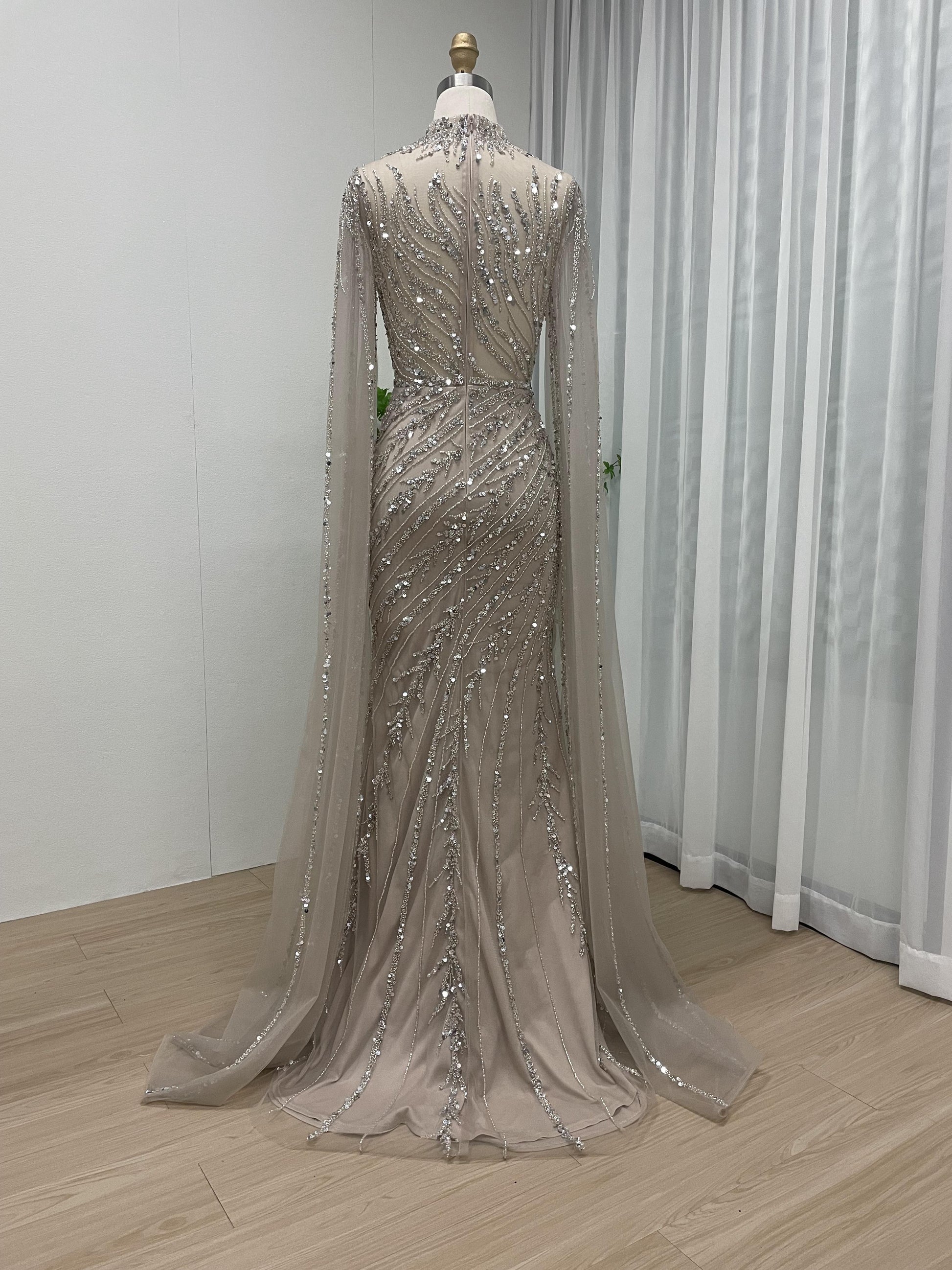 High Neck Cape Long Sleeve Haute Couture Mother Dress MB40064