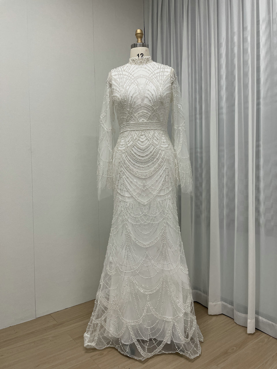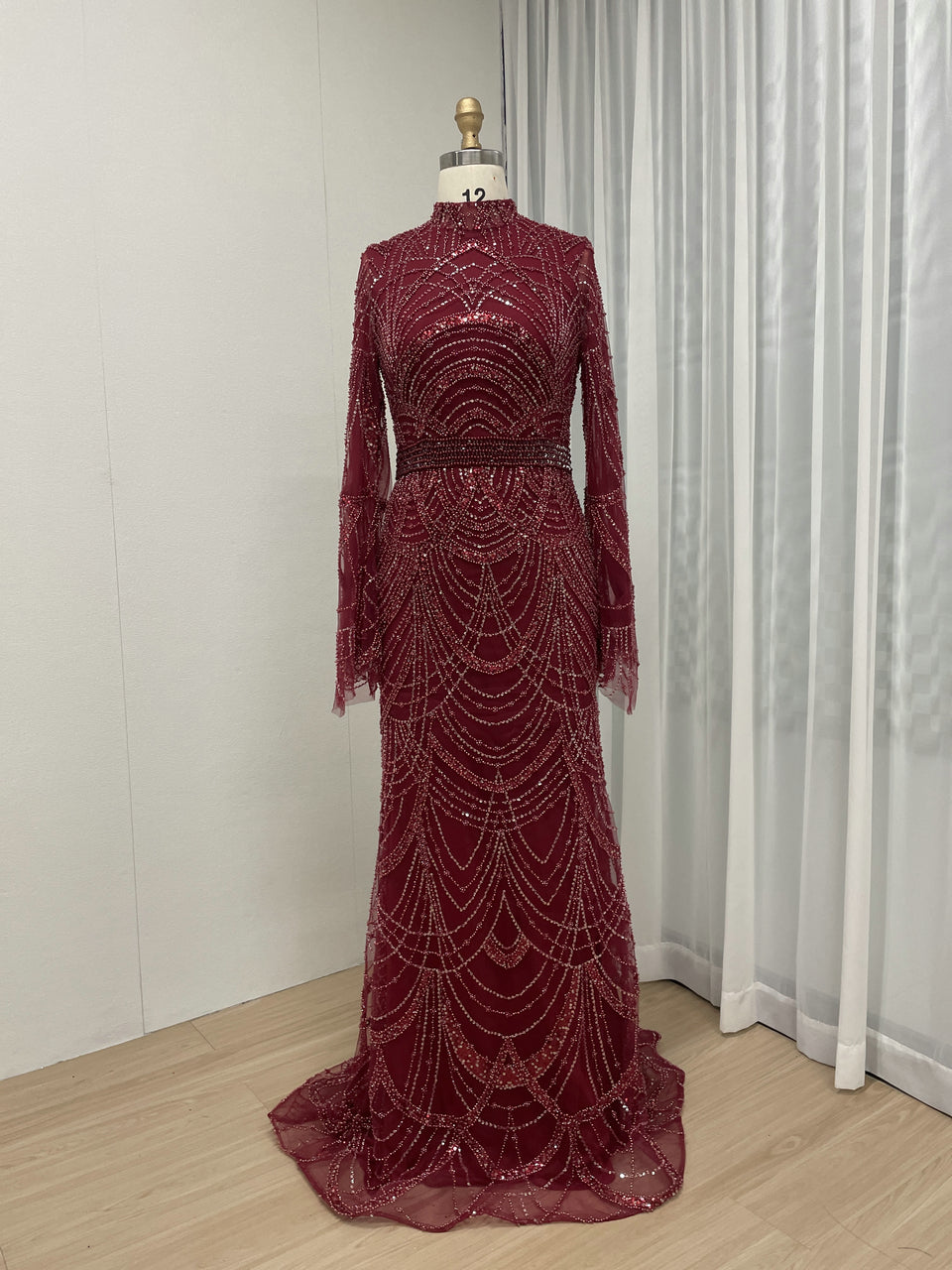 High Neck Long Sleeve Muslim Women Evening Party Dress MB40254