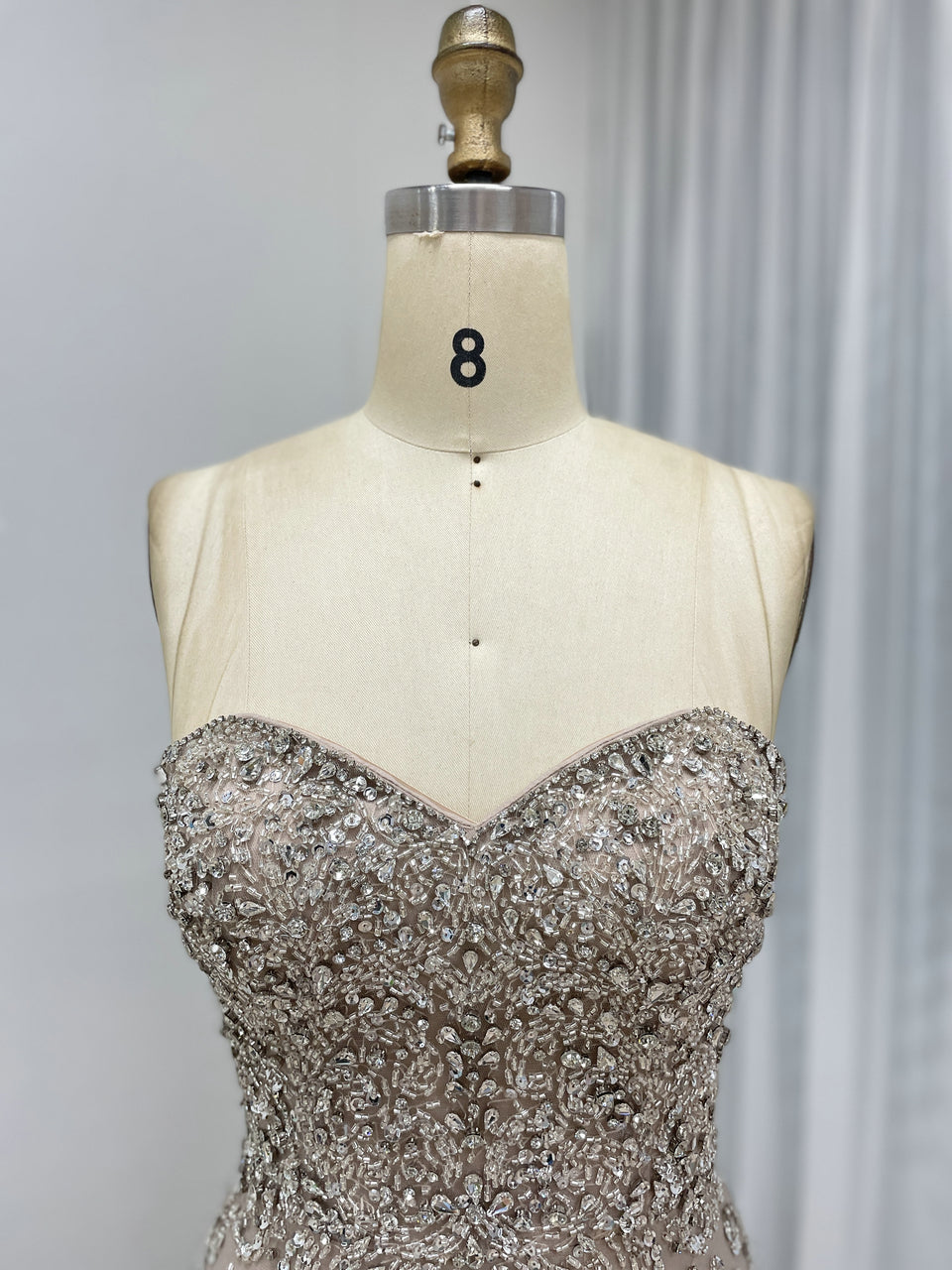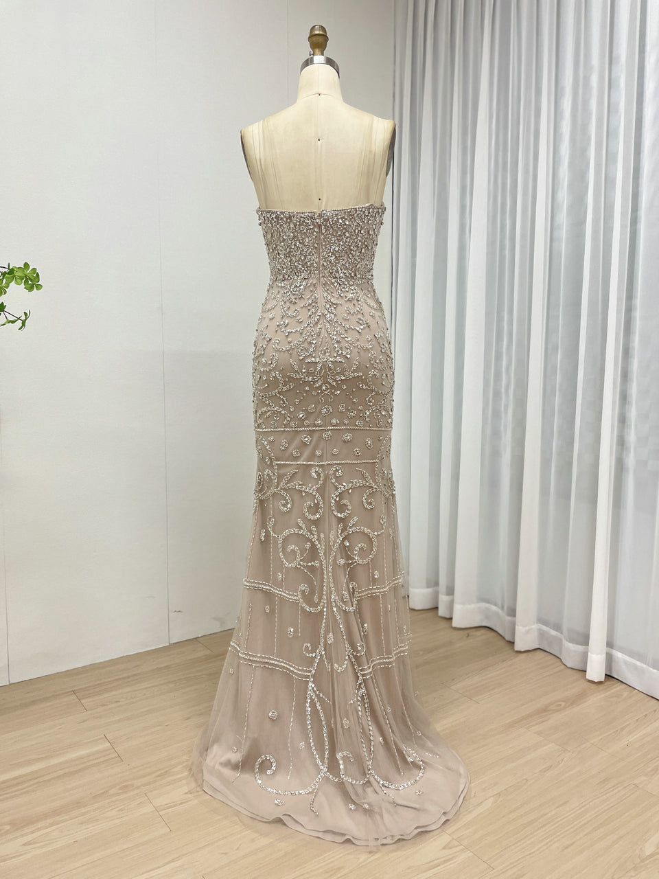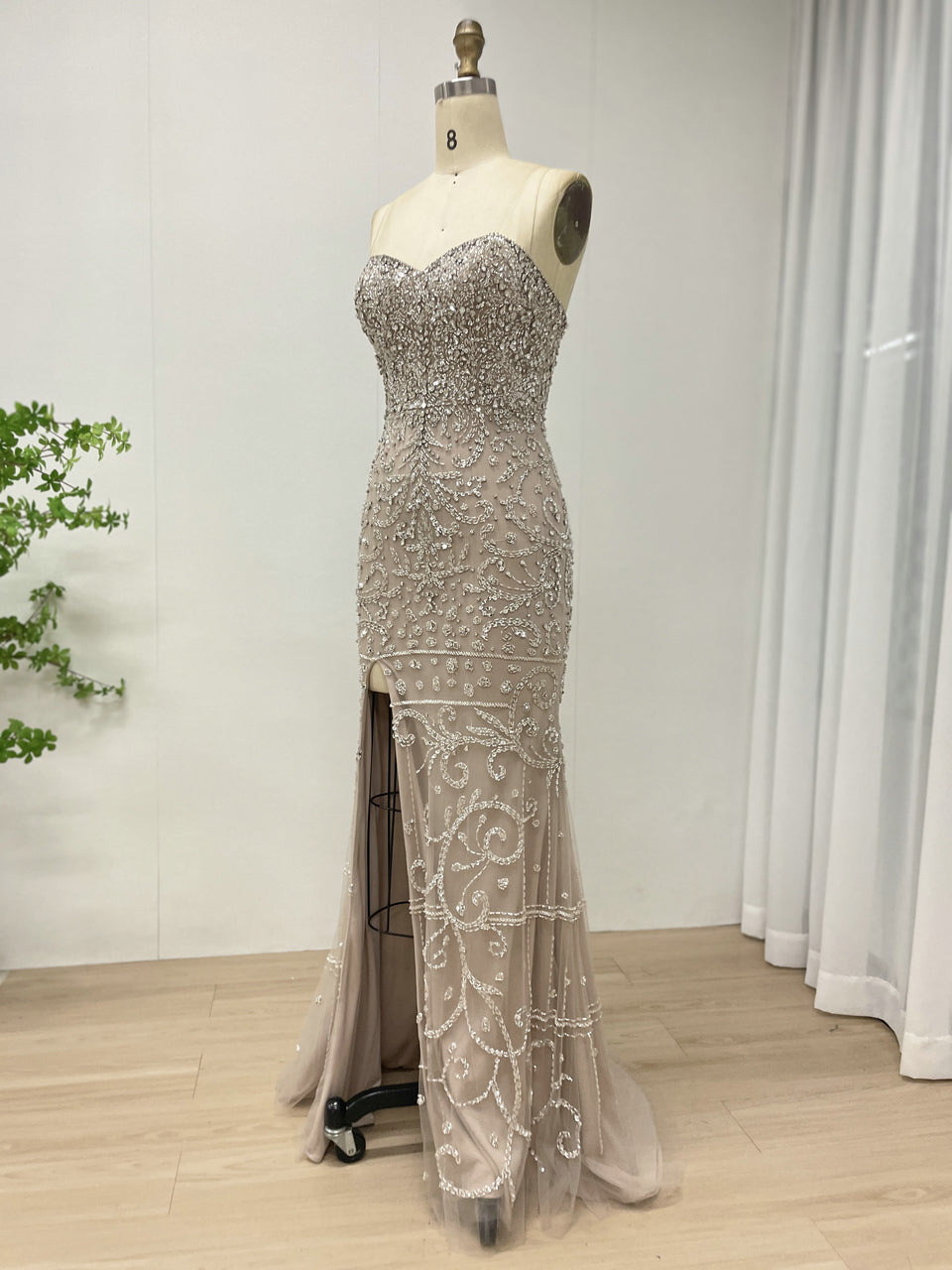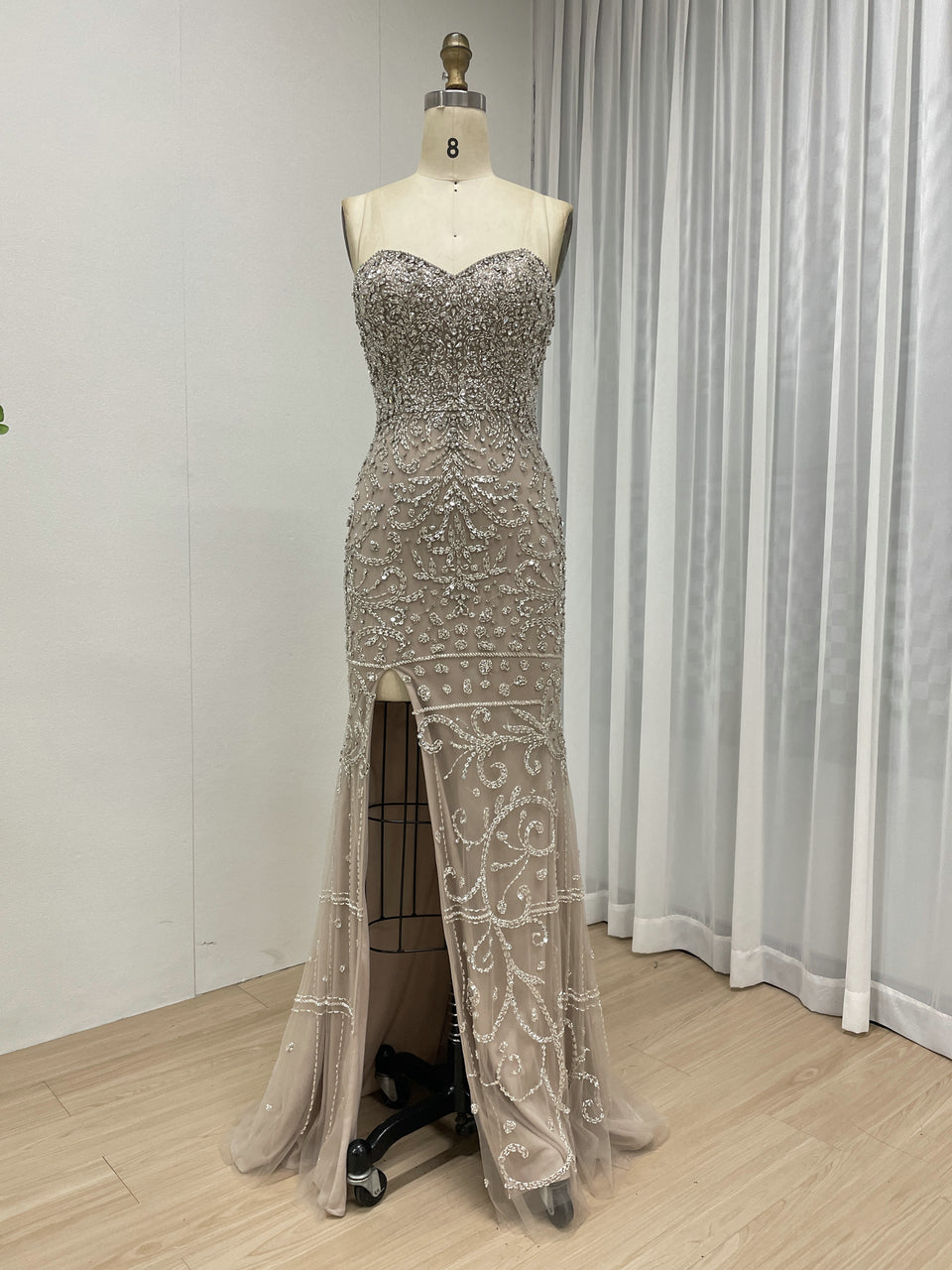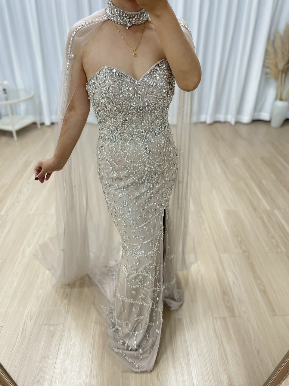 High Slit Dubai Evening Dress for Banquet Embellished Sparkling Beaded With Detachable Cape Sleeve MB40237-2