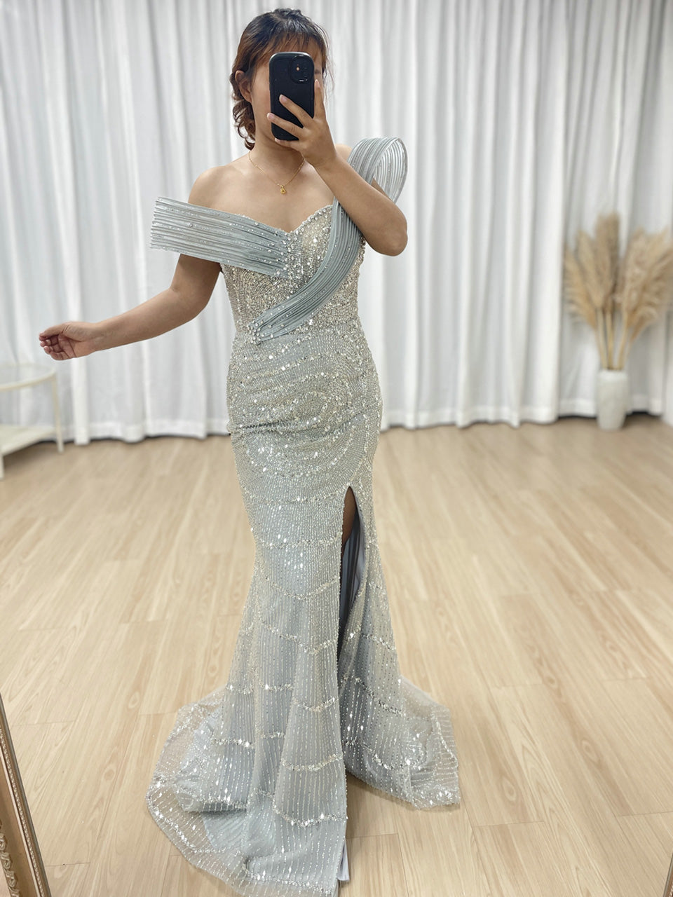 High Slit Mermaid Evening Formal Dress Embellished With Exquisite Embroidery Beads Suitable for Banquet MB40322
