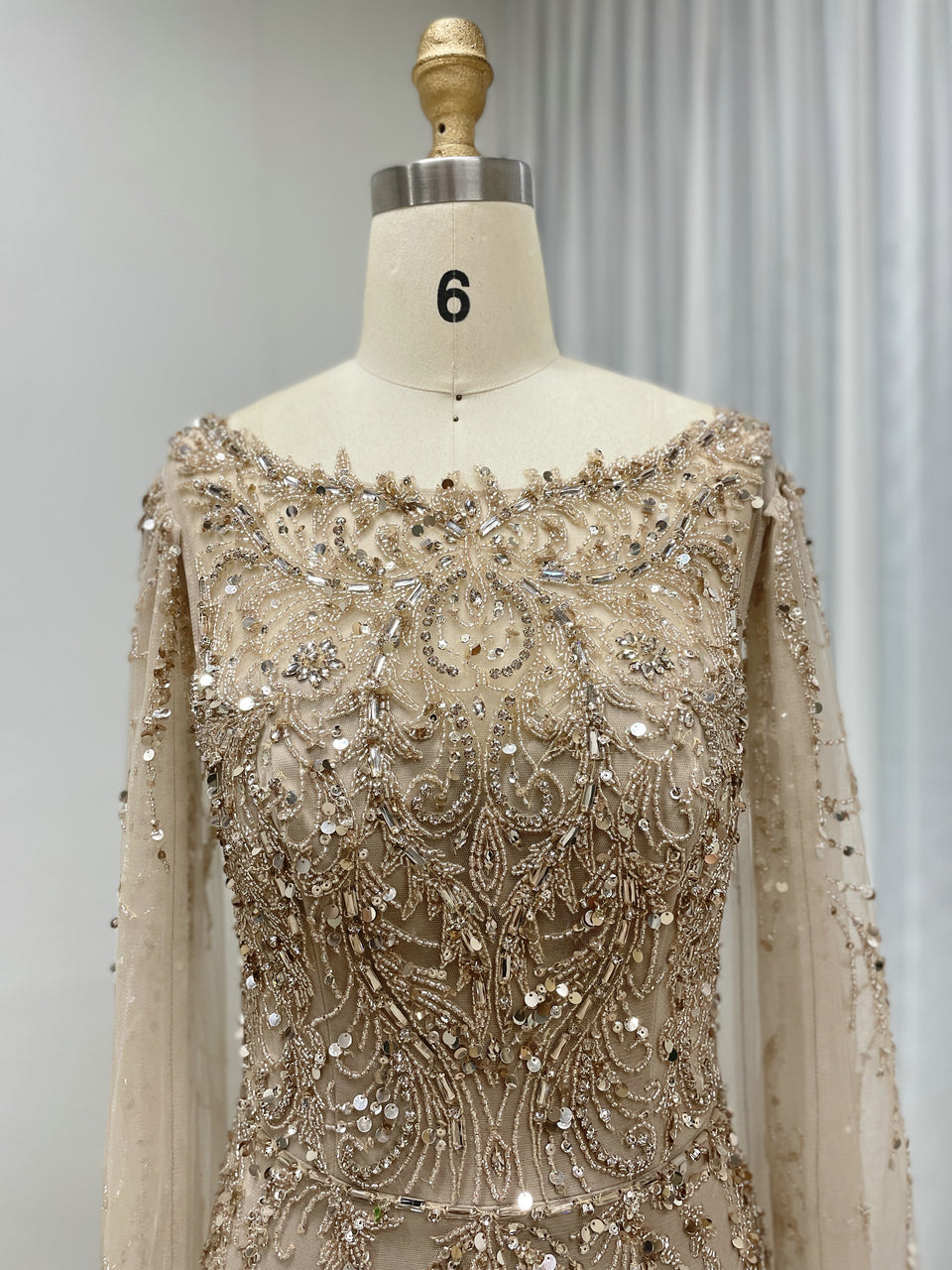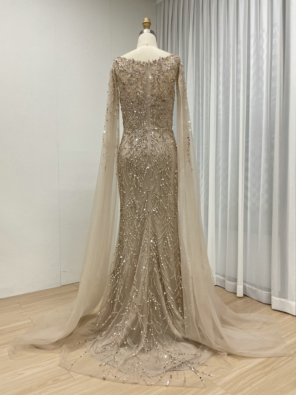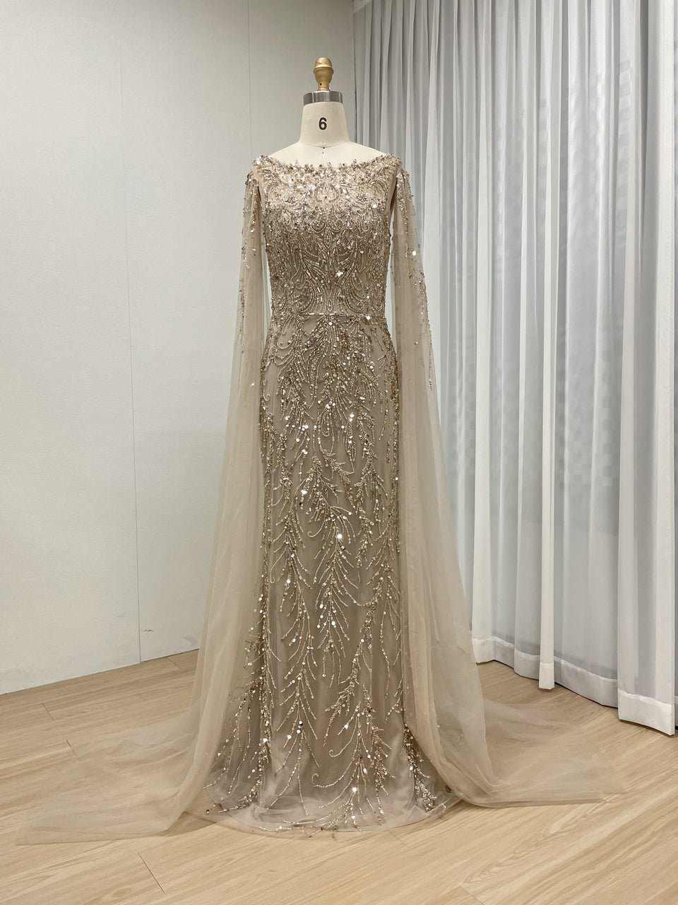 Hot Selling Boat Neck Handmade Beading Cape Long Sleeve Wedding Party Evening Dress MB40386
