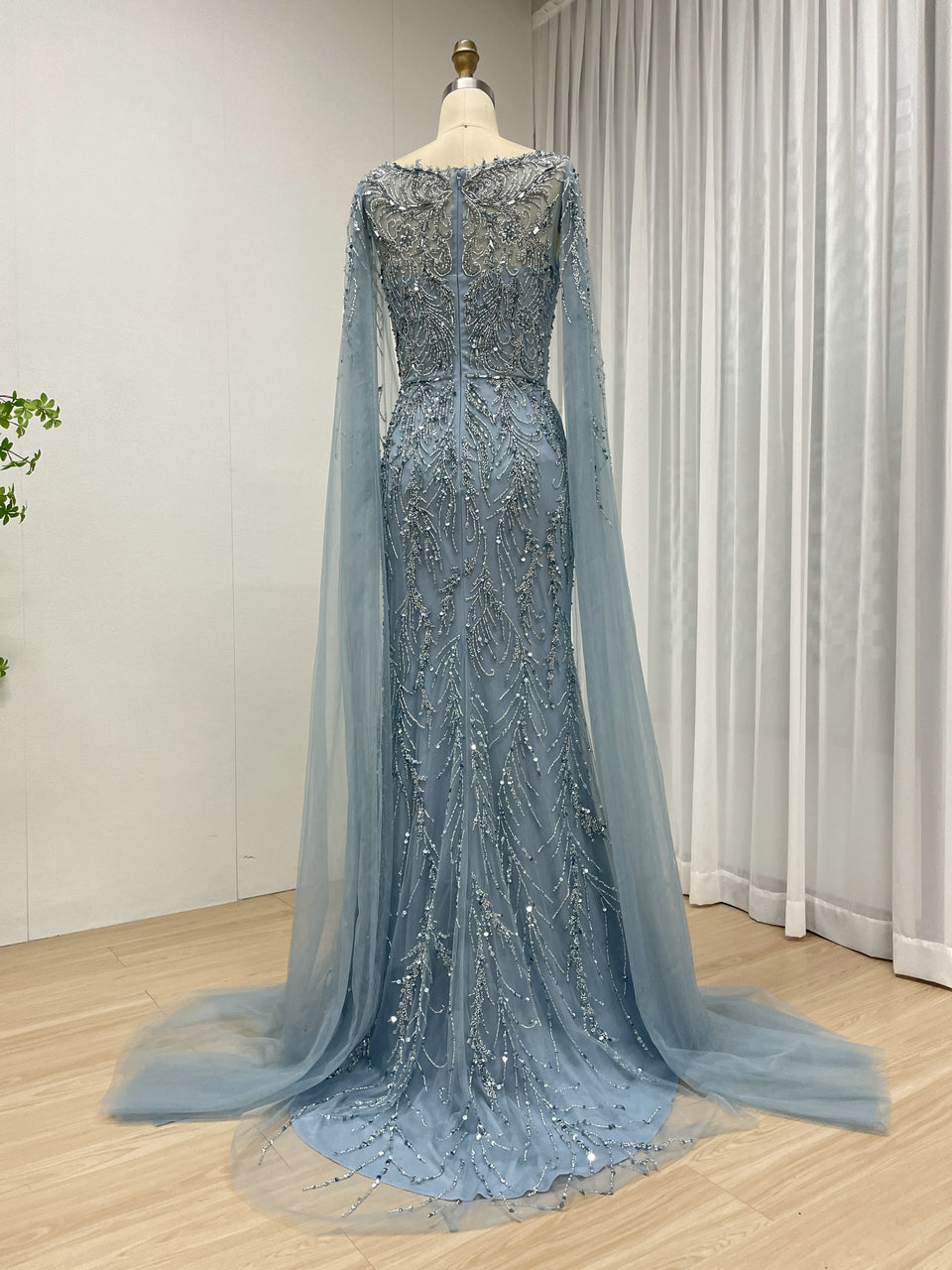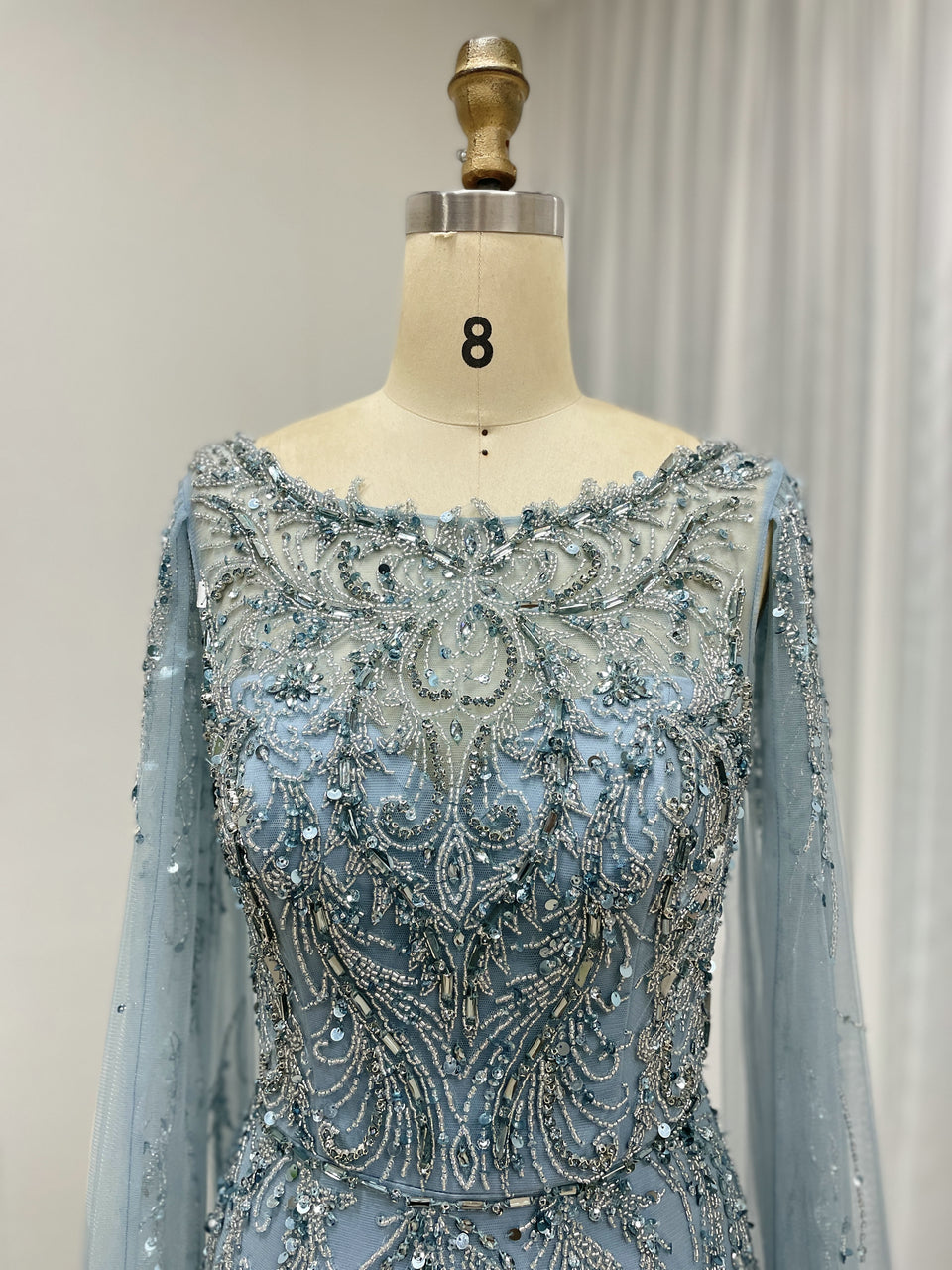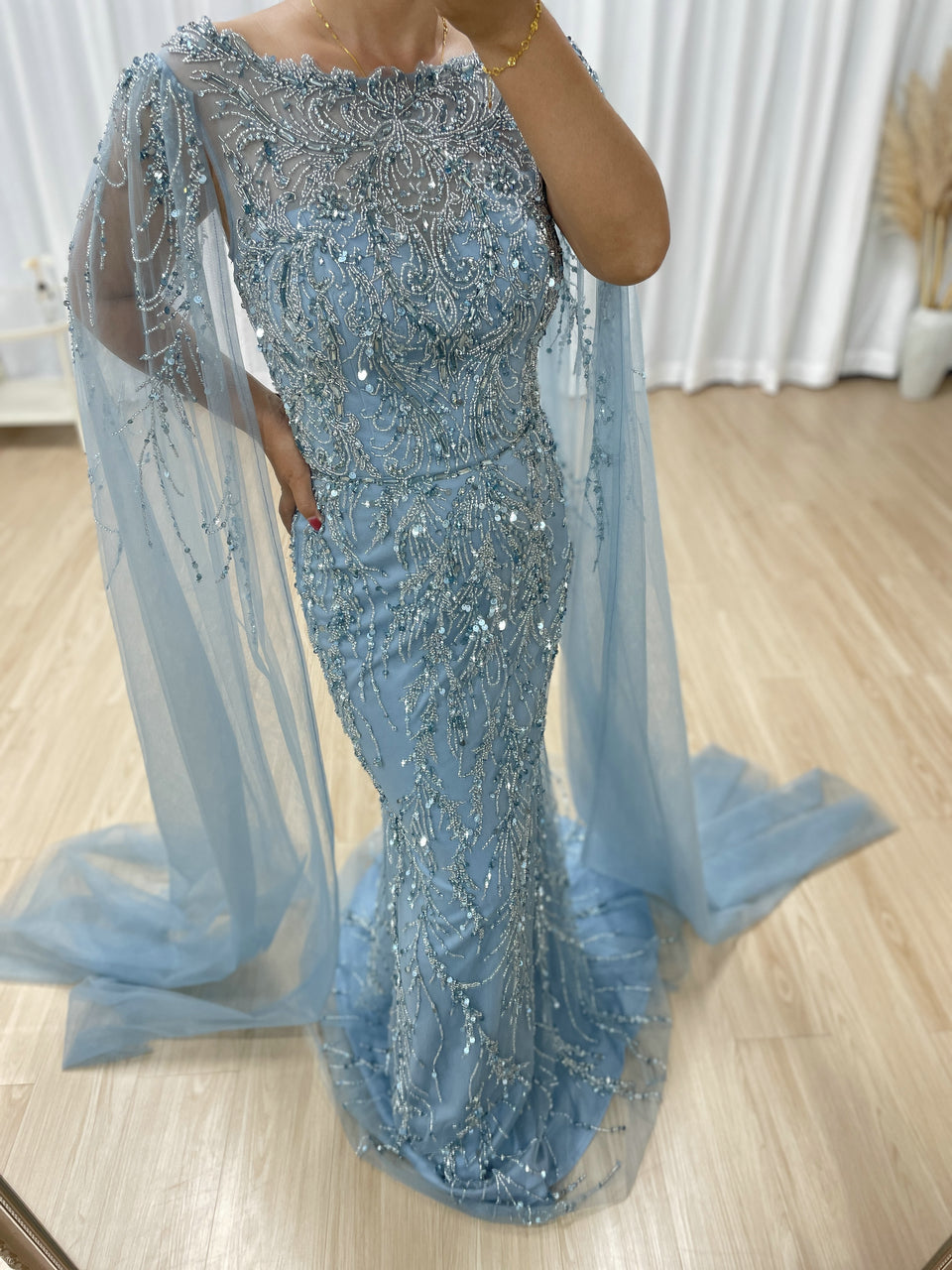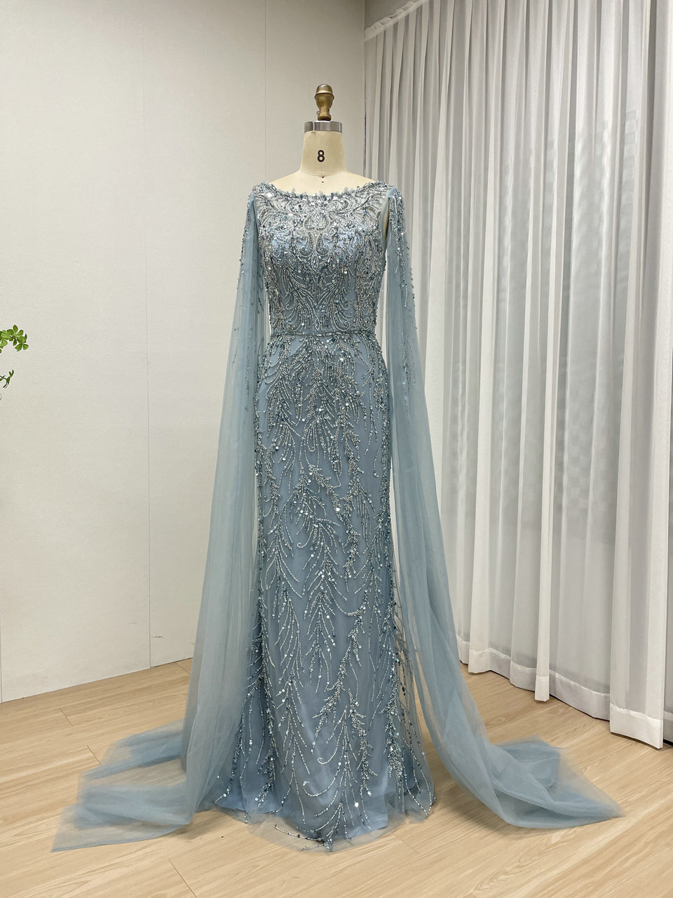 Hot Selling Boat Neck Handmade Beading Cape Long Sleeve Wedding Party Evening Dress MB40386