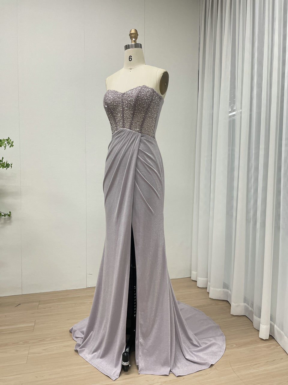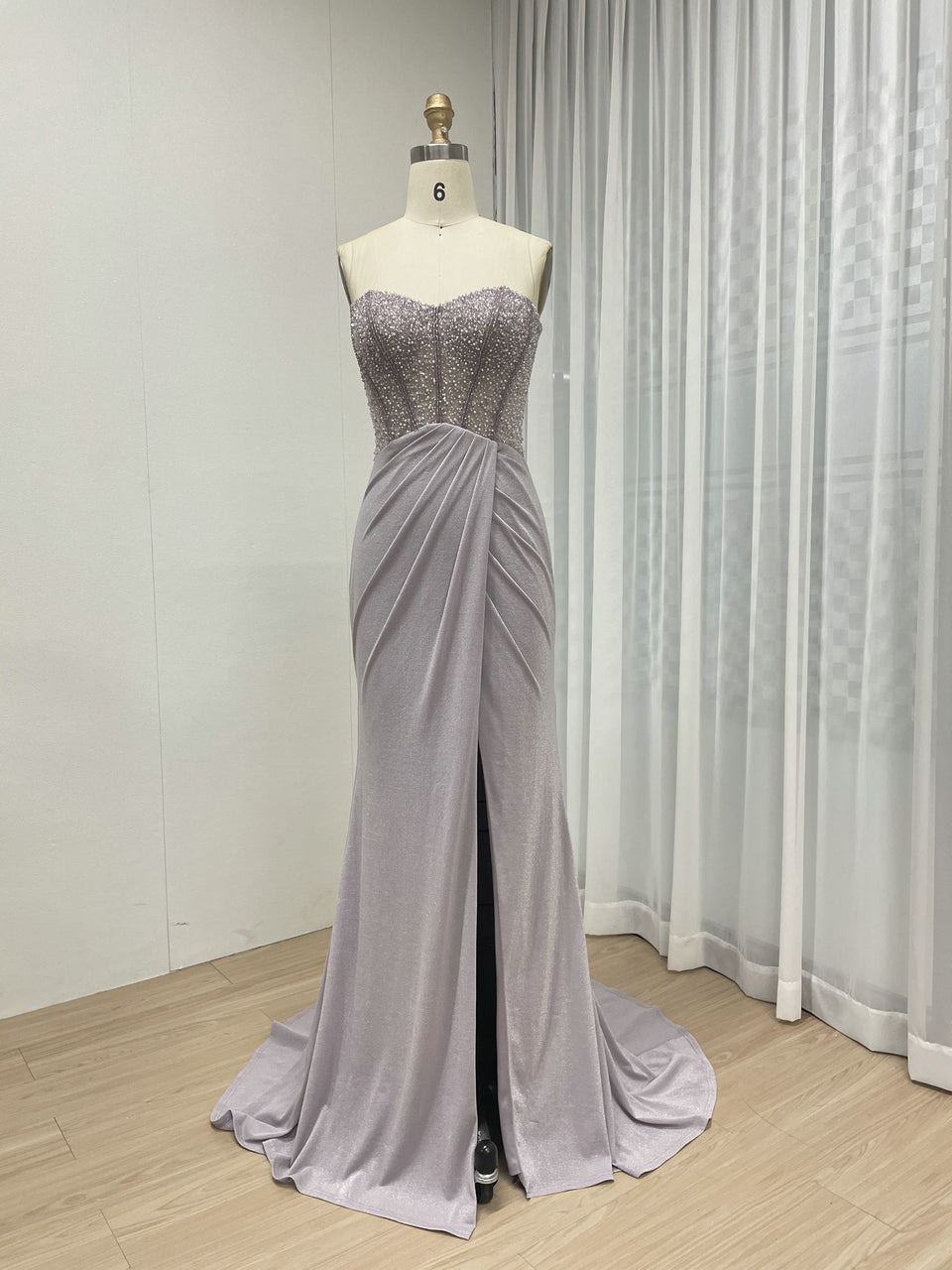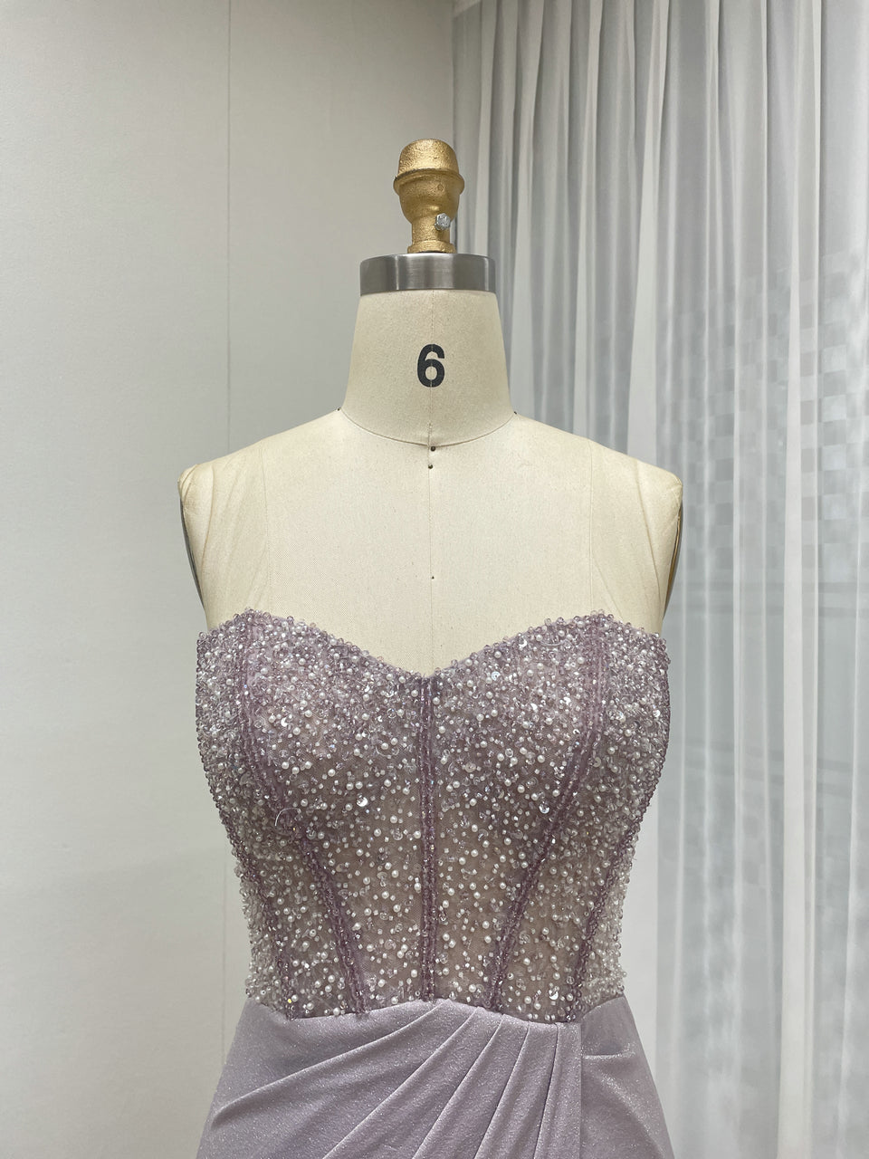 Lavender Sweetheart Pearl Decoration Slit Style Dazzling and Gorgeous Banquet Skirt MB40308