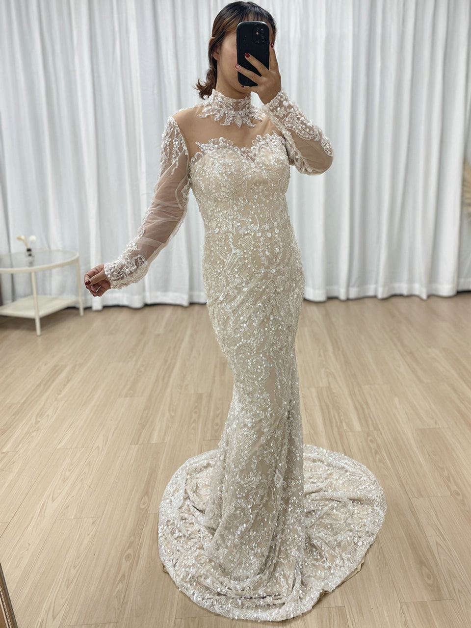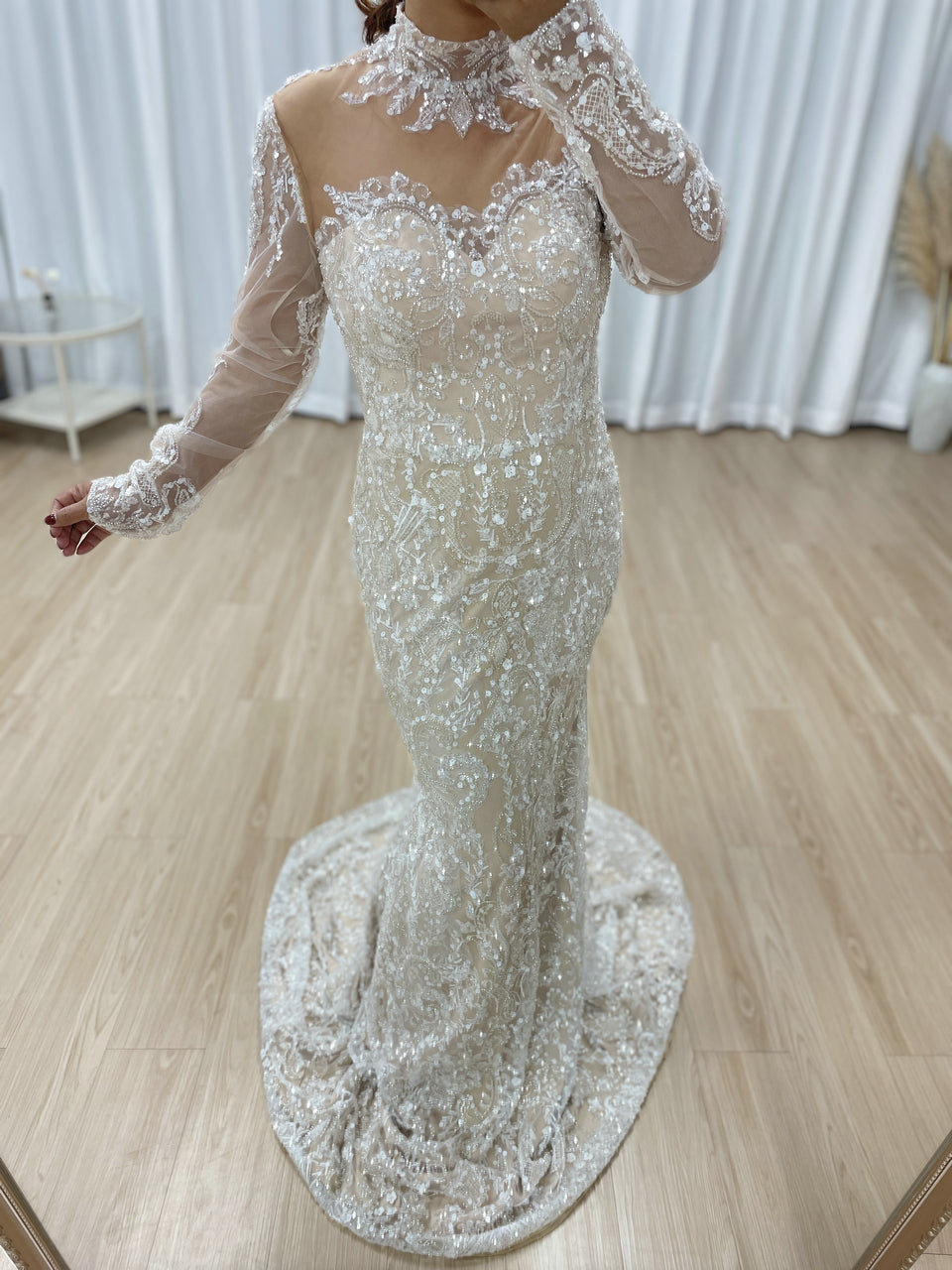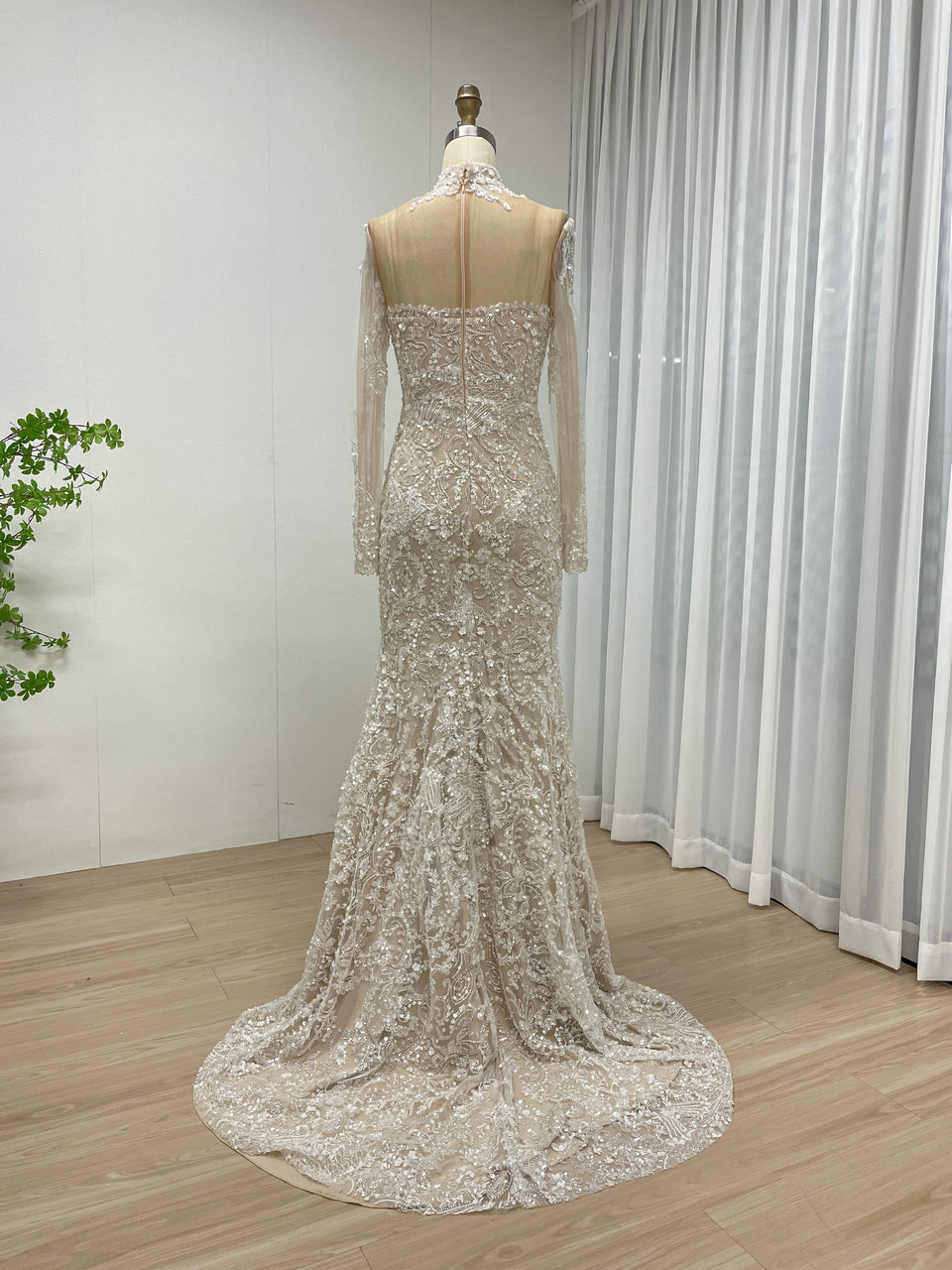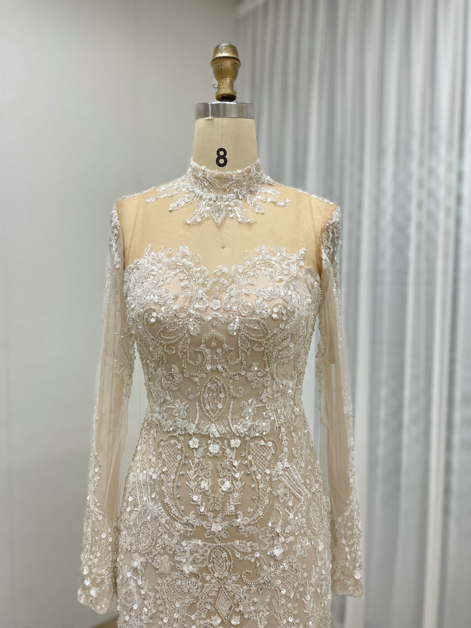 Luxurious Ivory Beaded Gown Long Sleeves High Neck Wedding Style MY30127