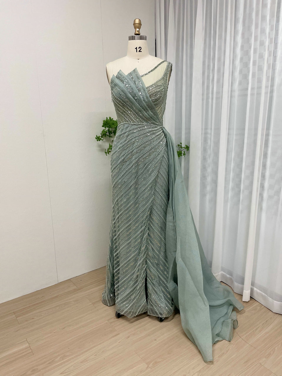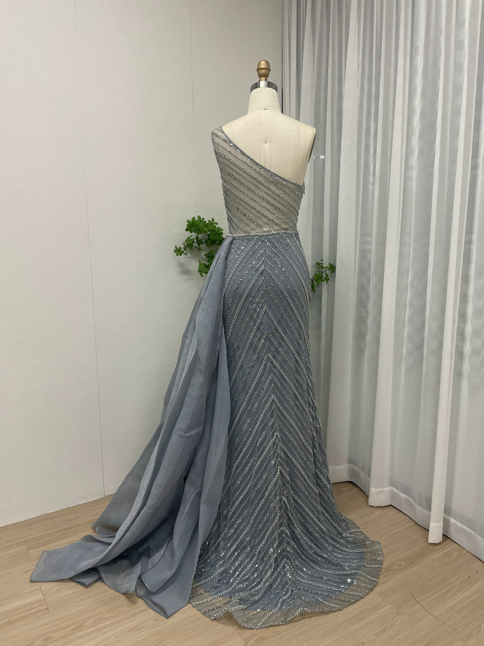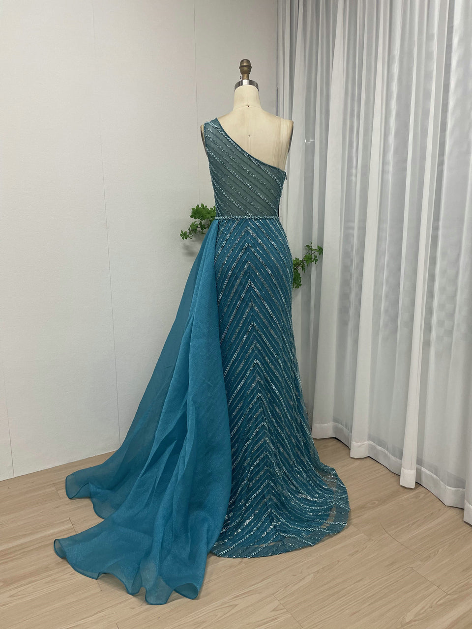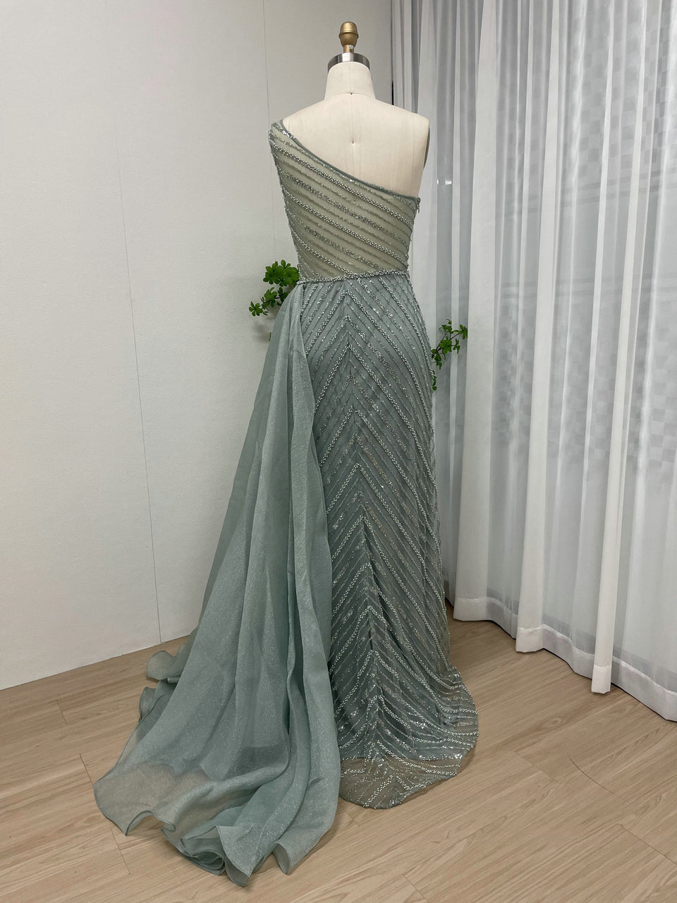 Luxurious One Shoulder Asymmetrical Mermaid Evening Gown Intricate Beading Lace Party Dress MB40185