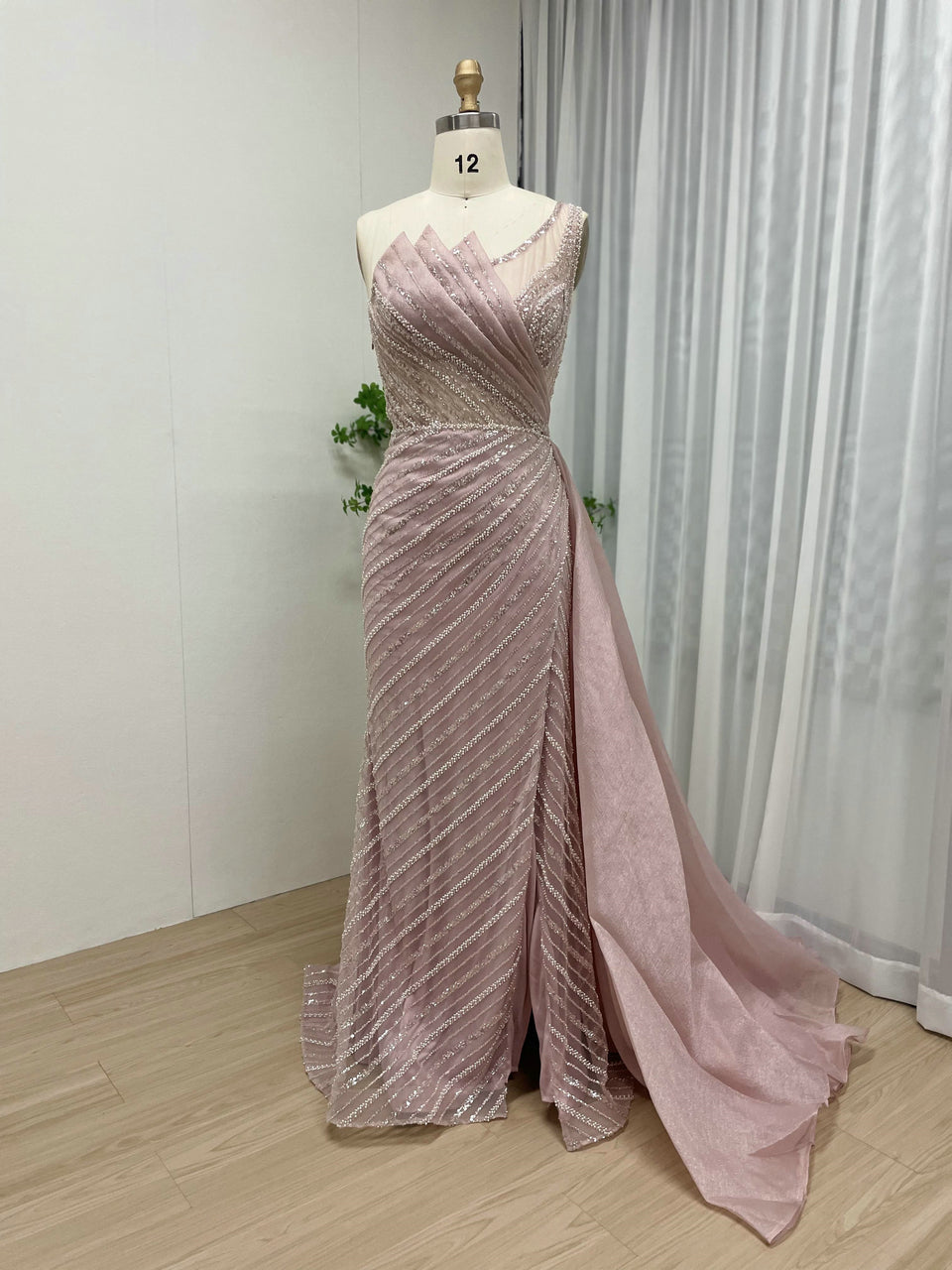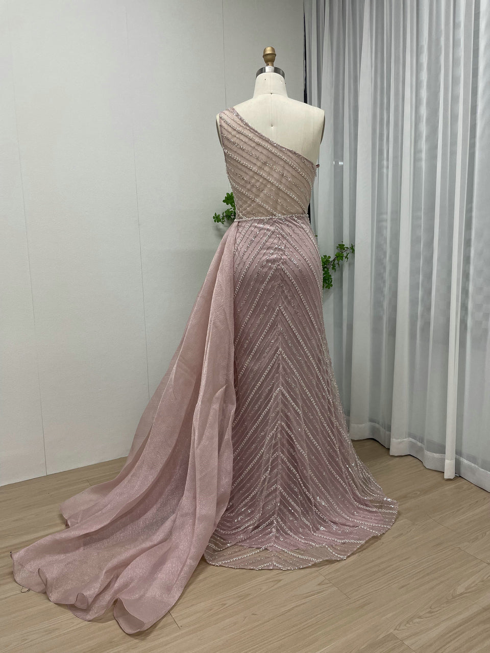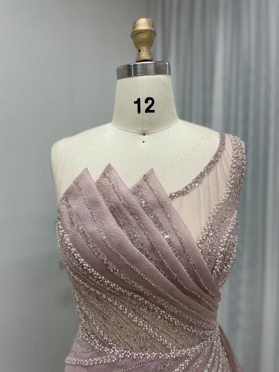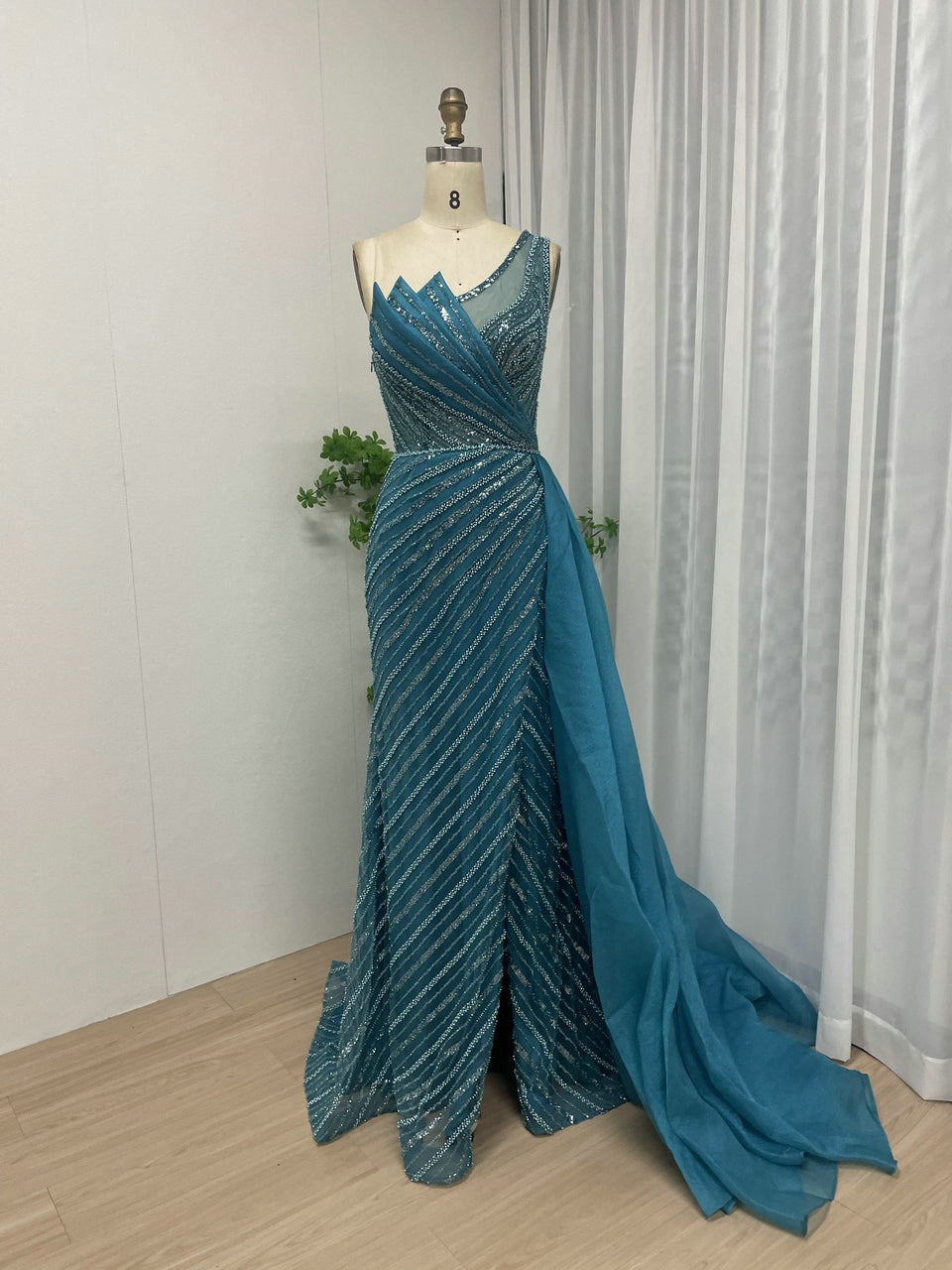 Luxurious One Shoulder Asymmetrical Mermaid Evening Gown Intricate Beading Lace Party Dress MB40185