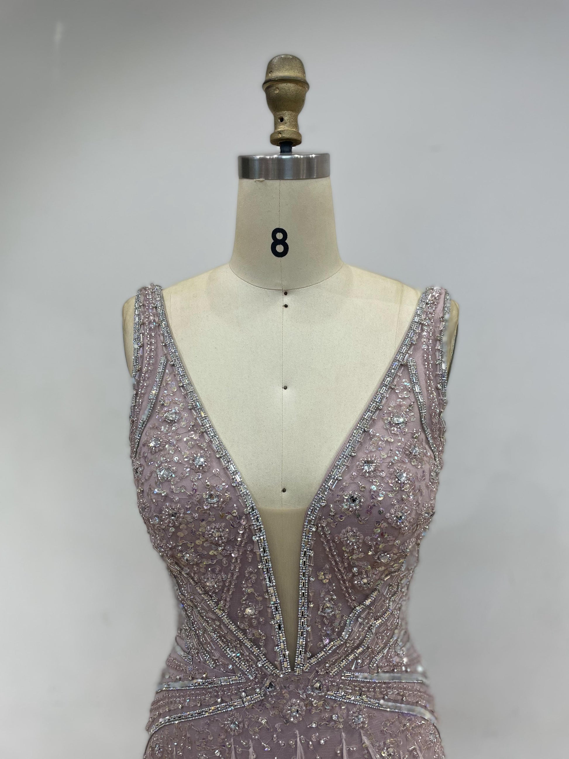 Luxury Backless Beading Feather Evening Party Dress DDS041