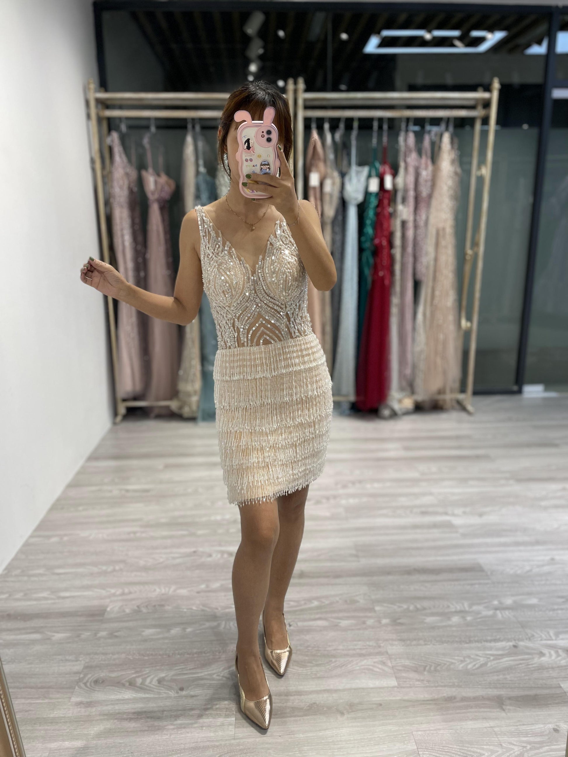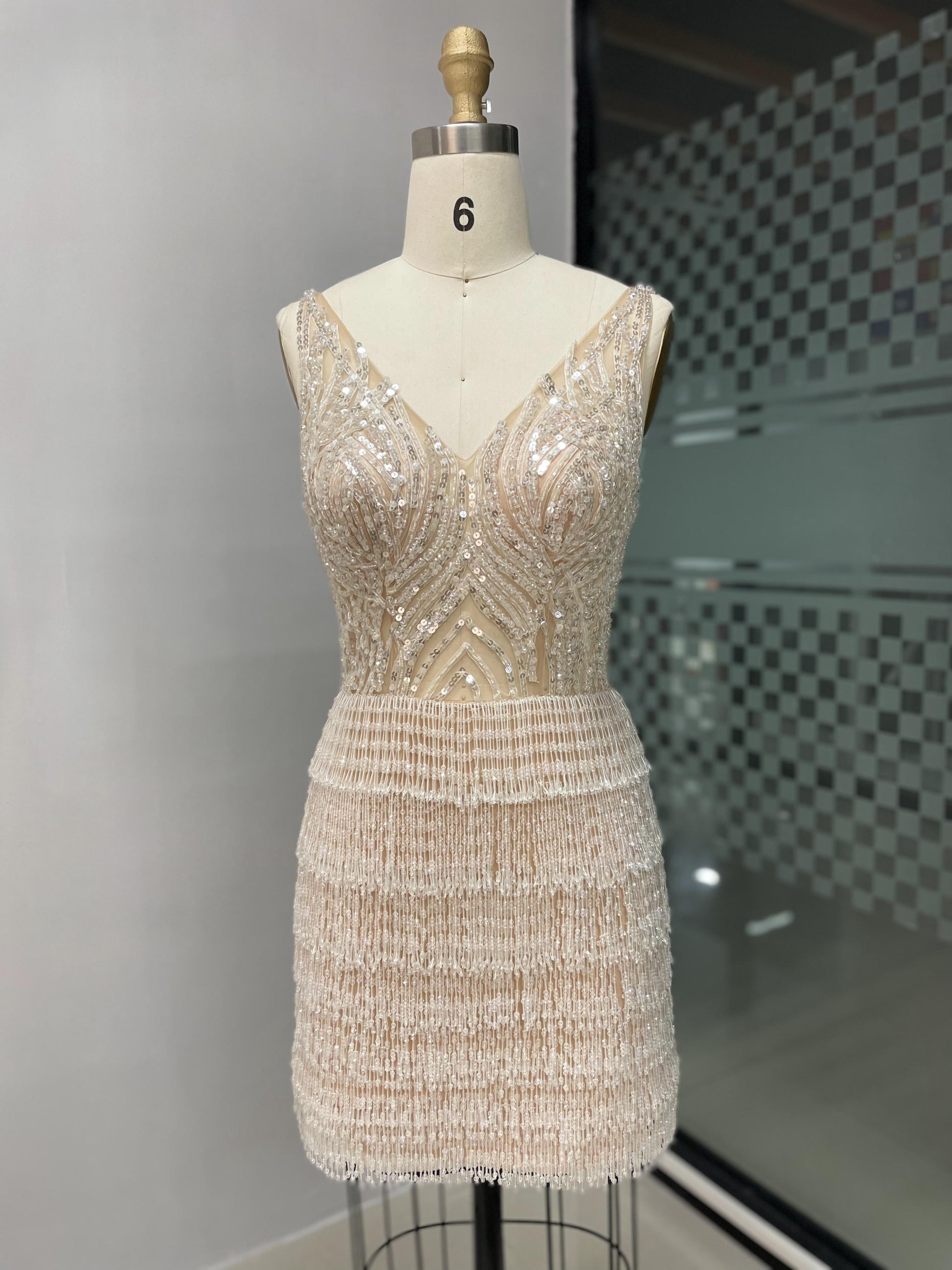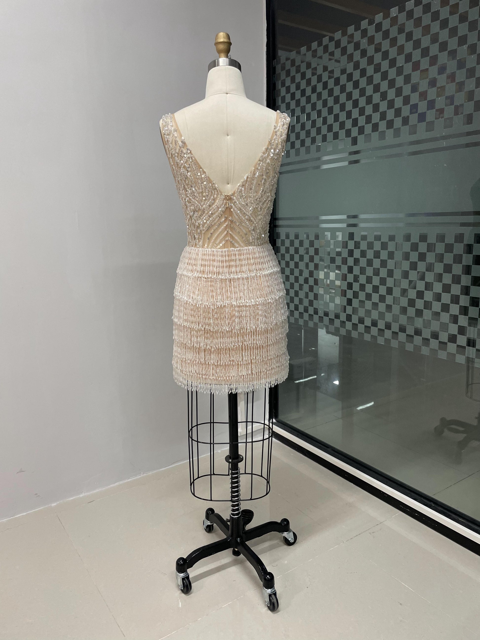 Luxury Couture Beading Fringes Short Party Dress MB40023