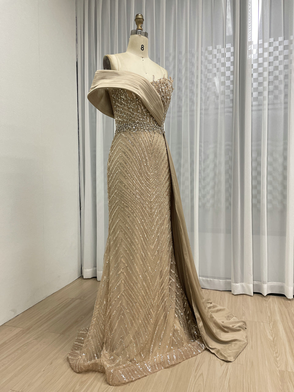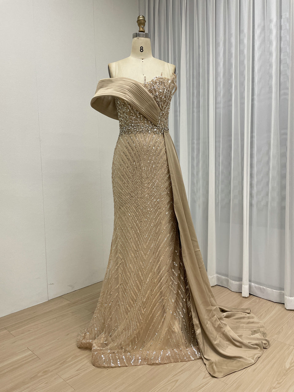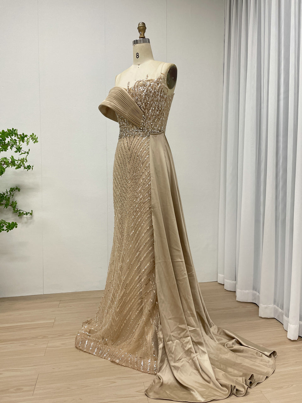 Luxury Evening Gown Suitable for Banquet Embellished With Dazzling Embroidery Bead and Removable Side Skirt MB40320