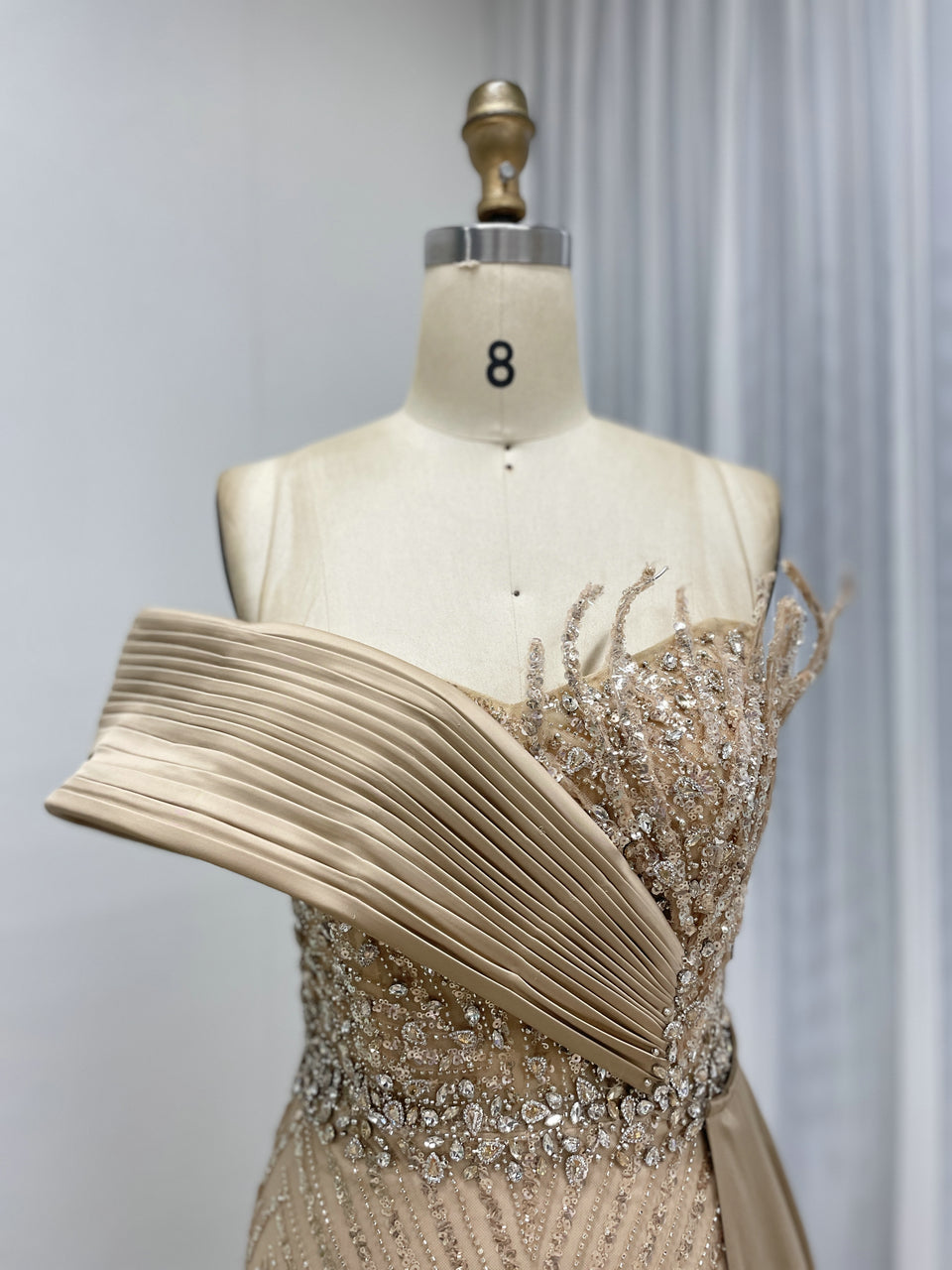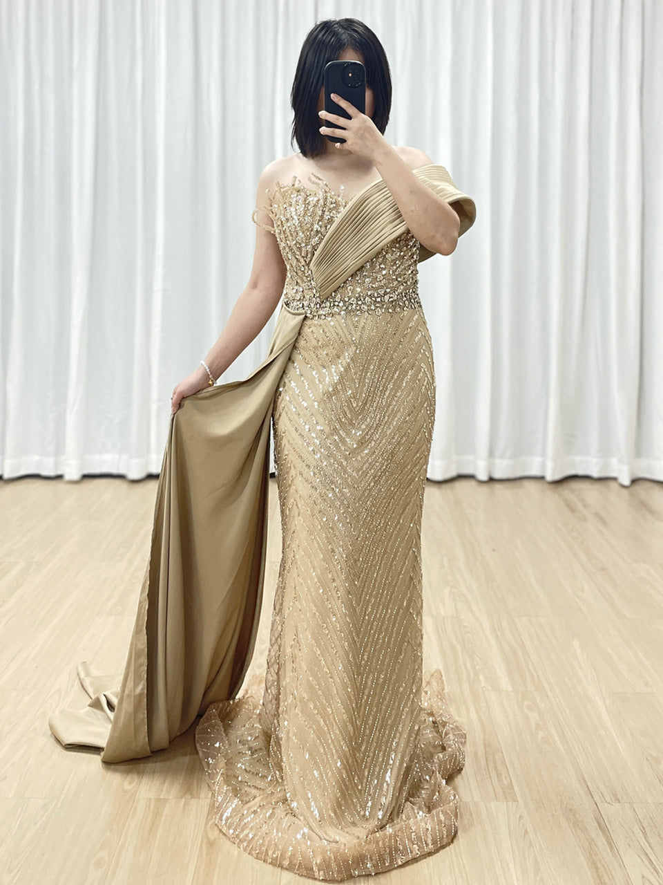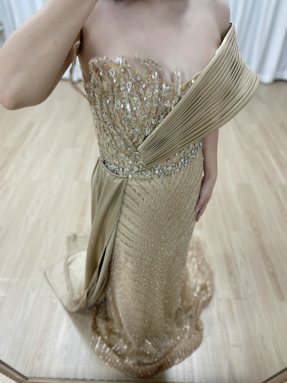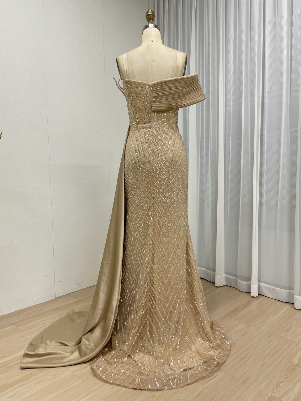 Luxury Evening Gown Suitable for Banquet Embellished With Dazzling Embroidery Bead and Removable Side Skirt MB40320