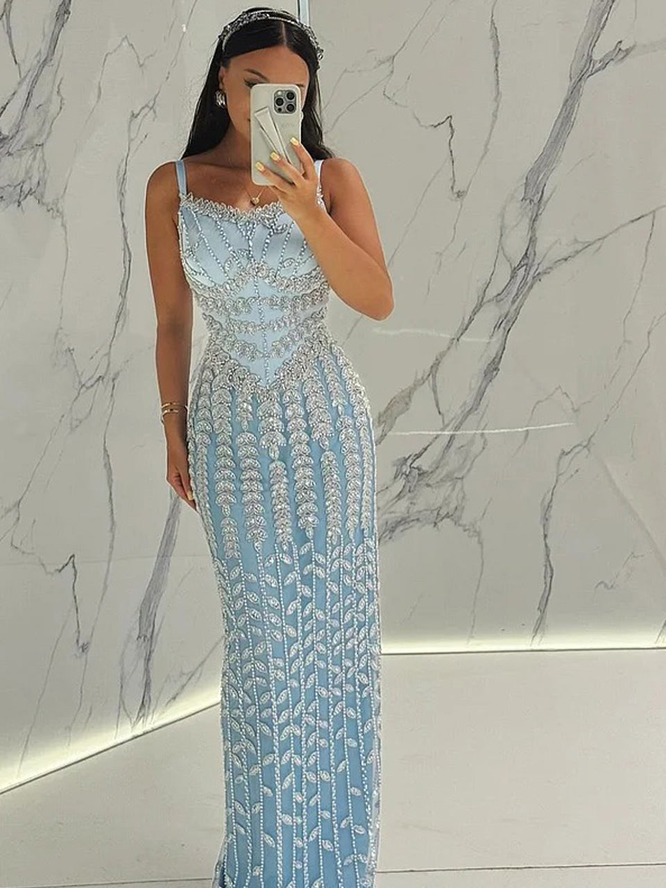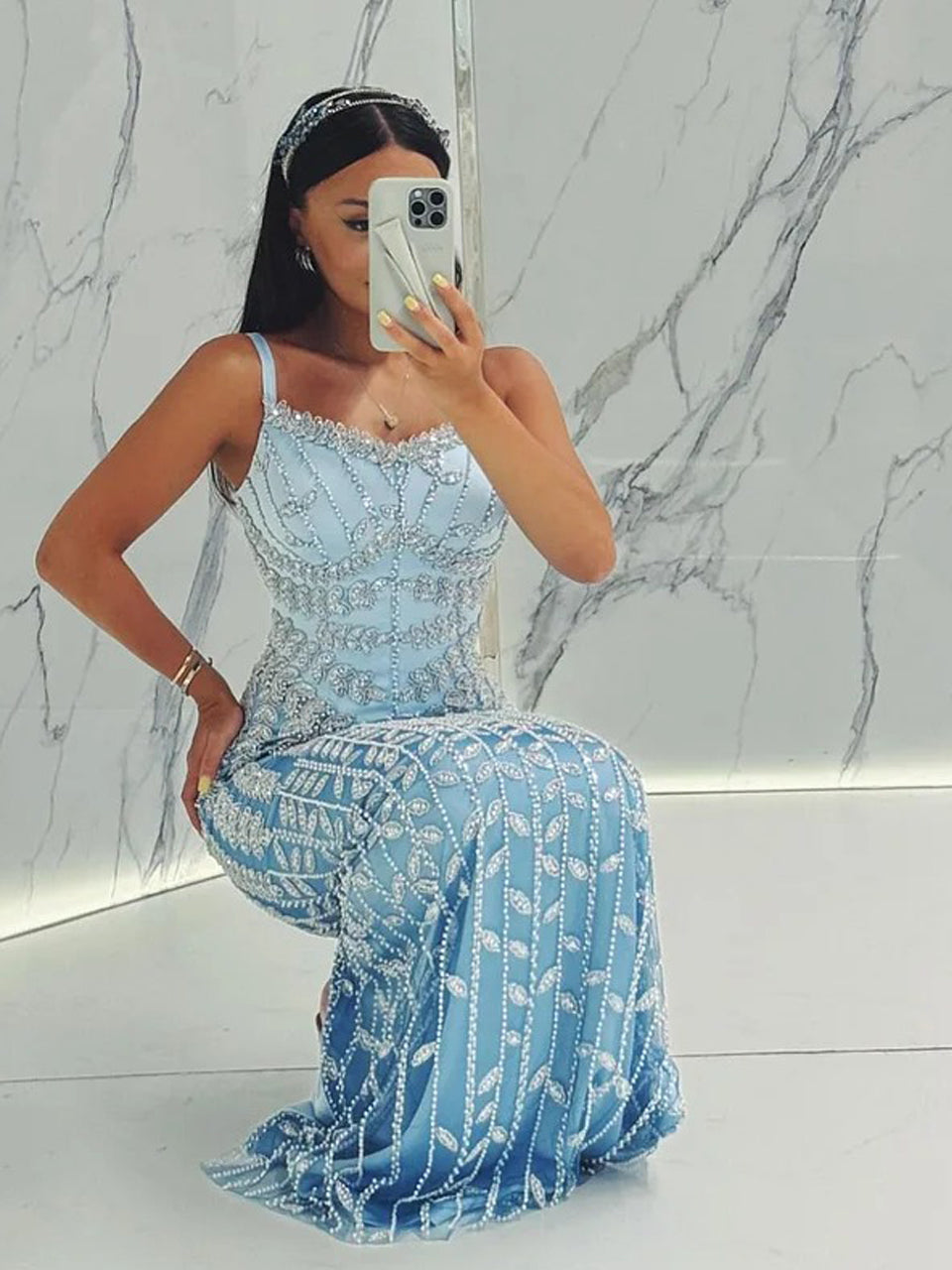Luxury Graceful Spaghetti Strap High Slit Evening Gown Suitable for Prom MB40346