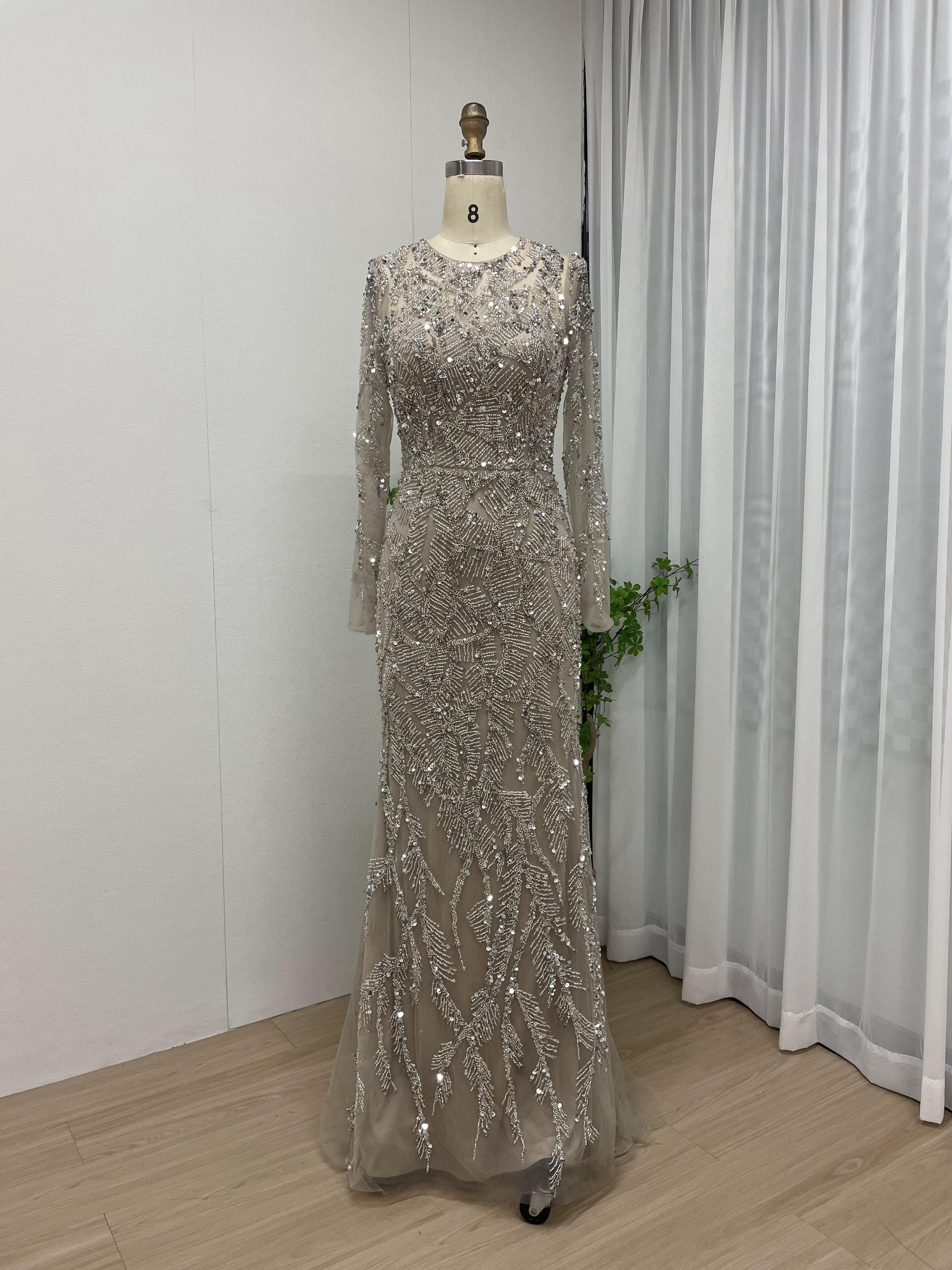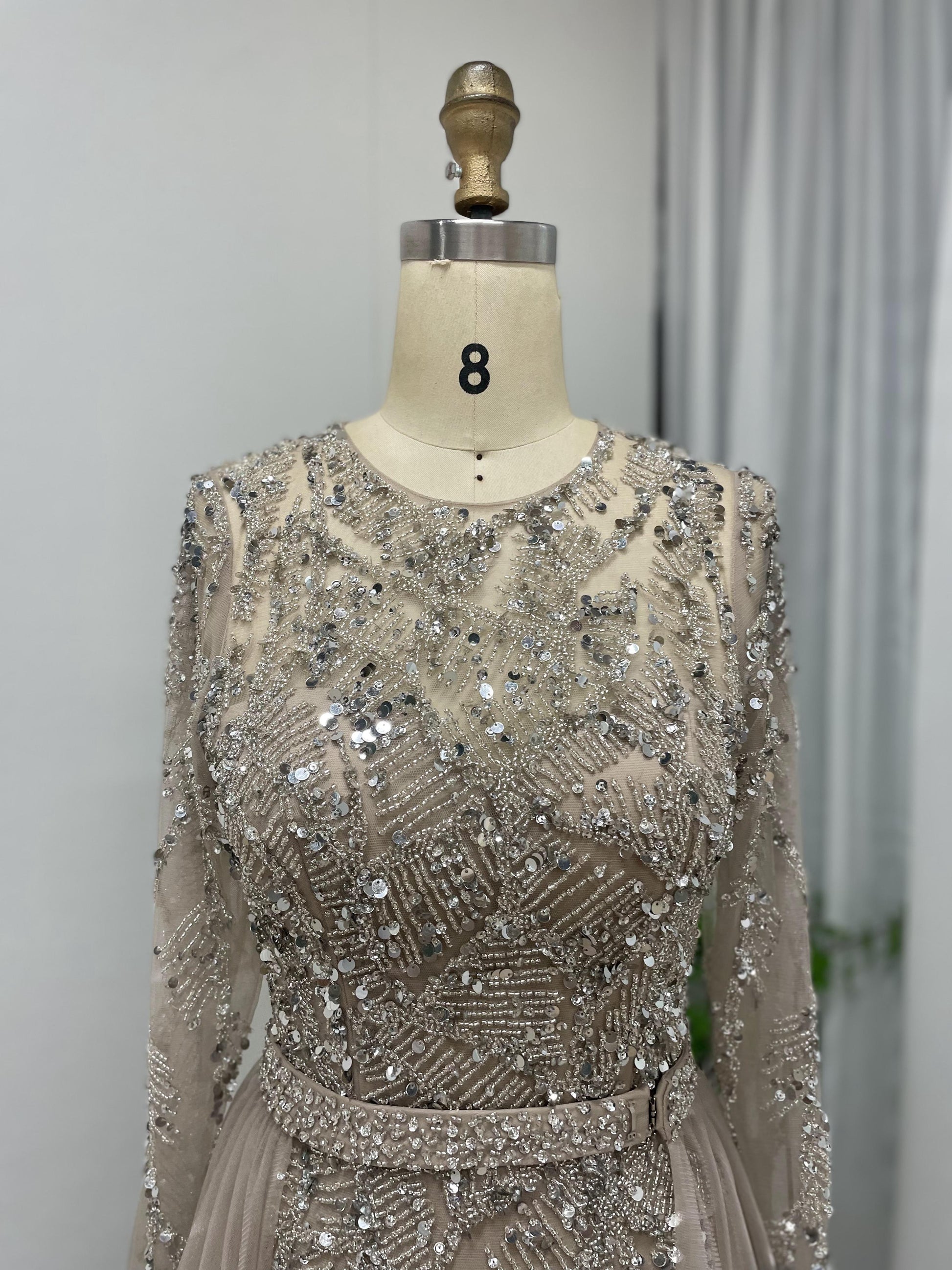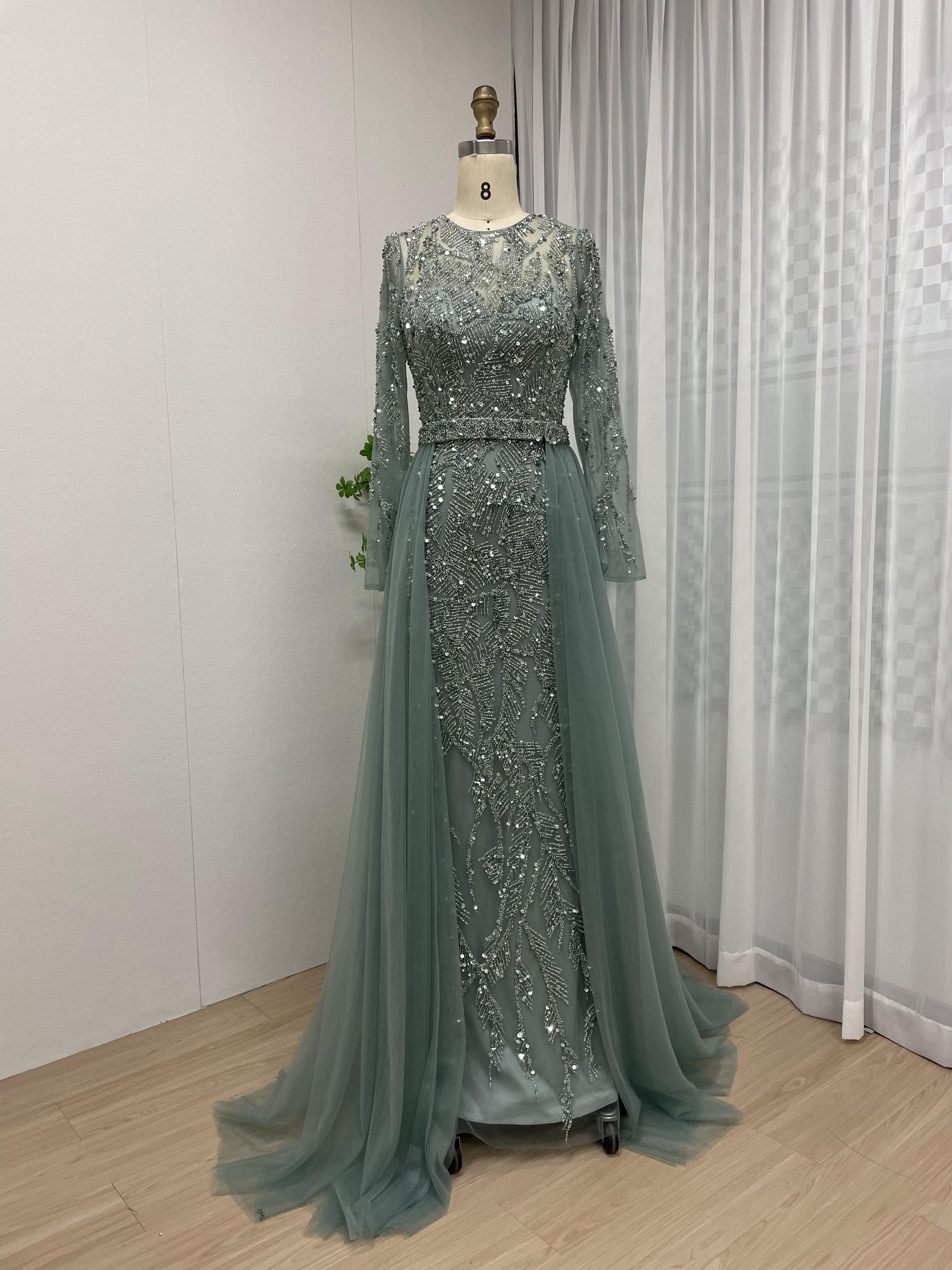 Luxury Handmade Beading Long Sleeve Wedding Party Evening Dress With Overskirt MB40214