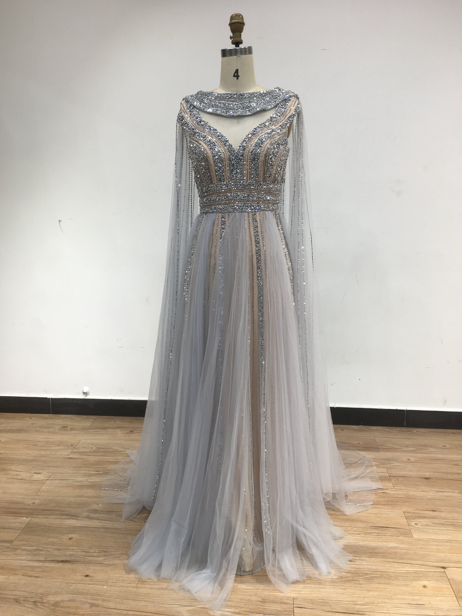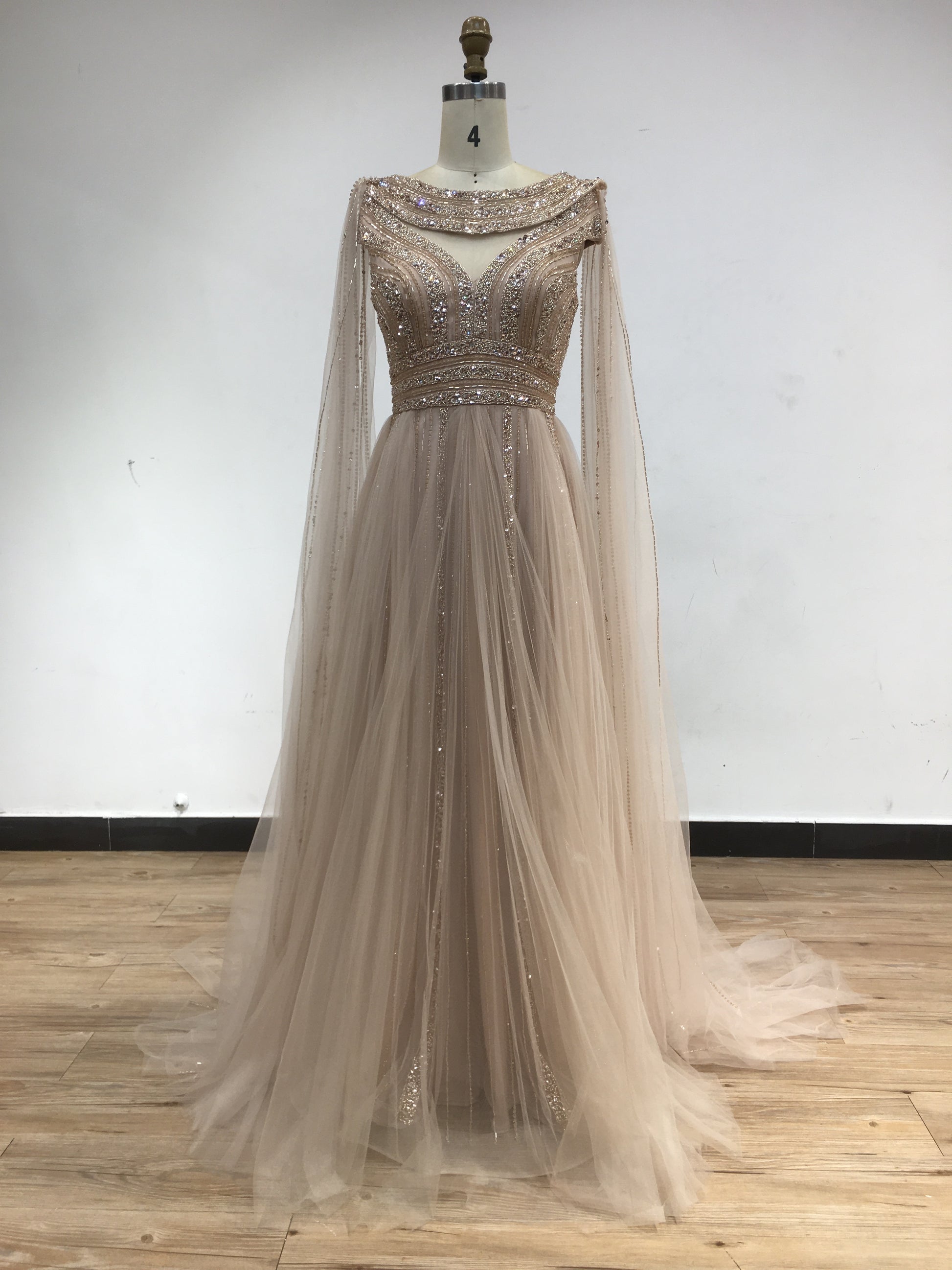 Luxury Haute Beading A Line Flowing Sleeve Evening Dress DKN3114