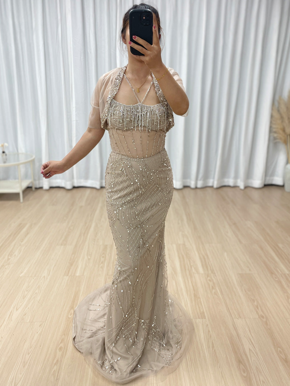 Luxury Haute Couture Mermaid Evening Dress With Jacket Strap Evening Gowns MB40387