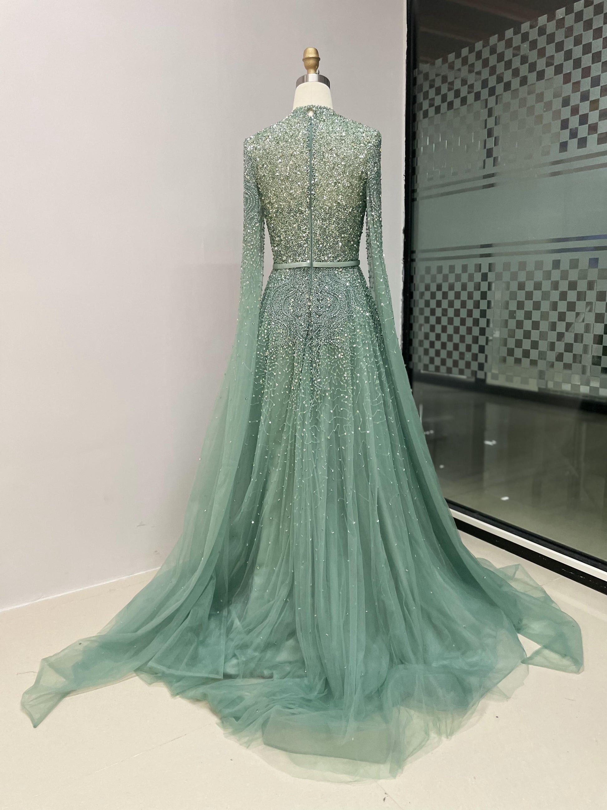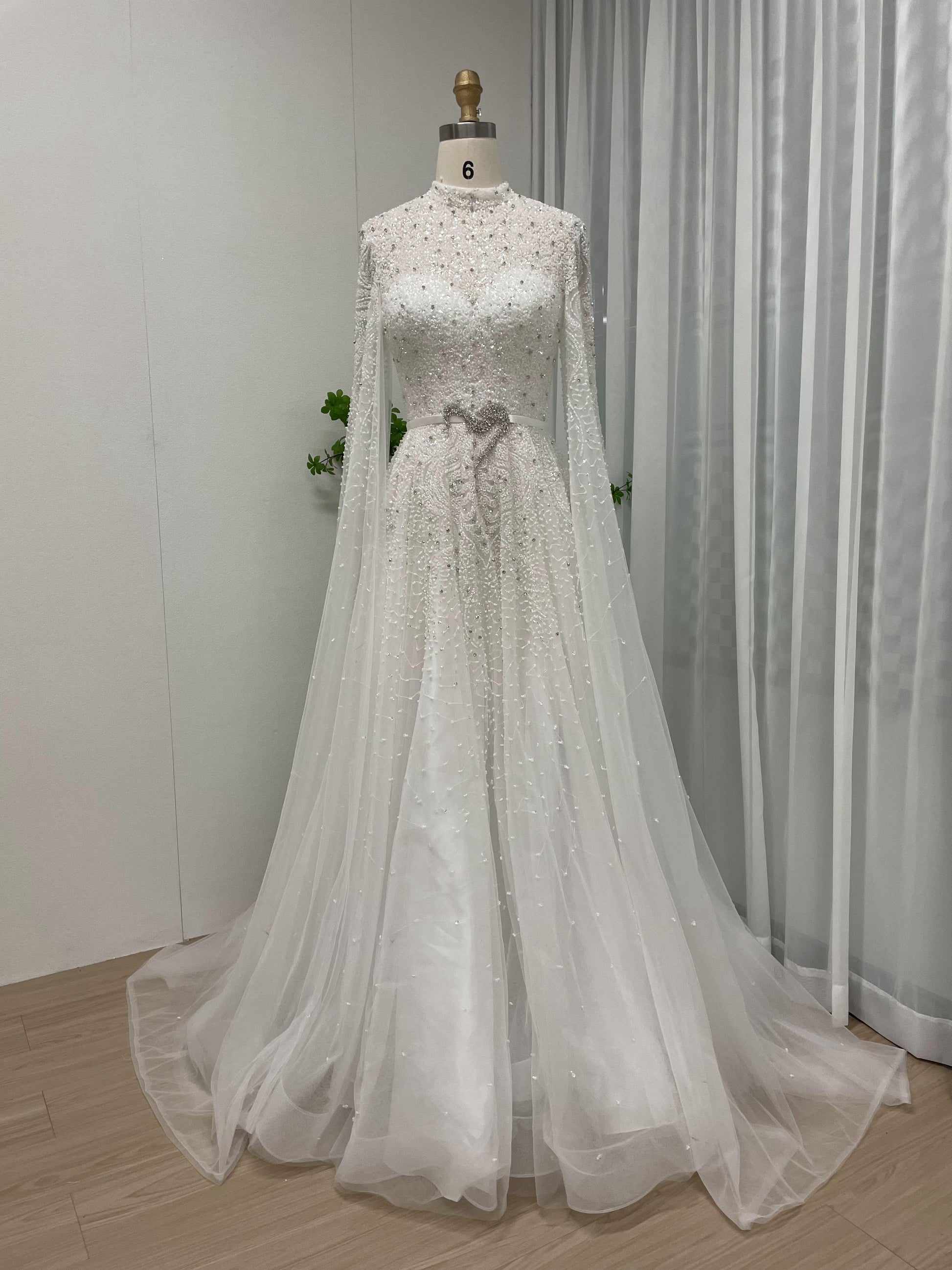 Luxury High Neck Beading Couture A Line Long Sleeve Dress MB40029