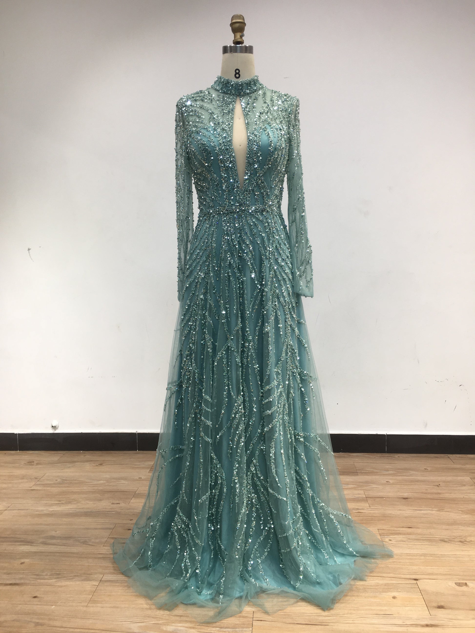Luxury Long Sleeve A Line Beading Evening Dress IRA279
