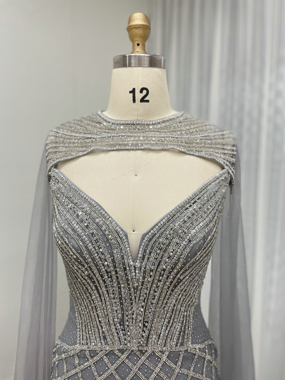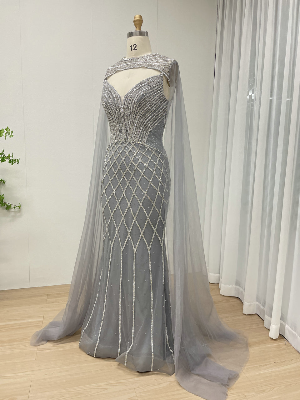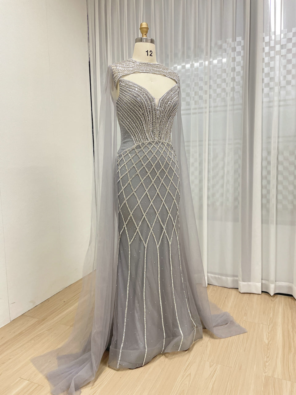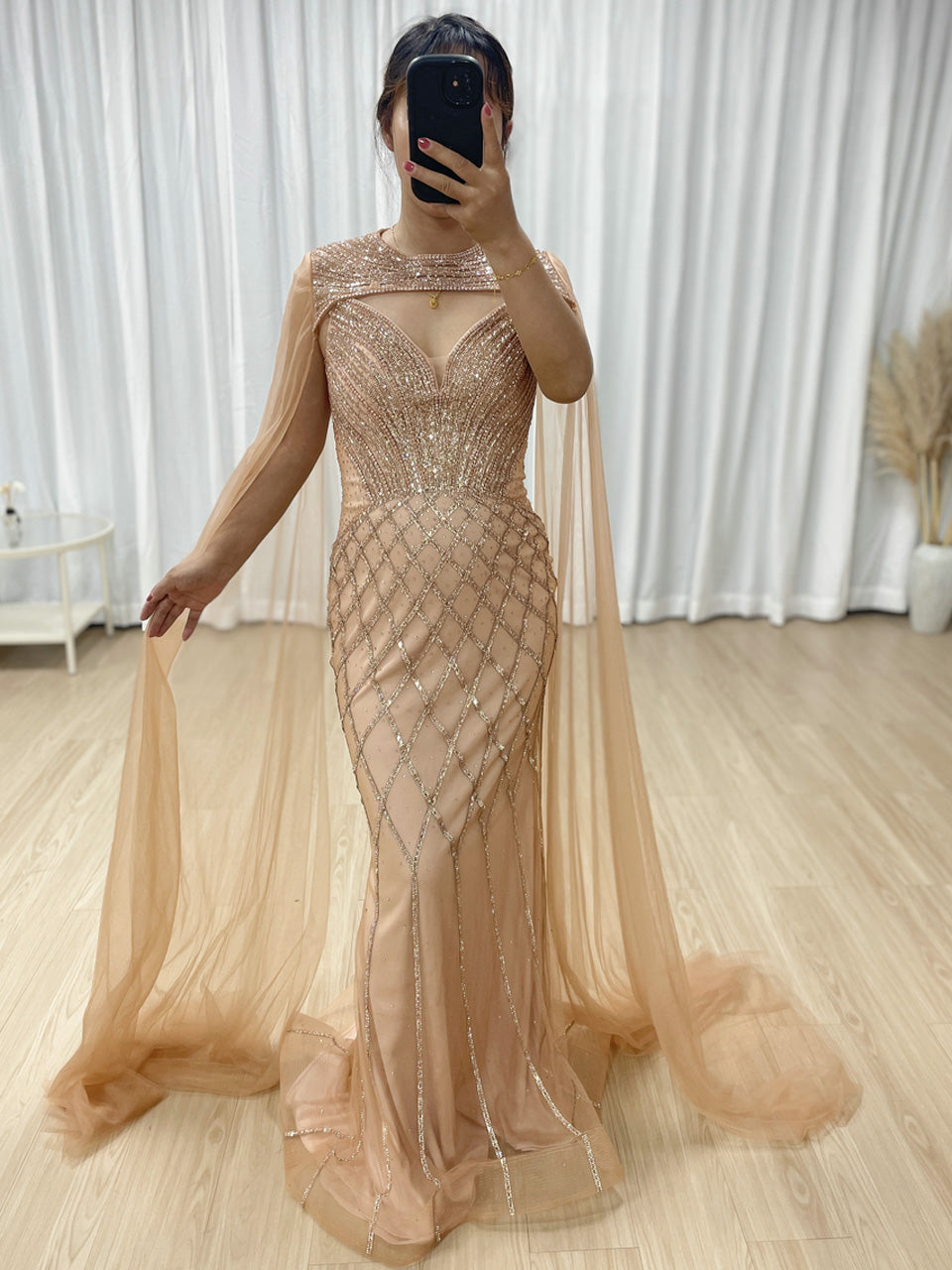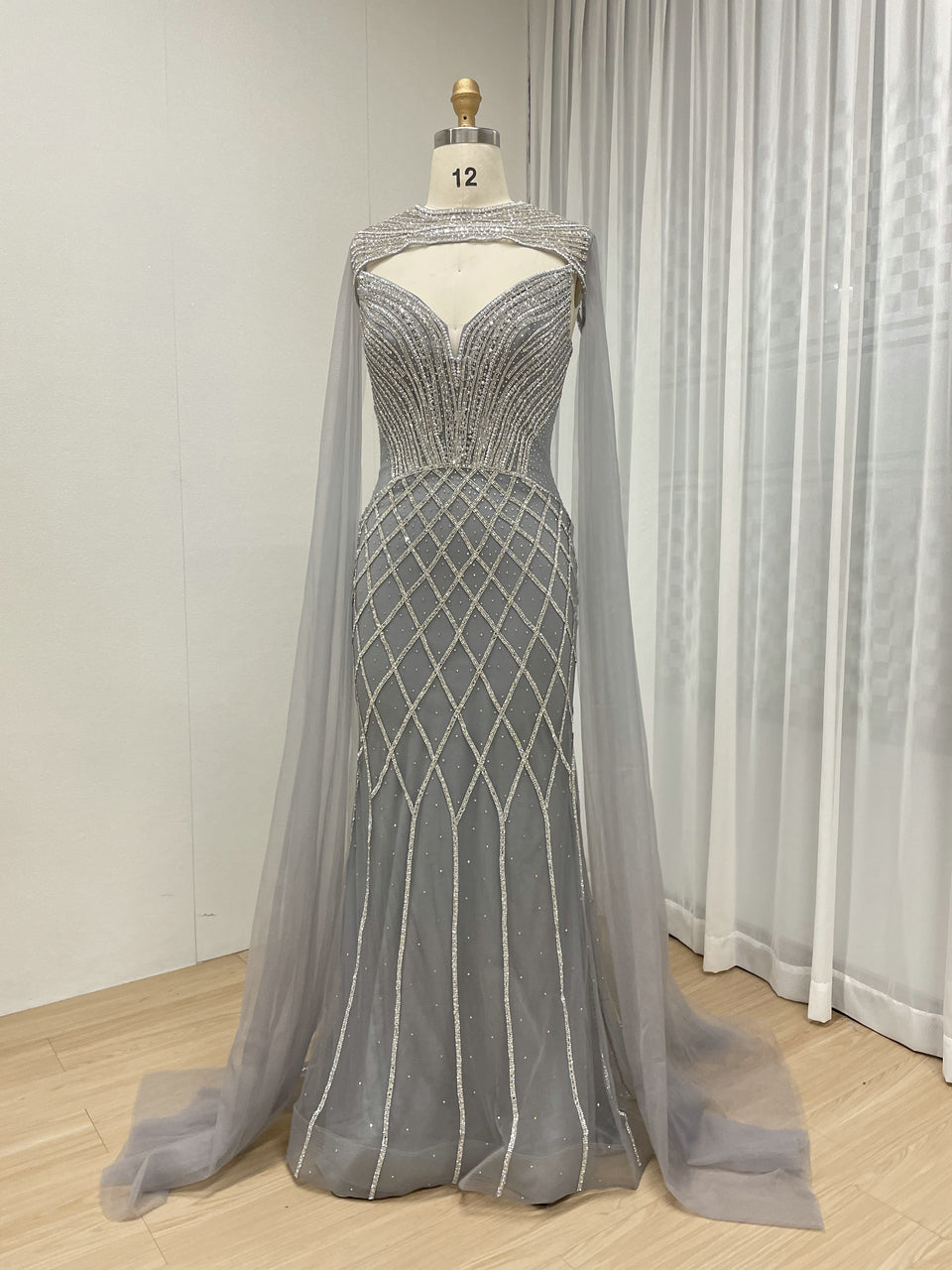 Luxury Mermaid Prom Evening Gown With Elegant Detachable Cap Sleeve MB40376