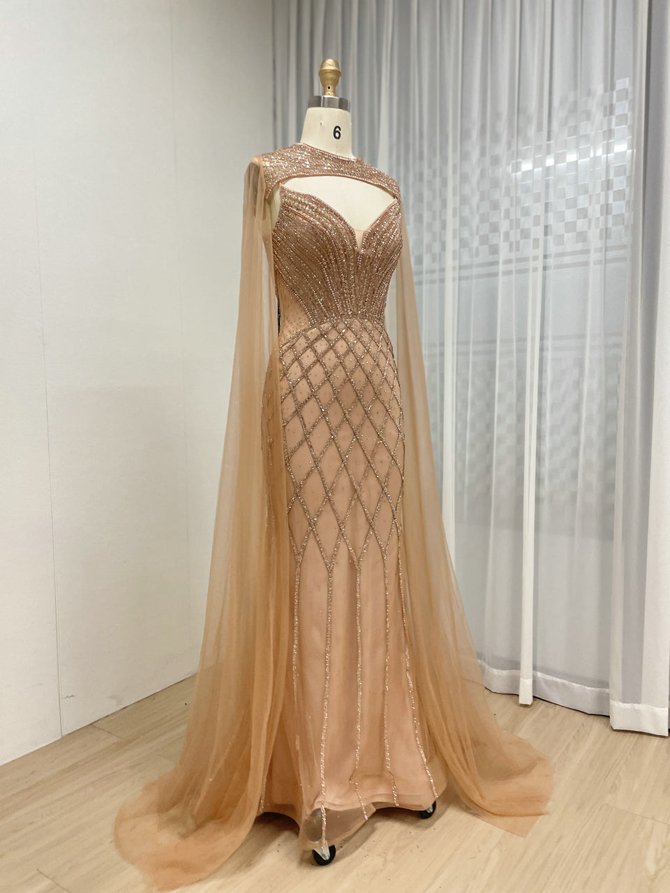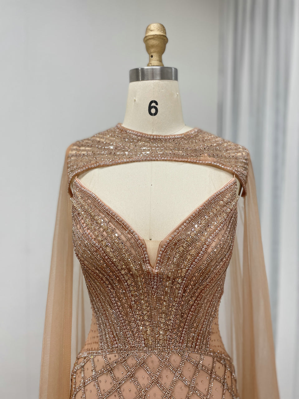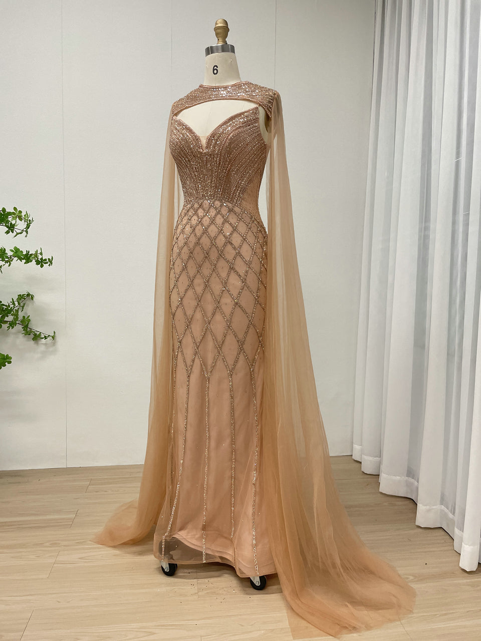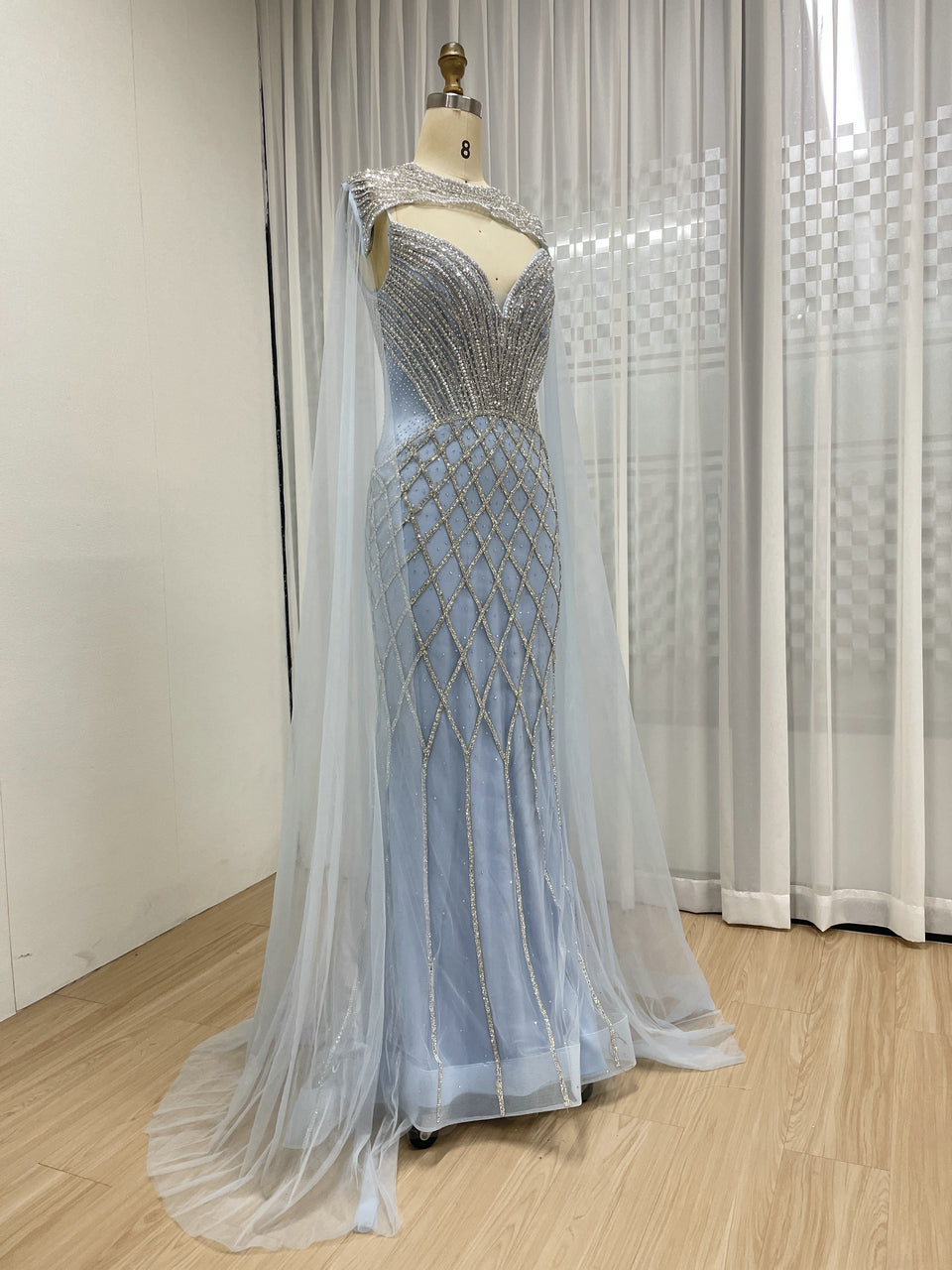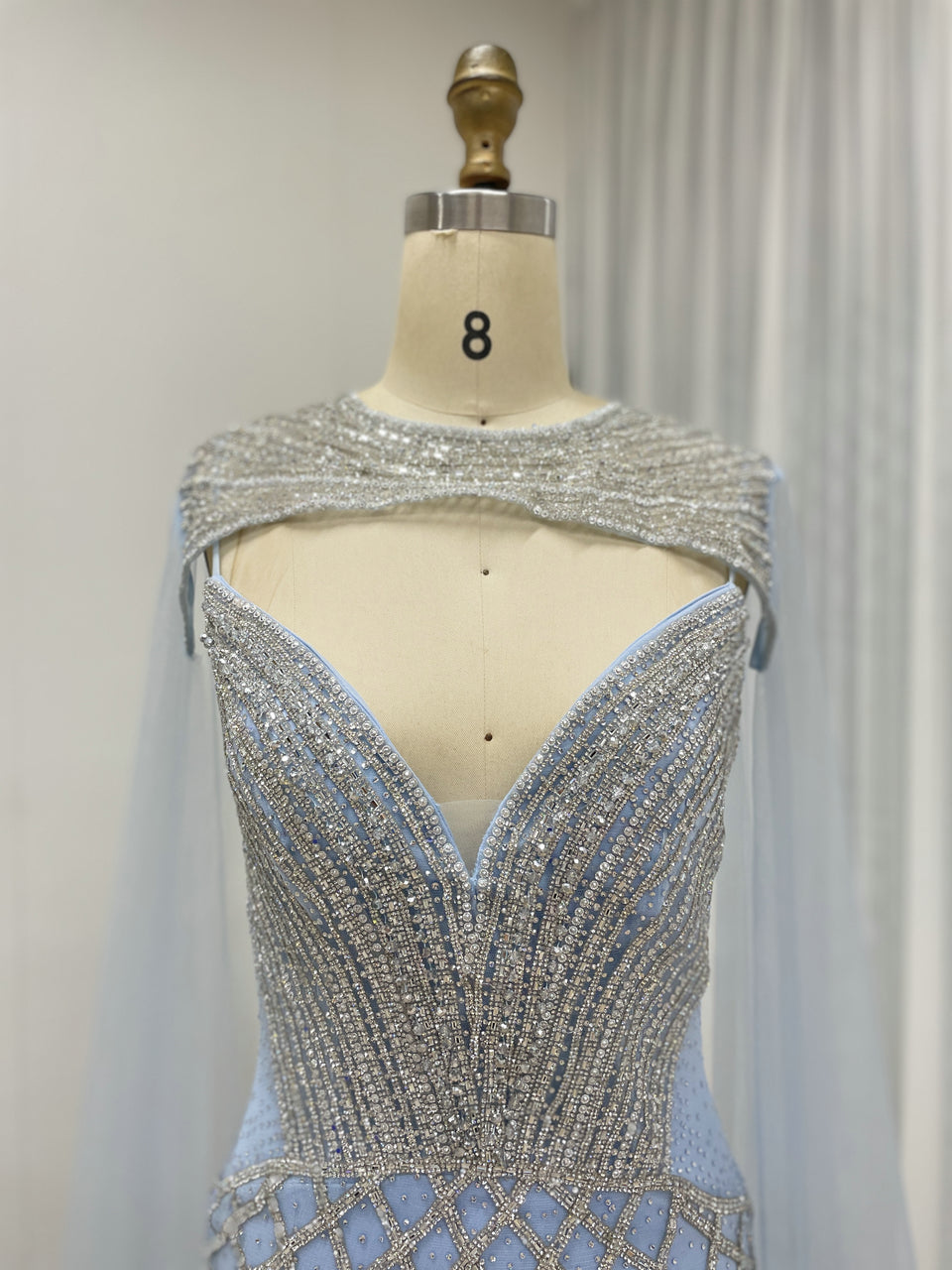 Luxury Mermaid Prom Evening Gown With Elegant Detachable Cap Sleeve MB40376