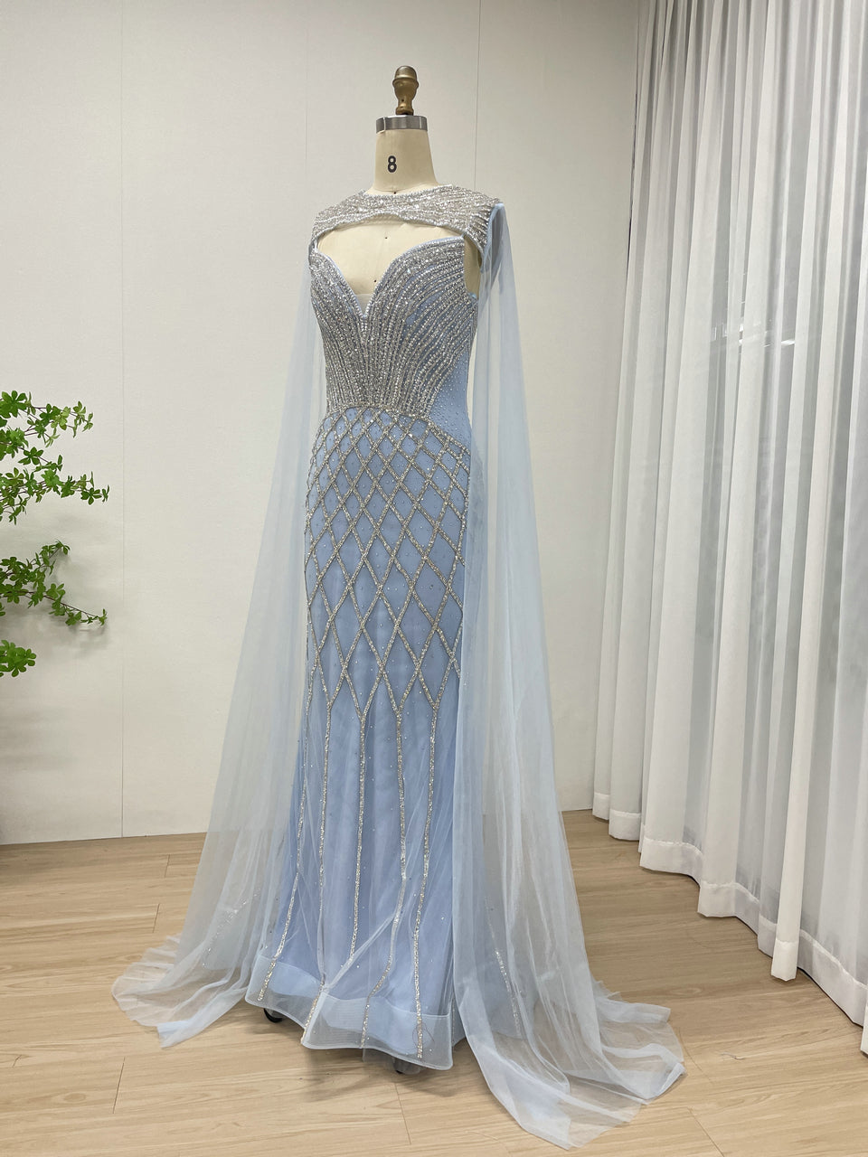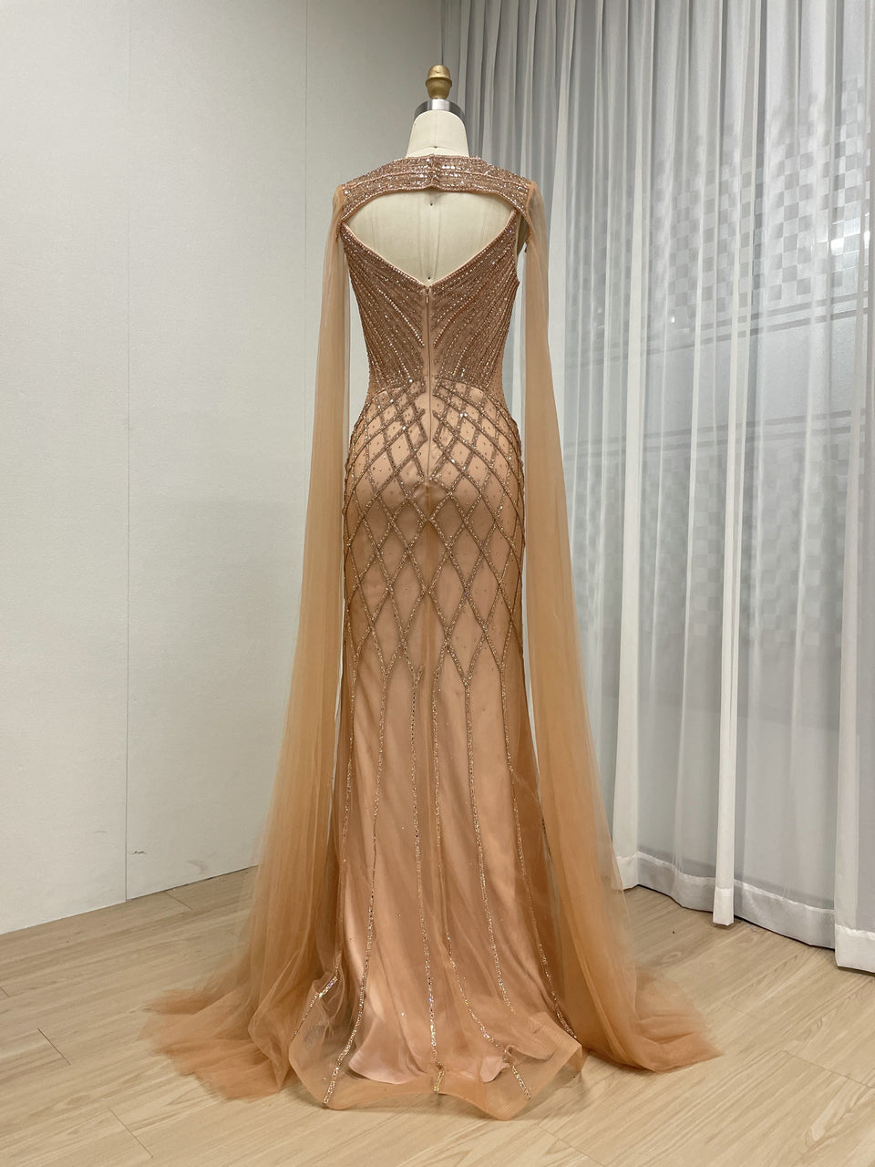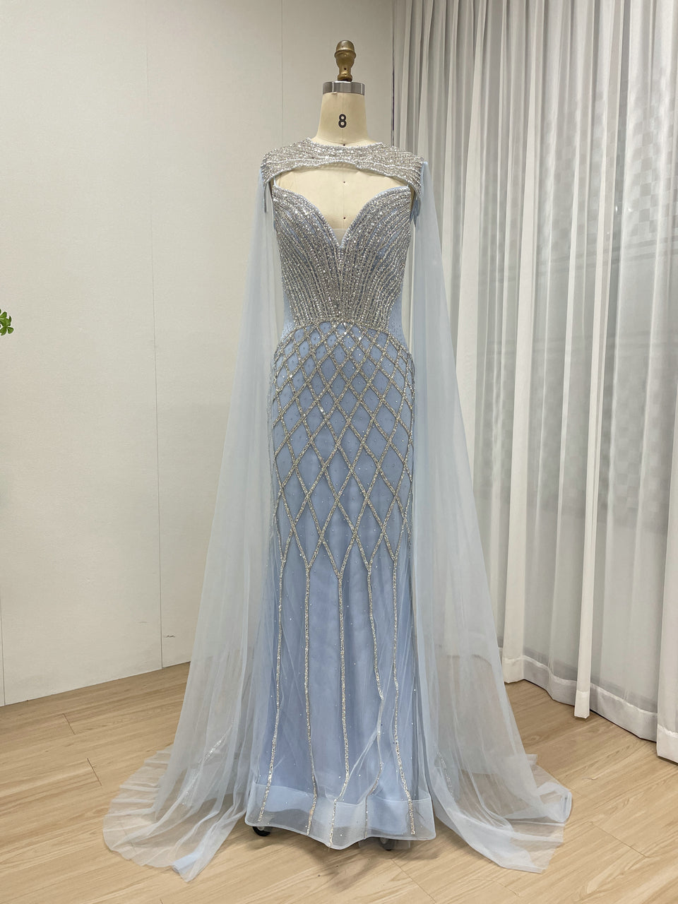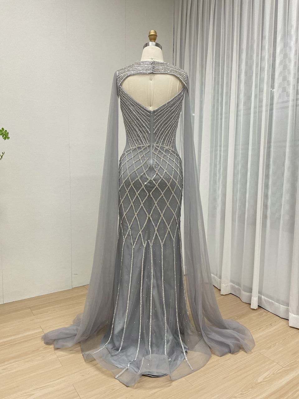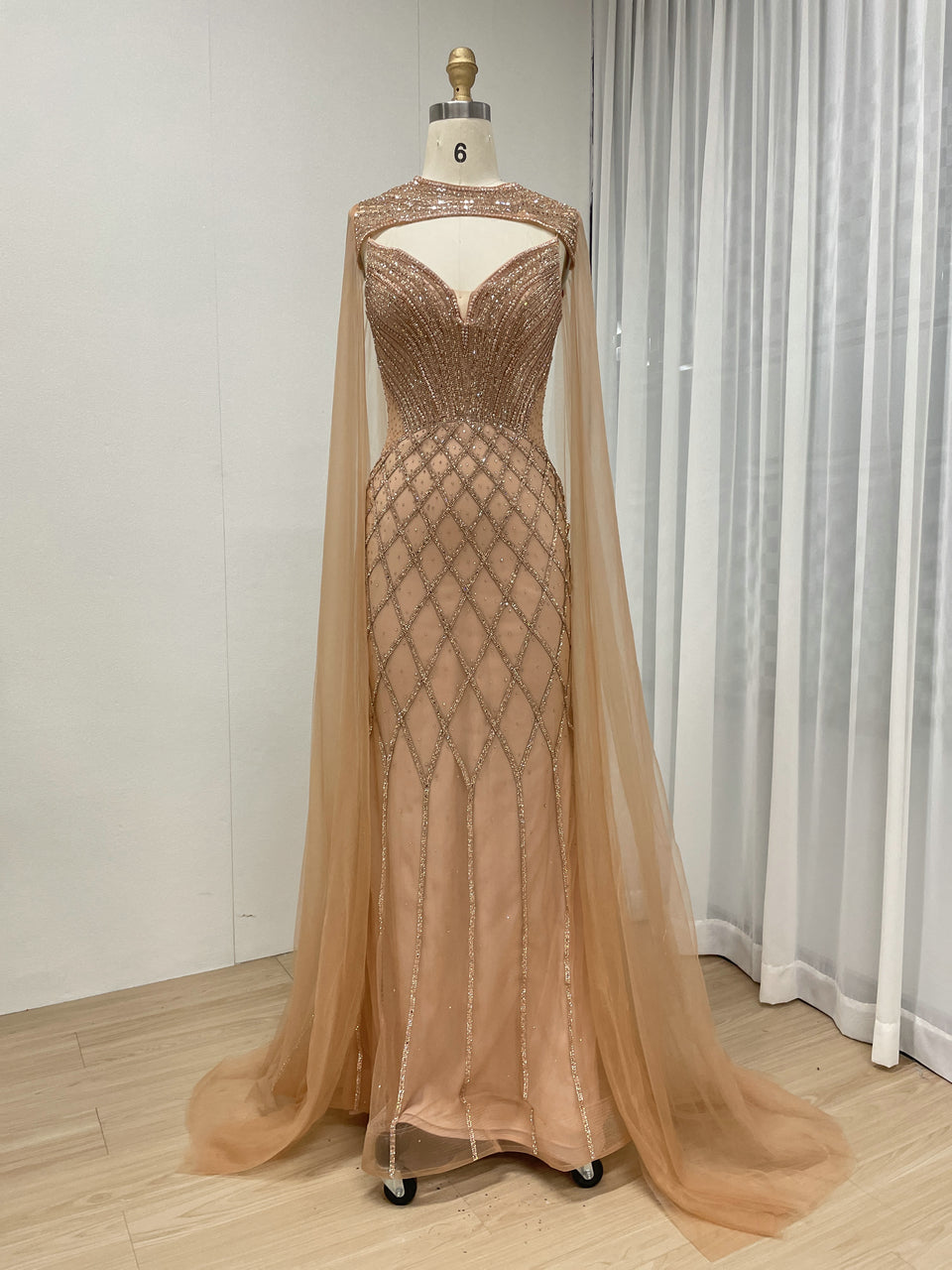 Luxury Mermaid Prom Evening Gown With Elegant Detachable Cap Sleeve MB40376