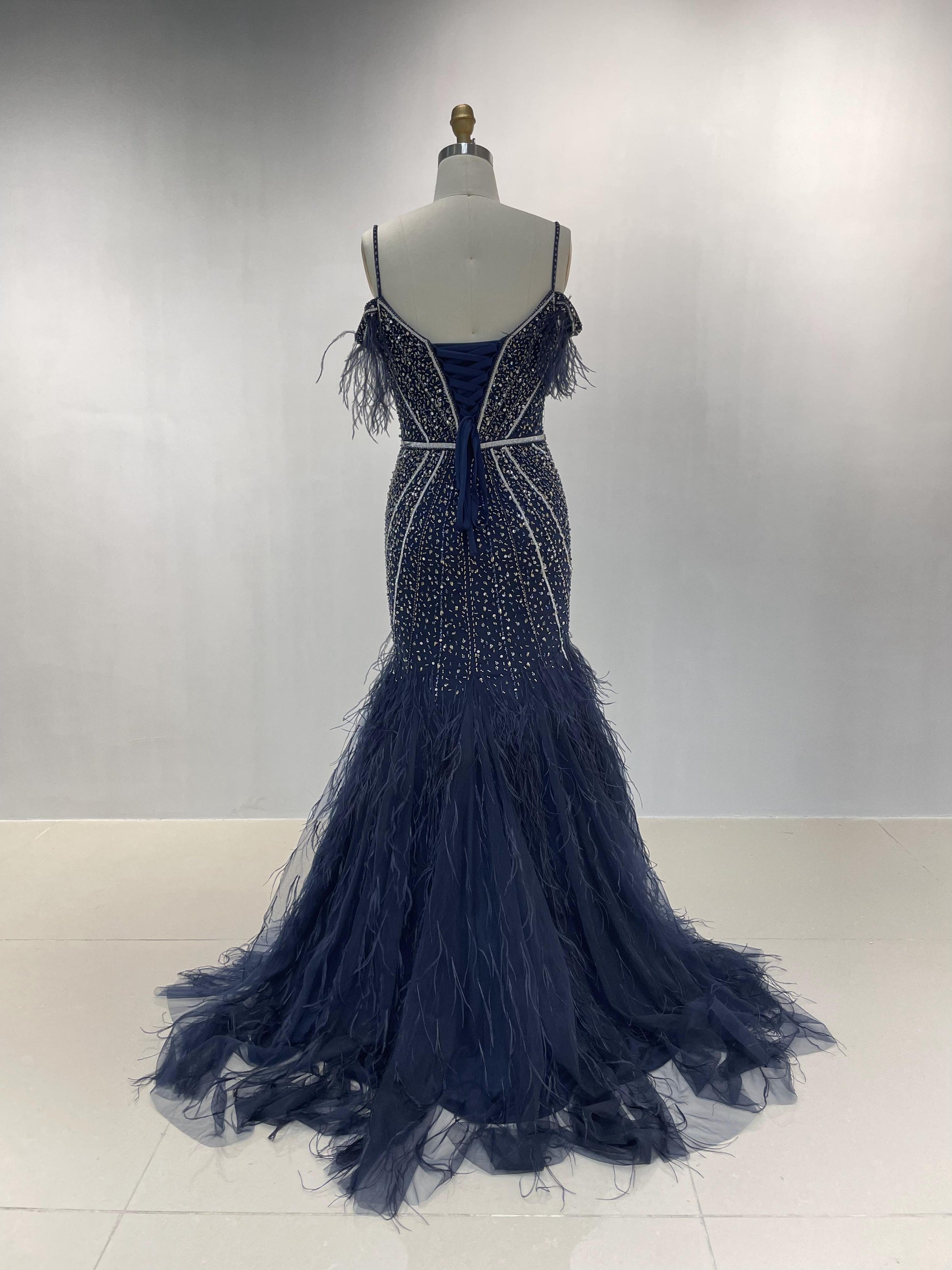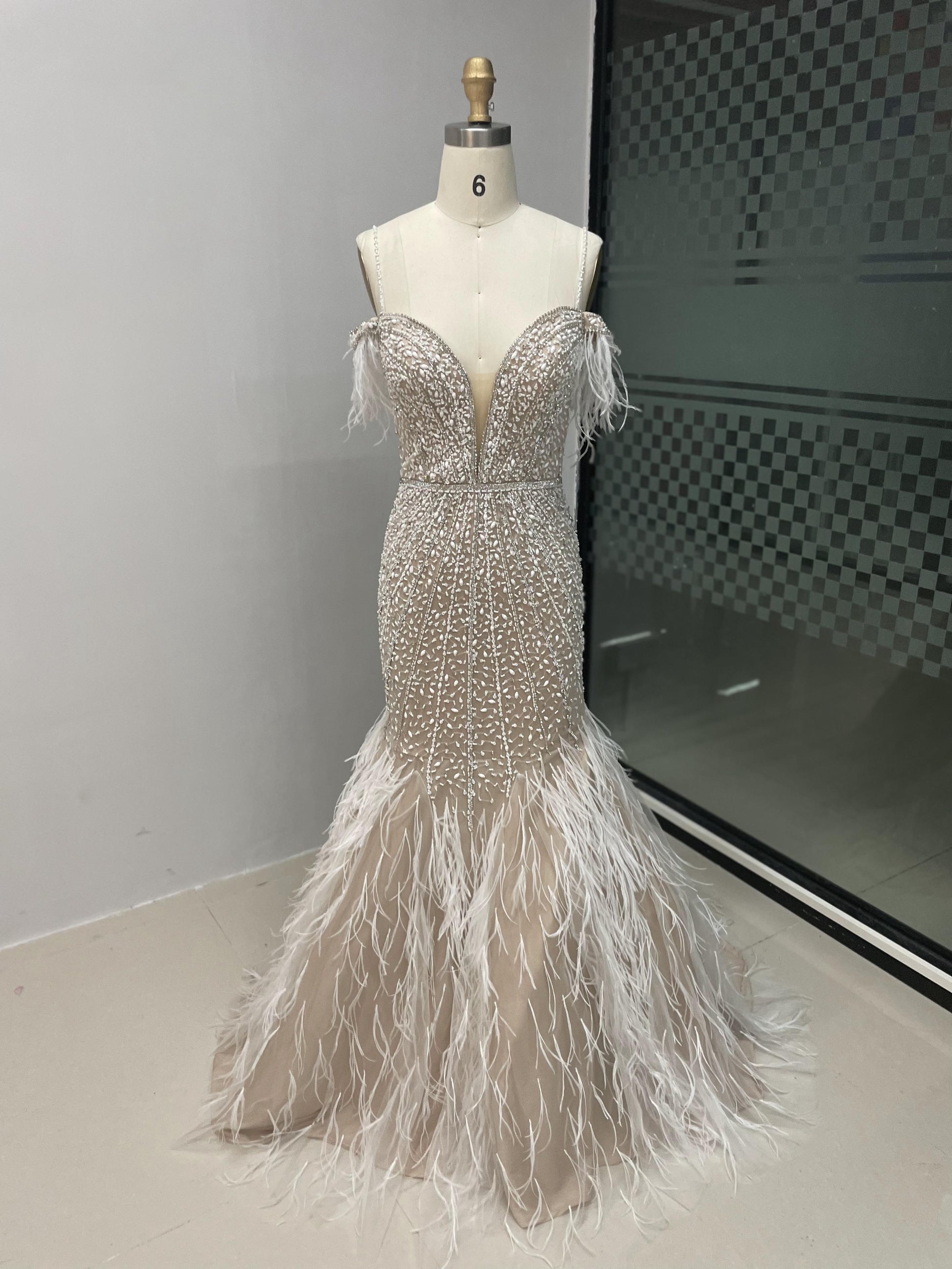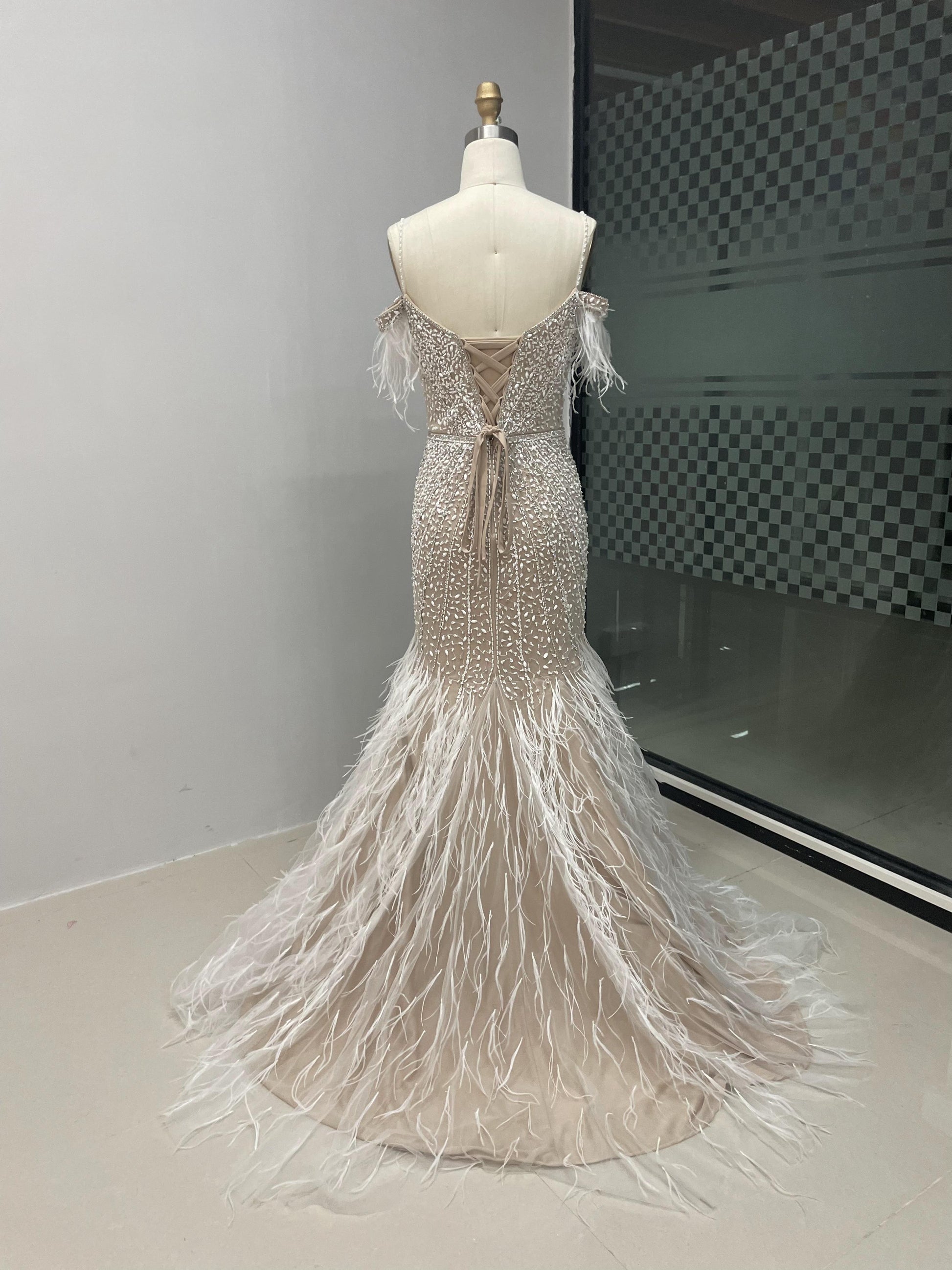 Luxury Off Shoulder Beading Feather Mermaid Evening Dress MB20021
