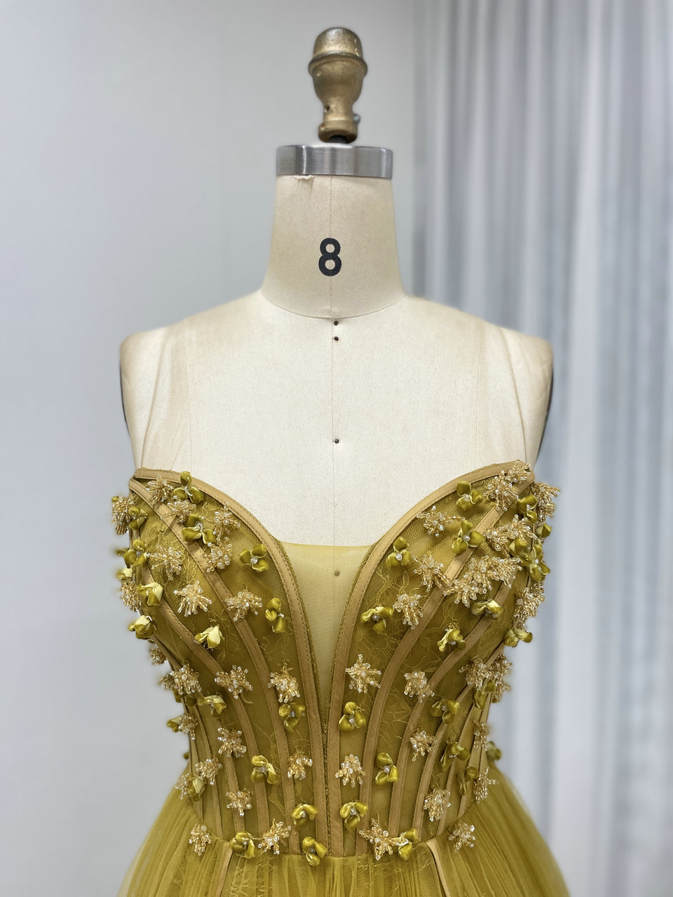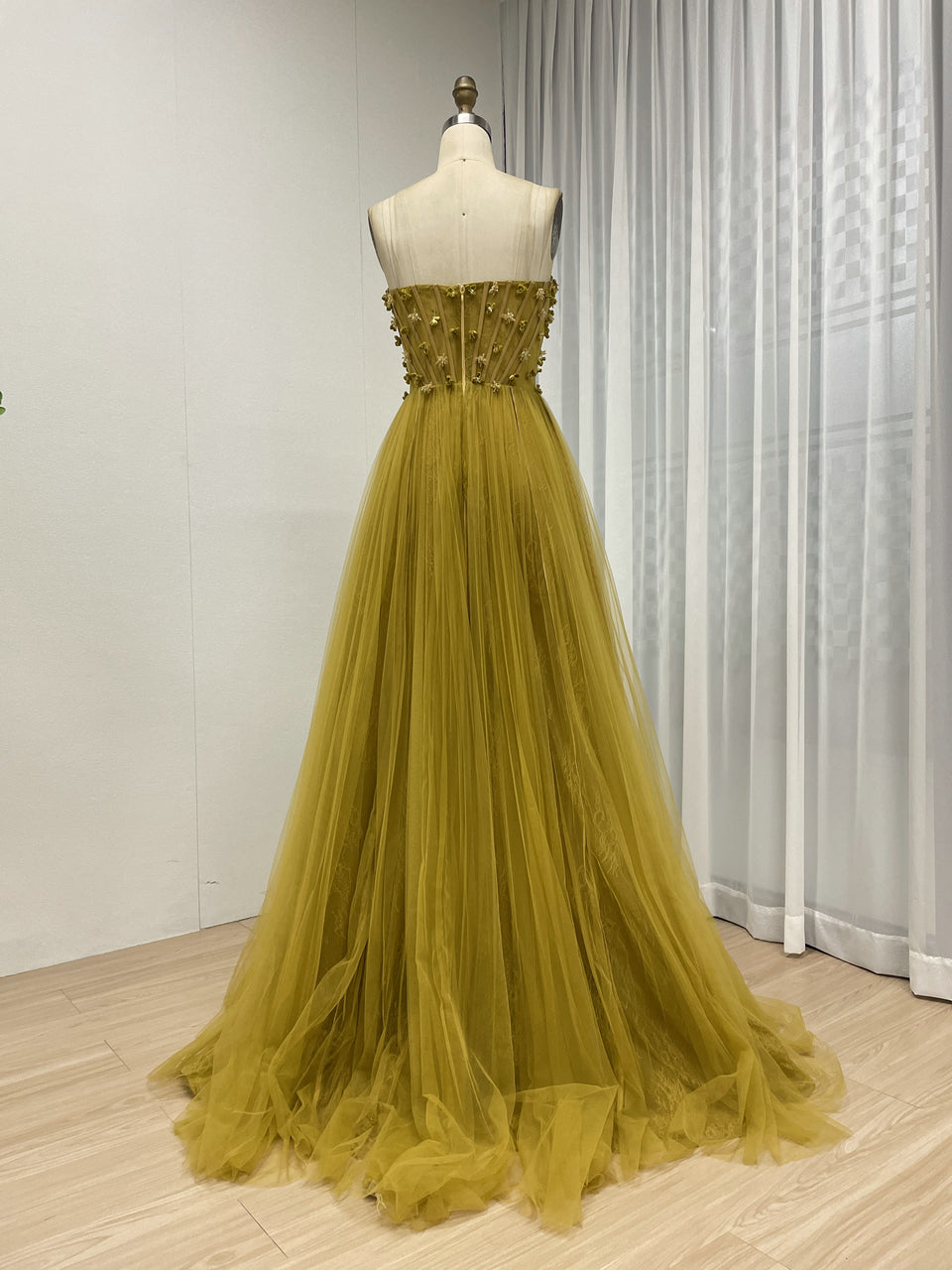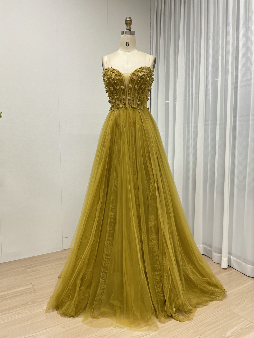 Luxury Olive Green a Line Beautiful Floral Embroidered Strapless Wedding Dress MB40353