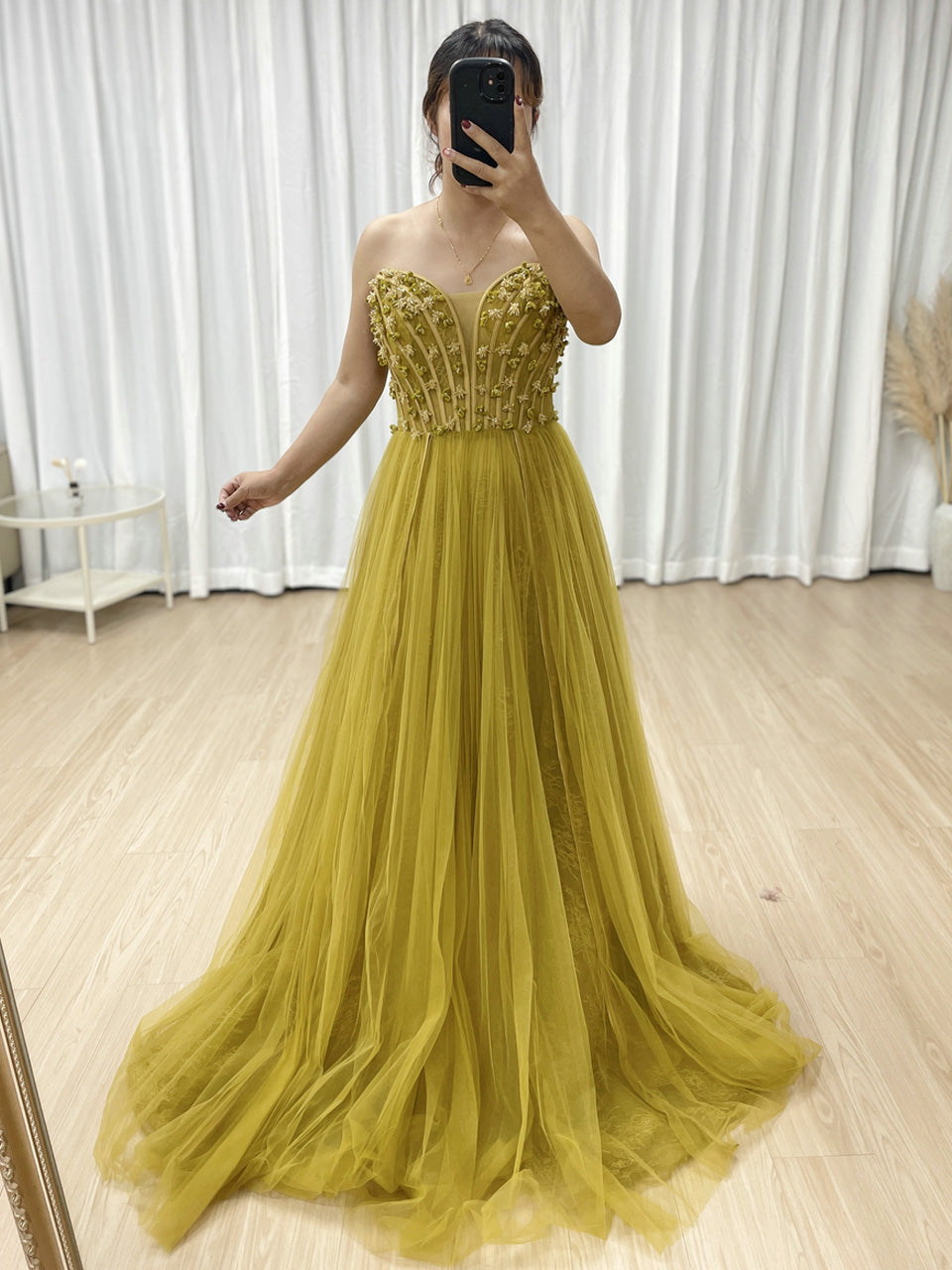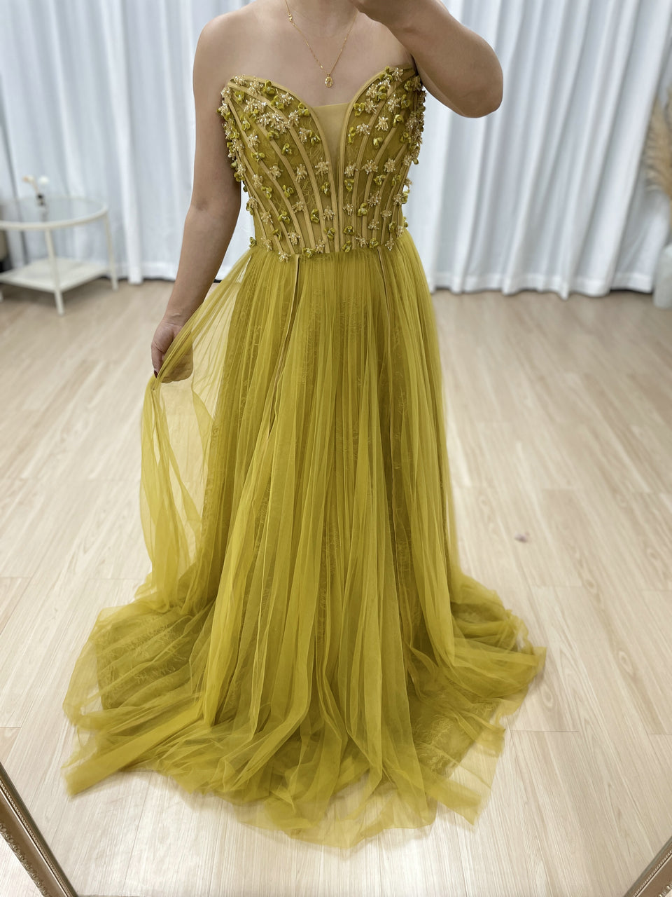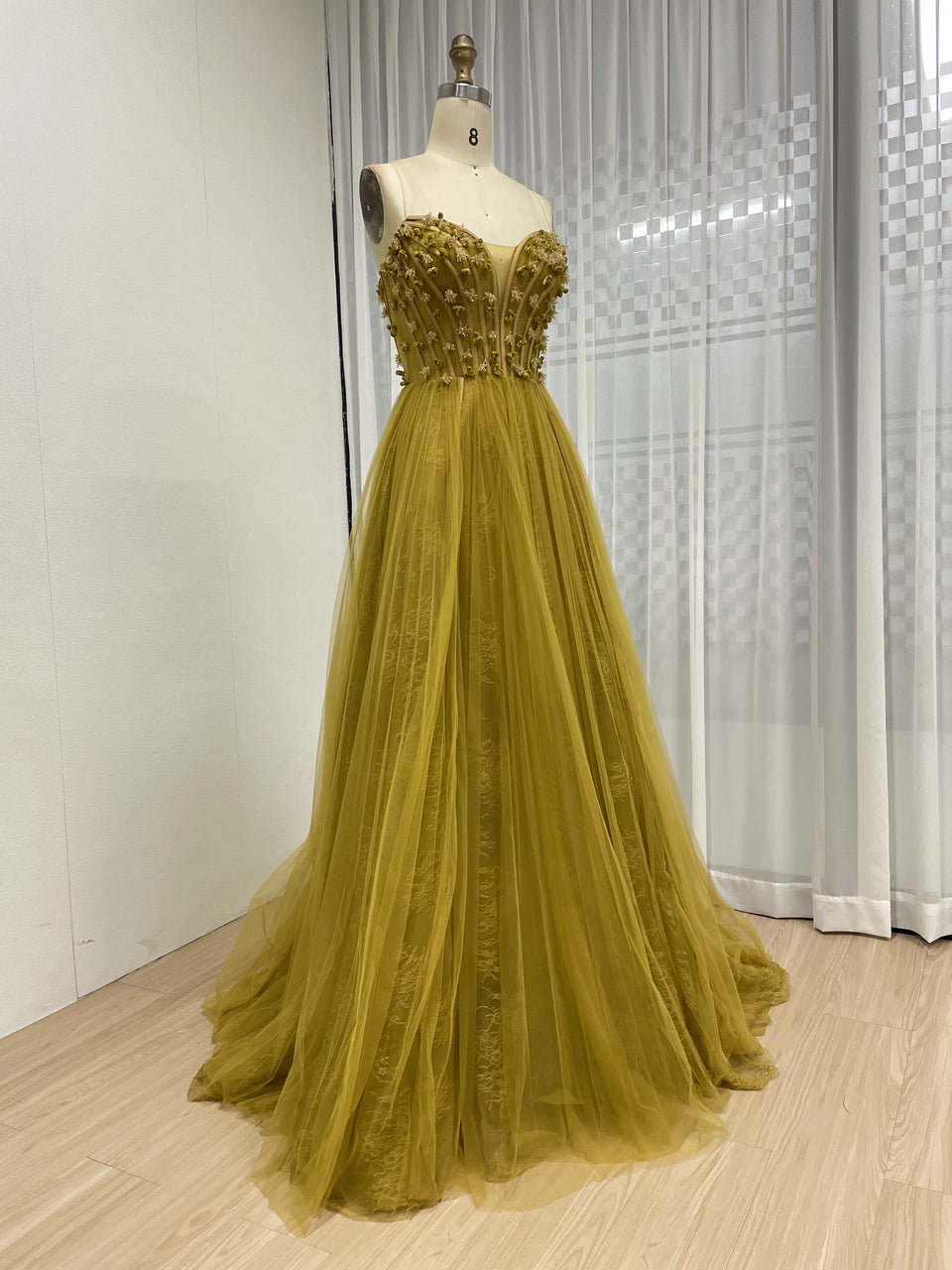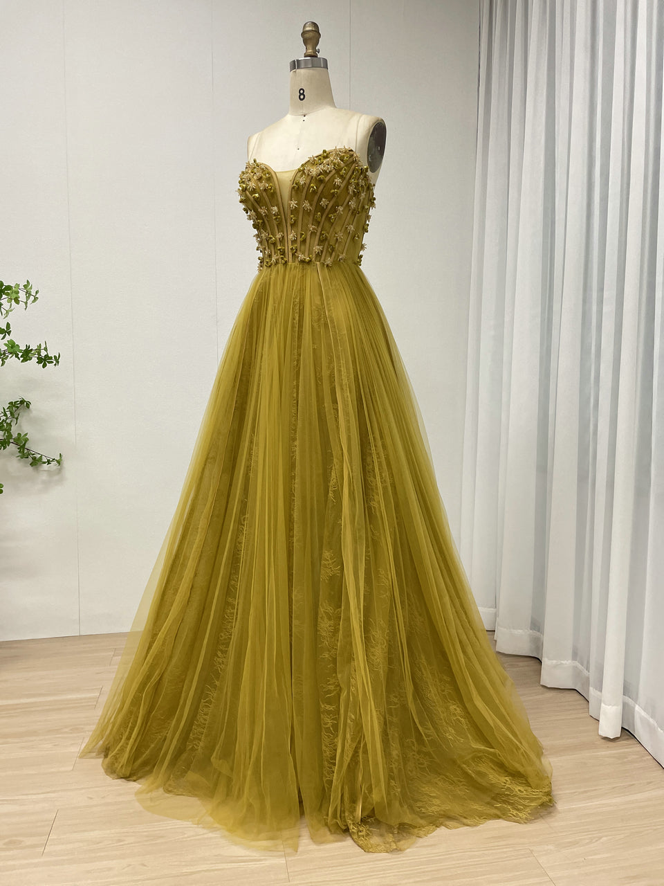 Luxury Olive Green a Line Beautiful Floral Embroidered Strapless Wedding Dress MB40353