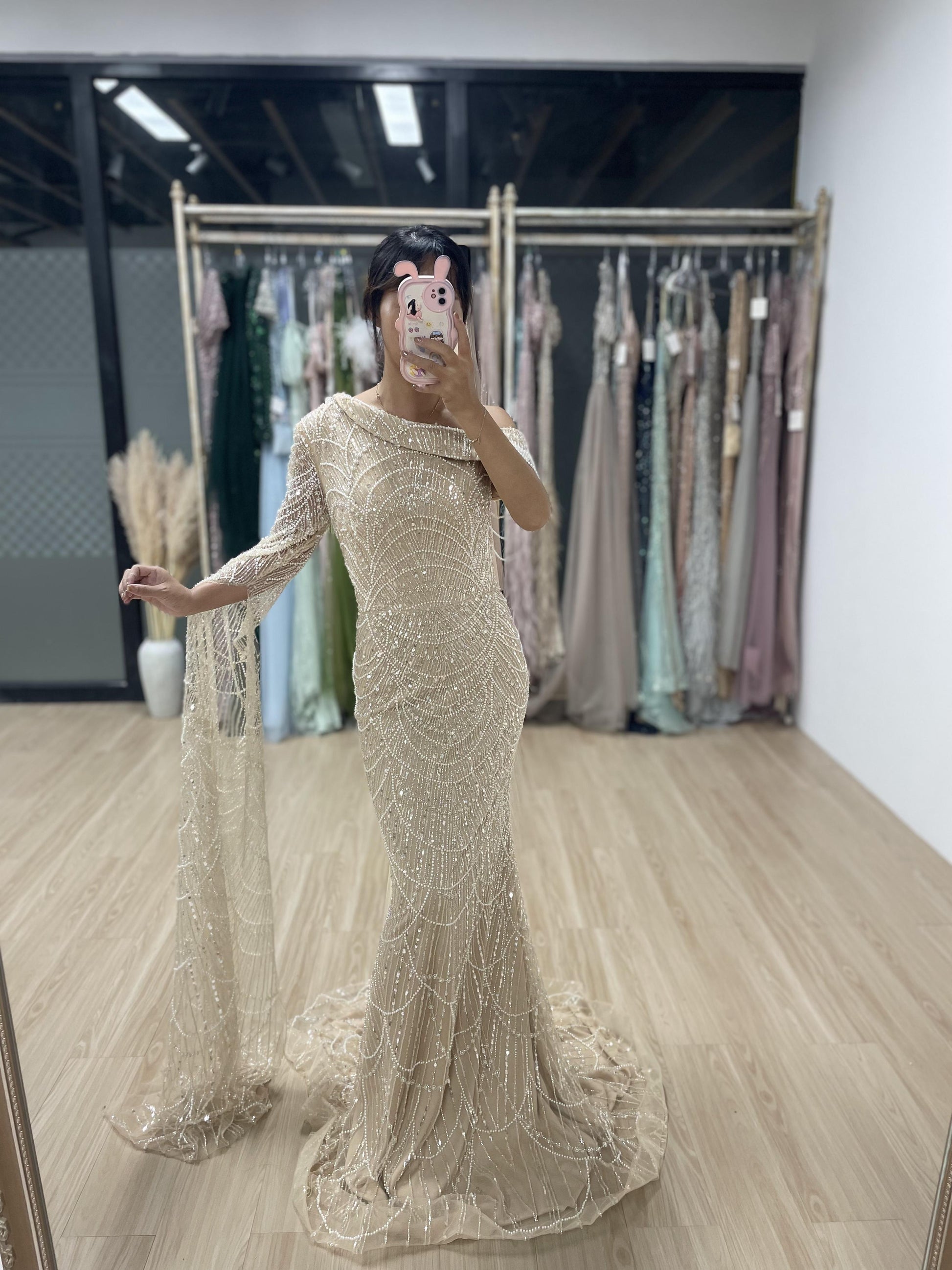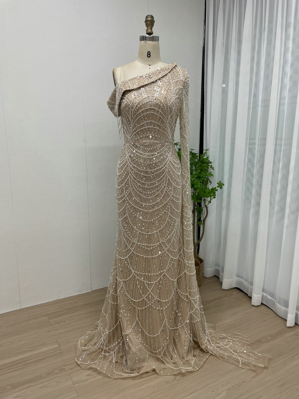 Luxury One Shoulder Cap Long Sleeve Evening Dress MY30051
