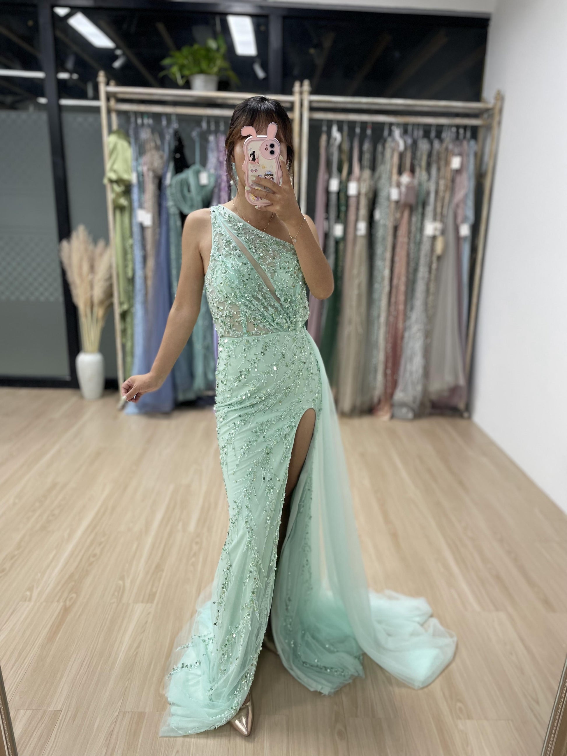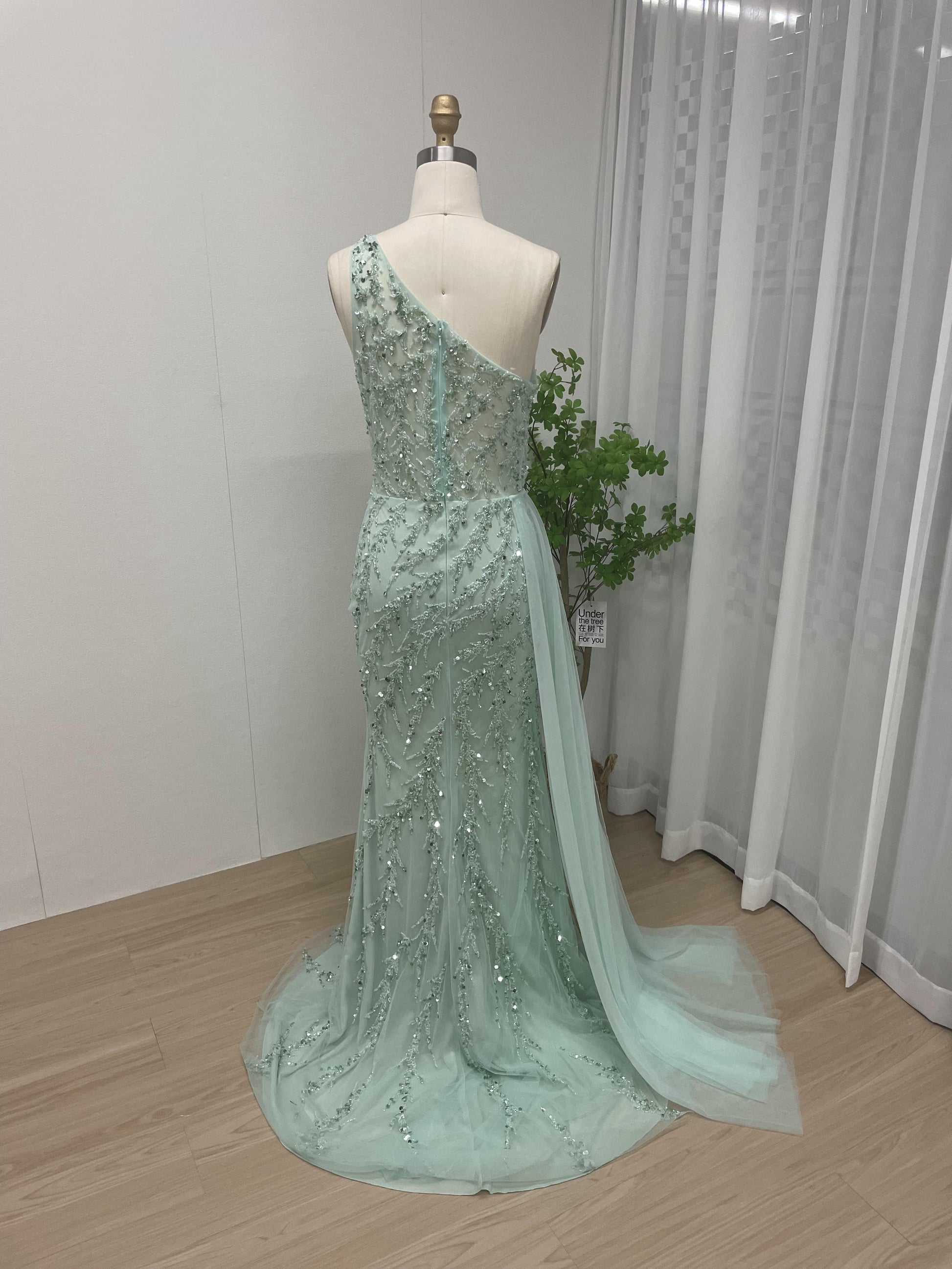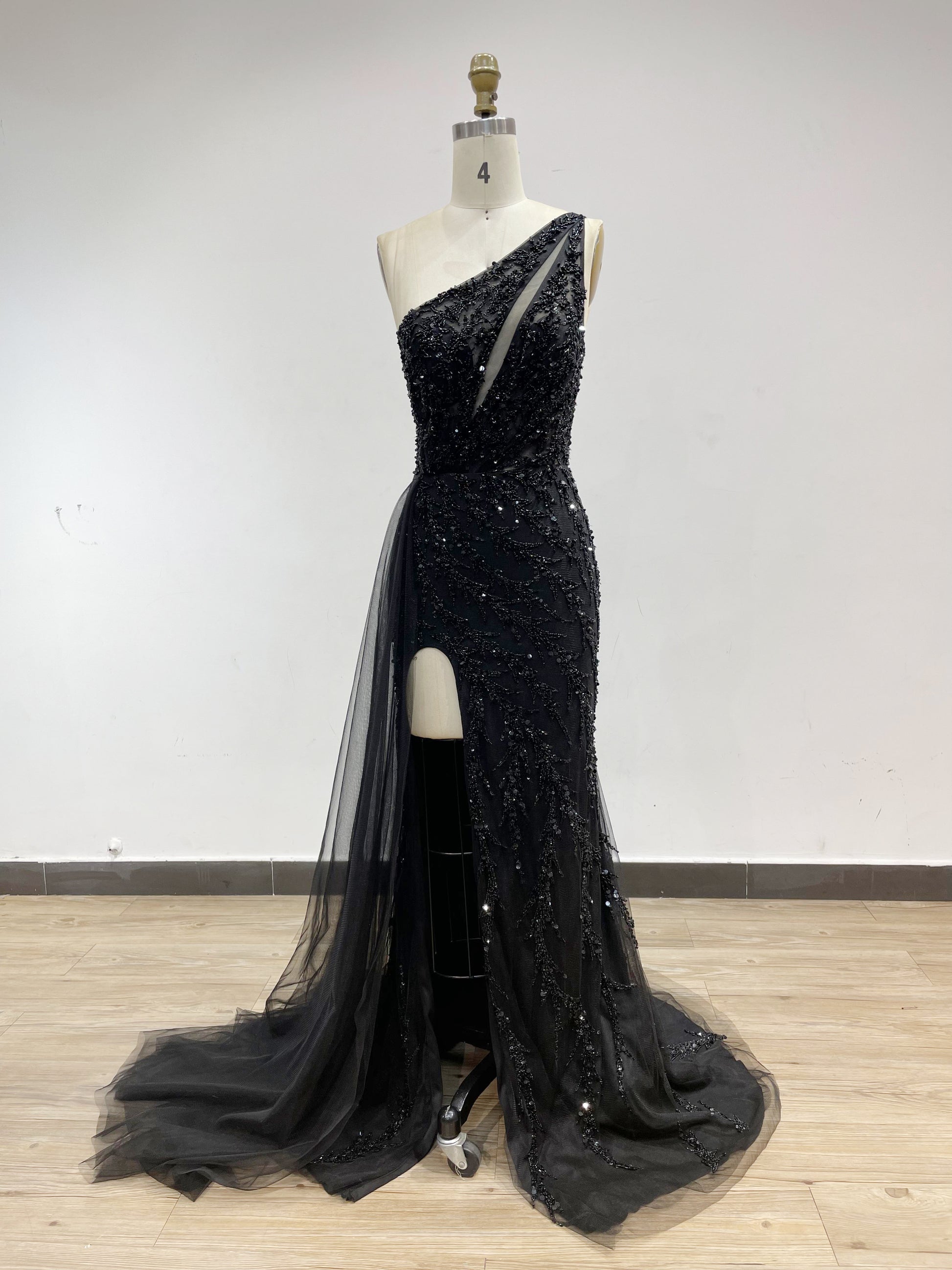 Luxury One Shoulder Sheer Beading High Split Evening Party Dress DDS057