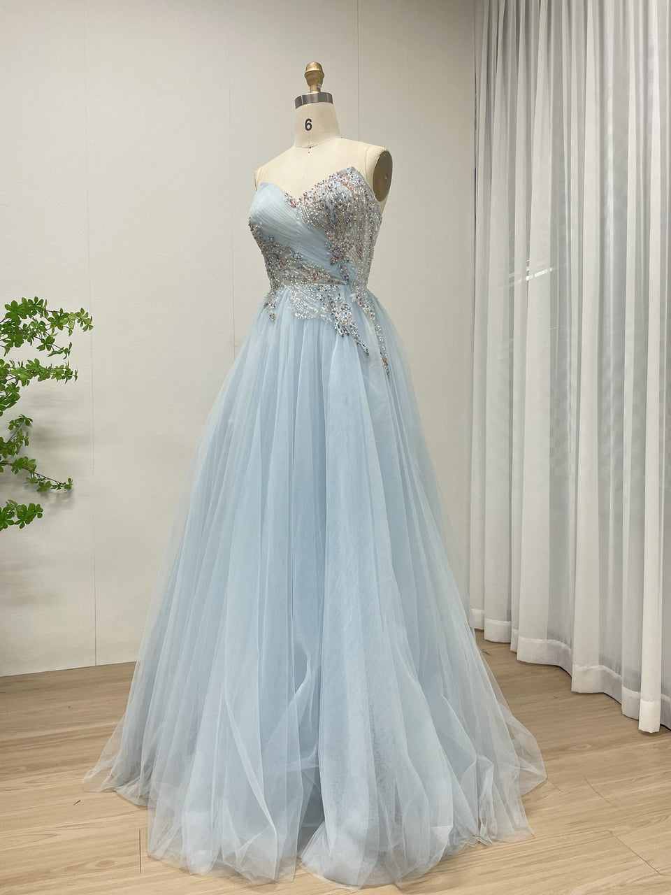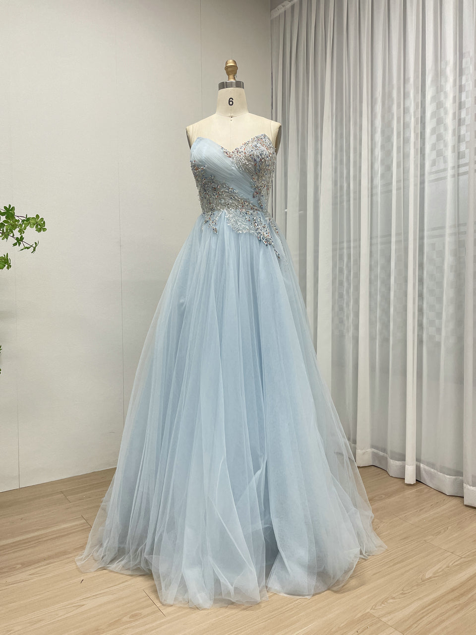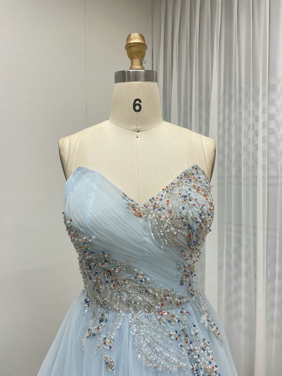 Luxury Sleeveless Sweetheart NecklineTulle a Line Gown With Dazzling Colorful Beads Suitable for Prom Long Dress MB40311