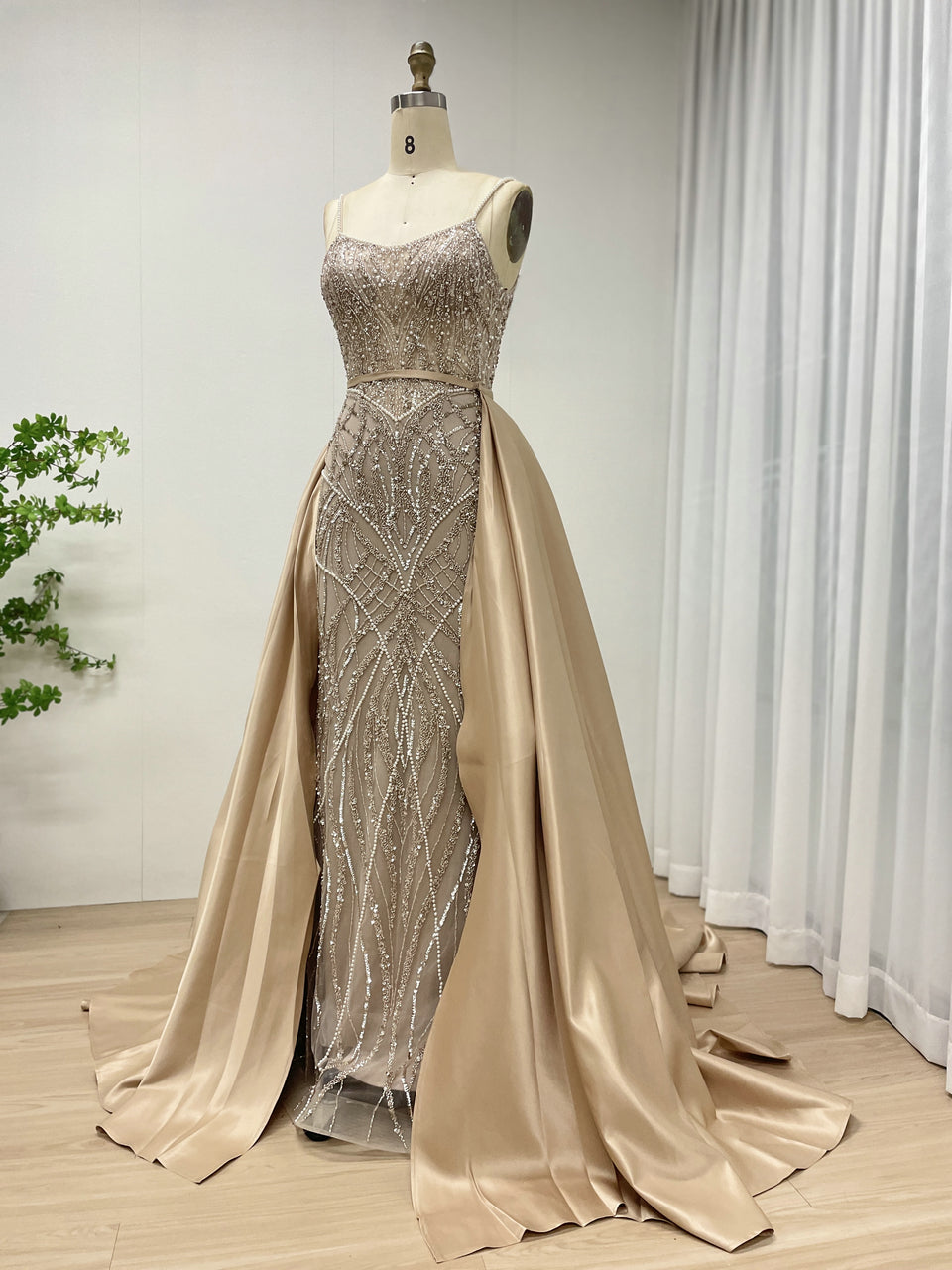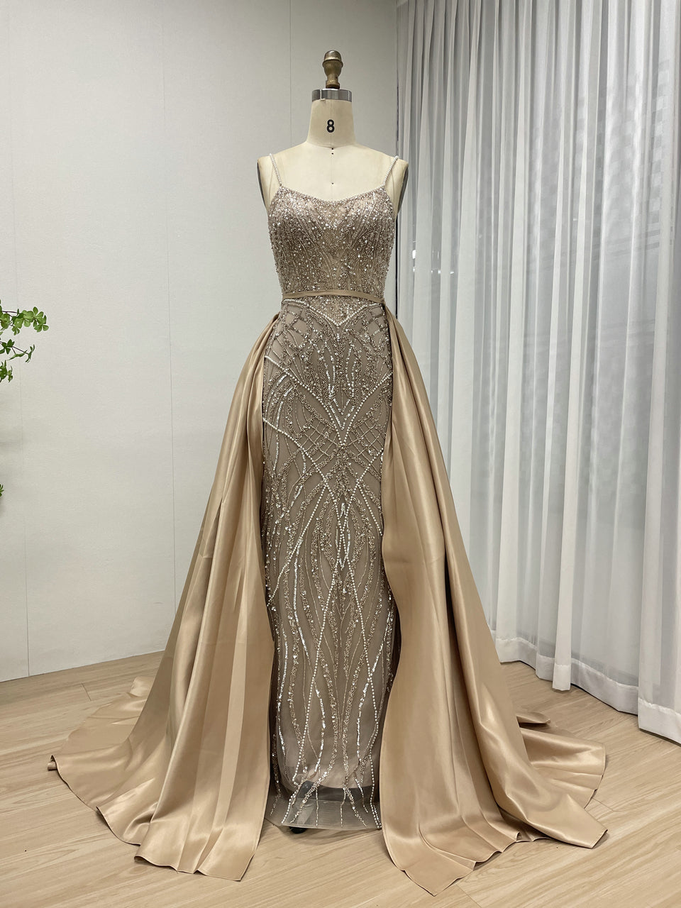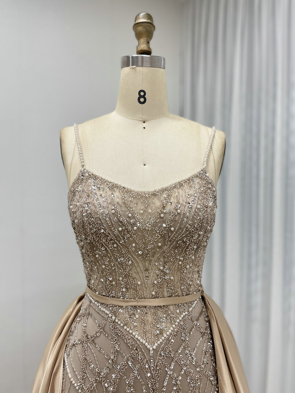Luxury Spaghetti Strap Gown Embellished With Intricate Beadwork and Detachable Back Train MB40248B