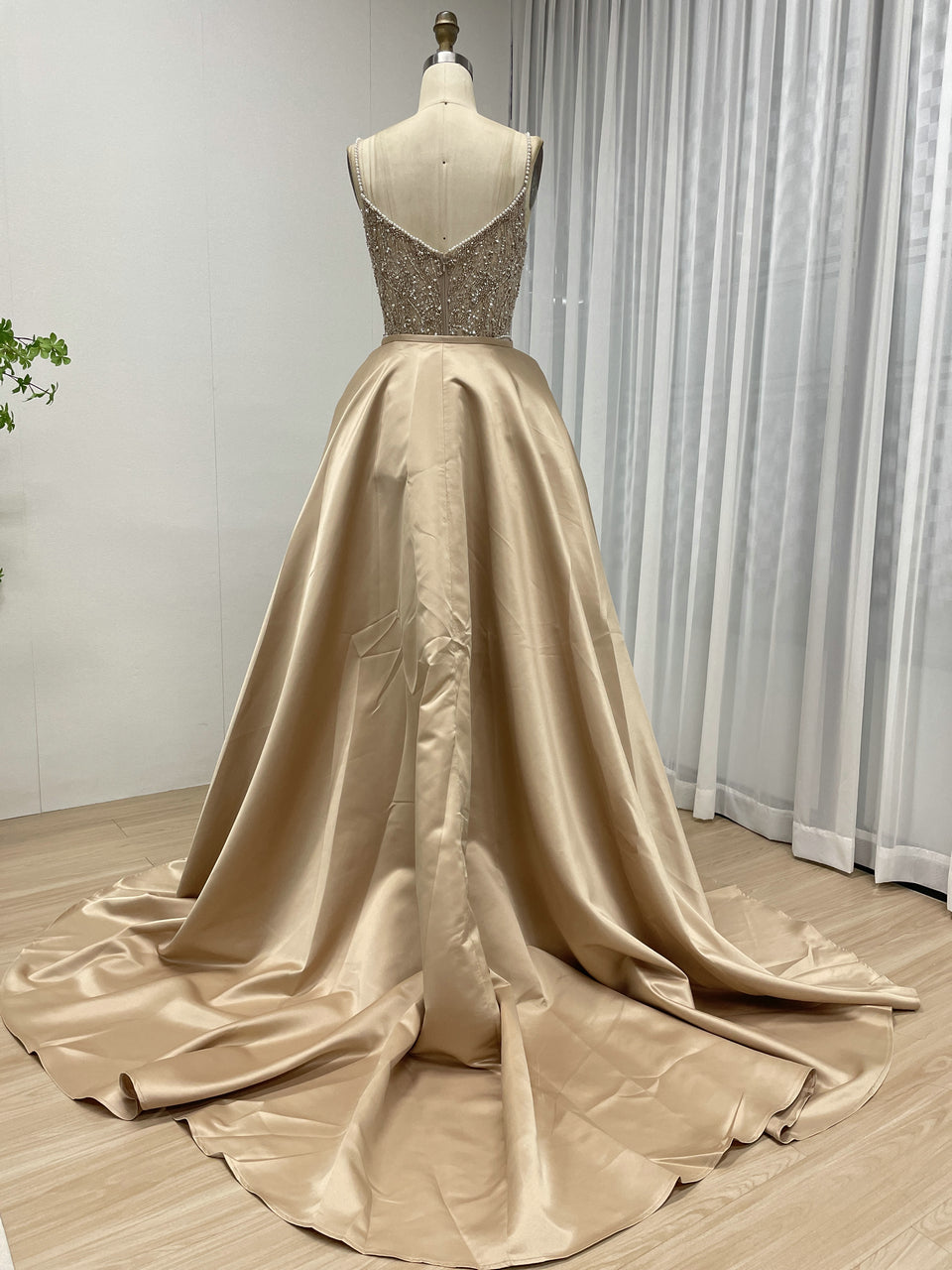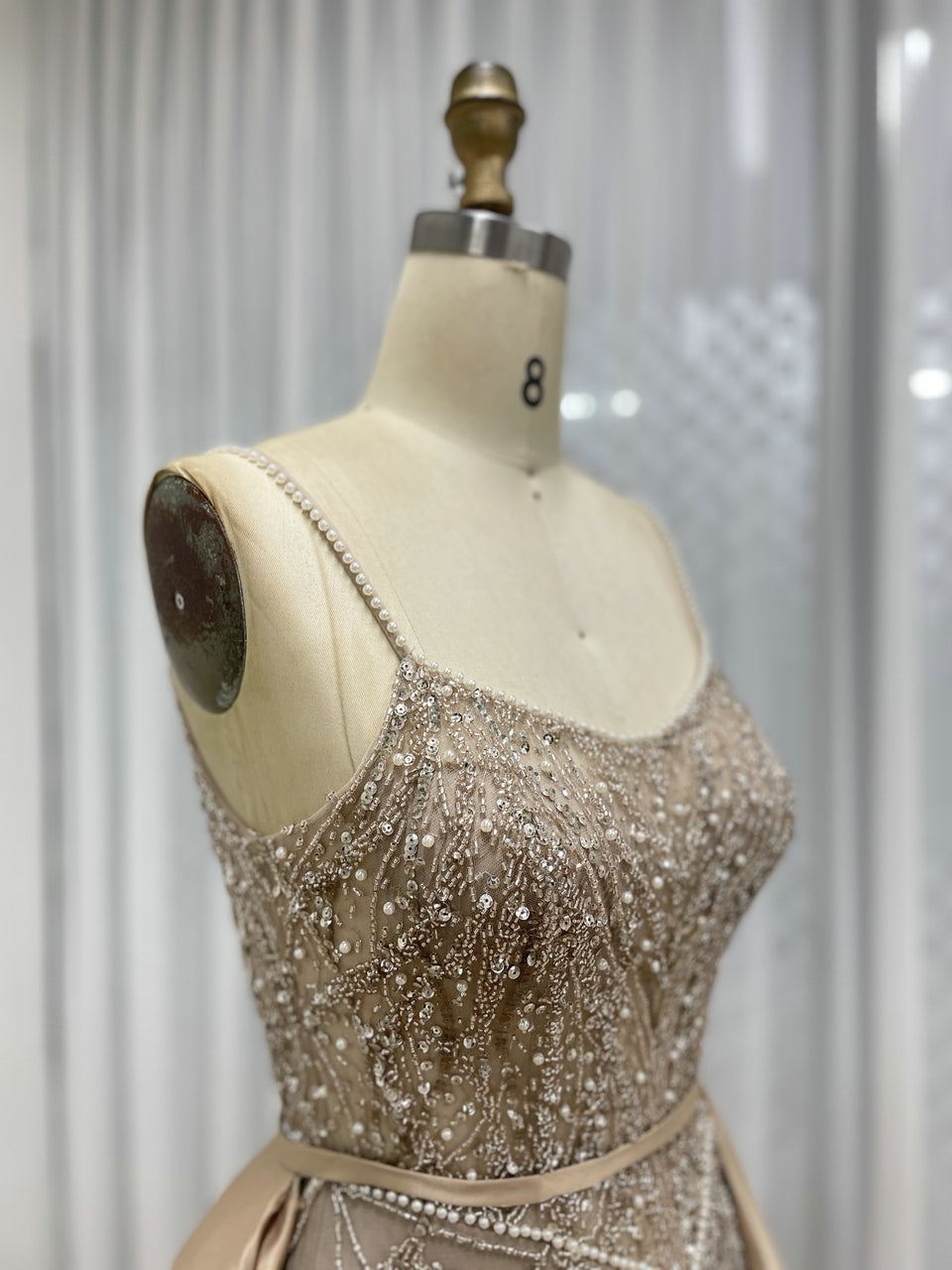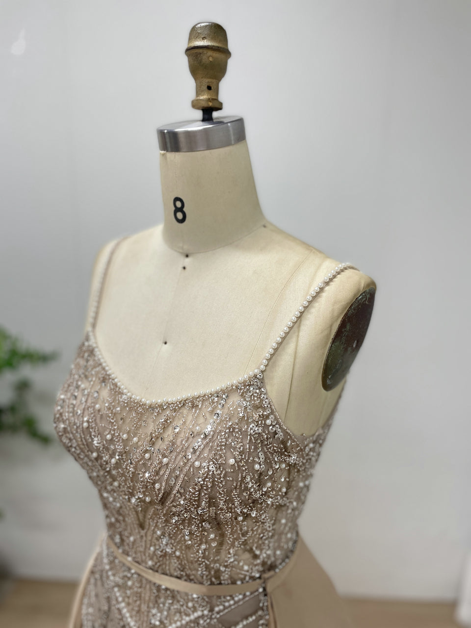 Luxury Spaghetti Strap Gown Embellished With Intricate Beadwork and Detachable Back Train MB40248B