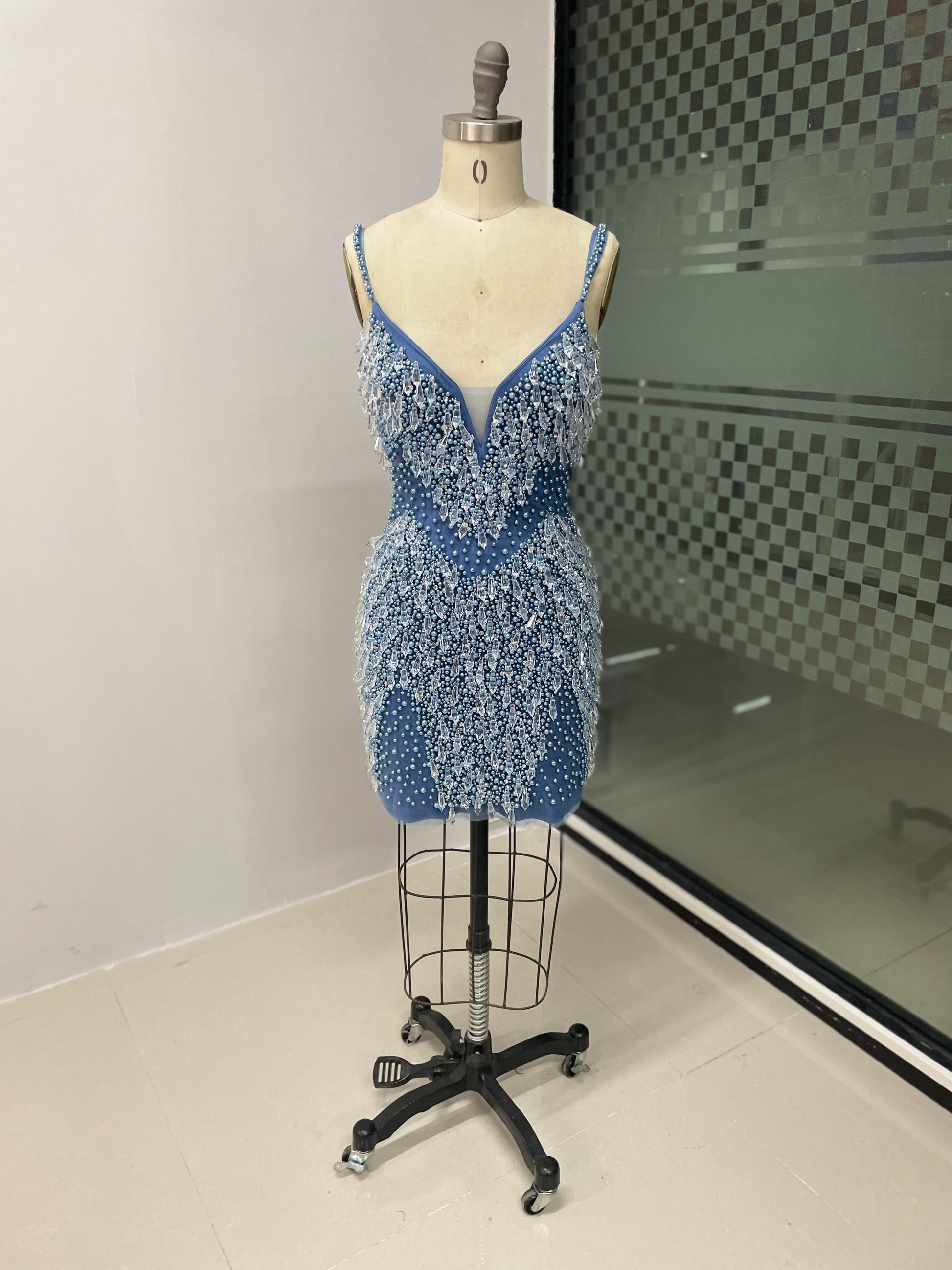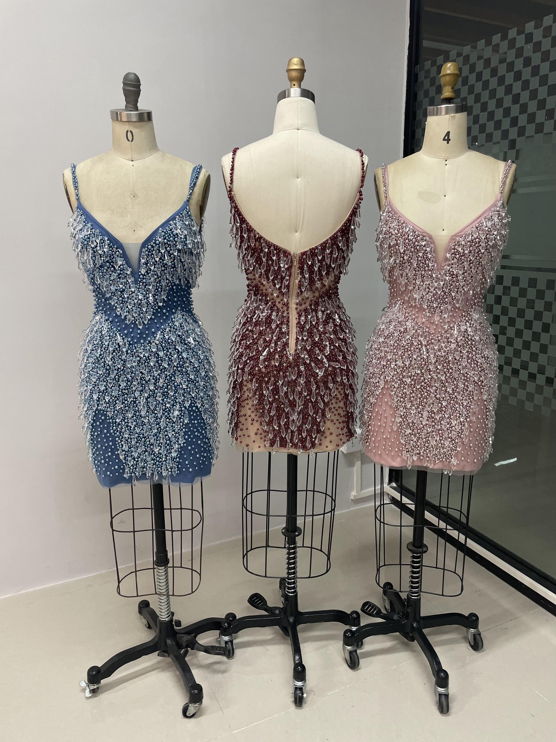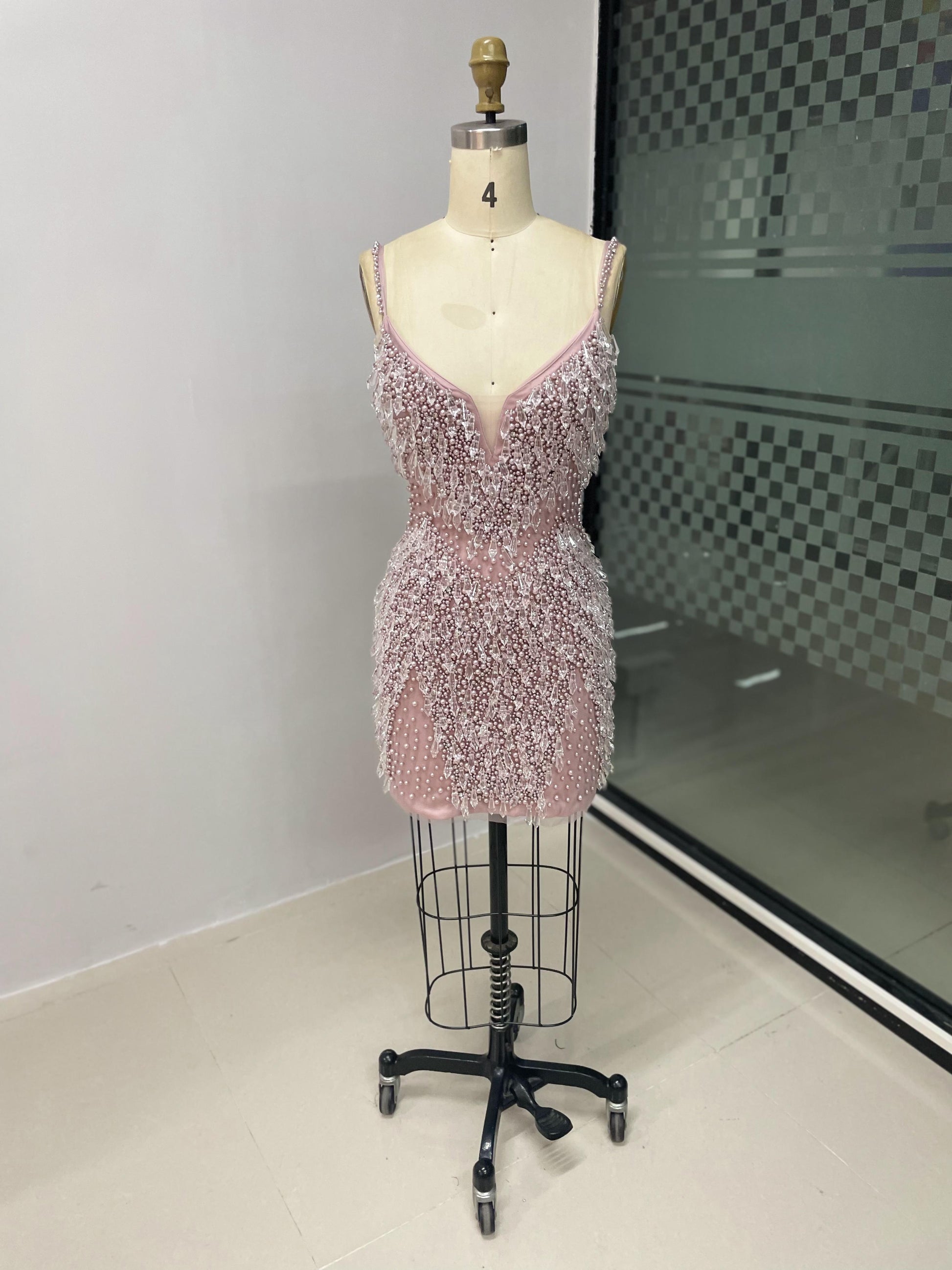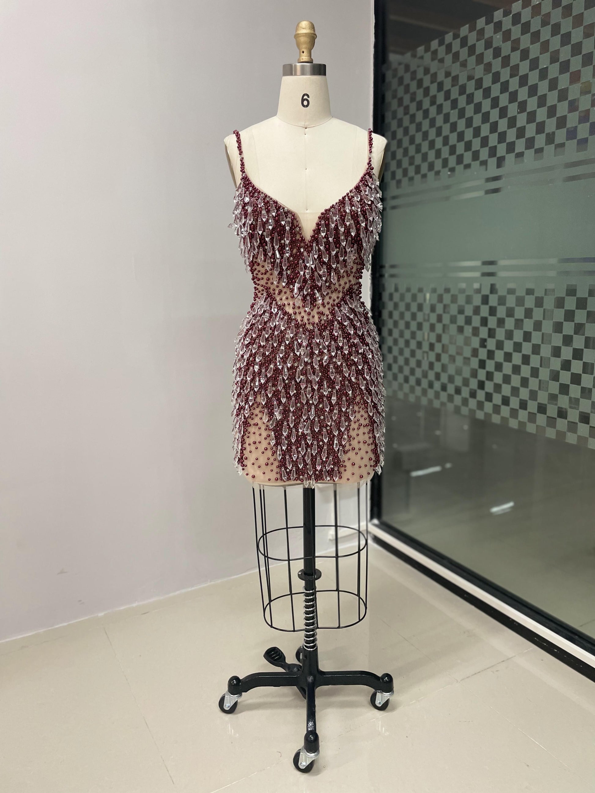 Luxury Strap Beading Crystal Short Party Dress MB40018