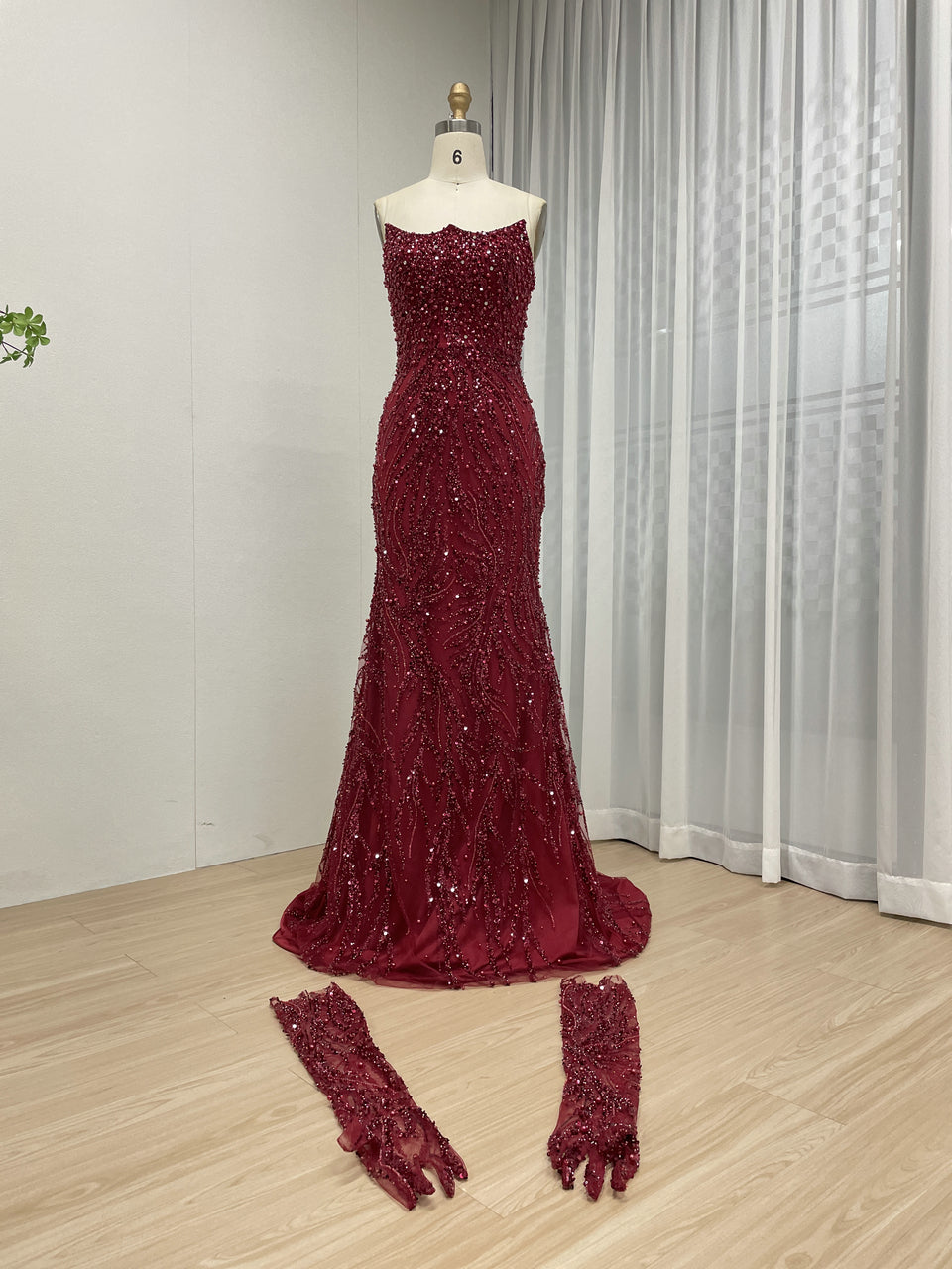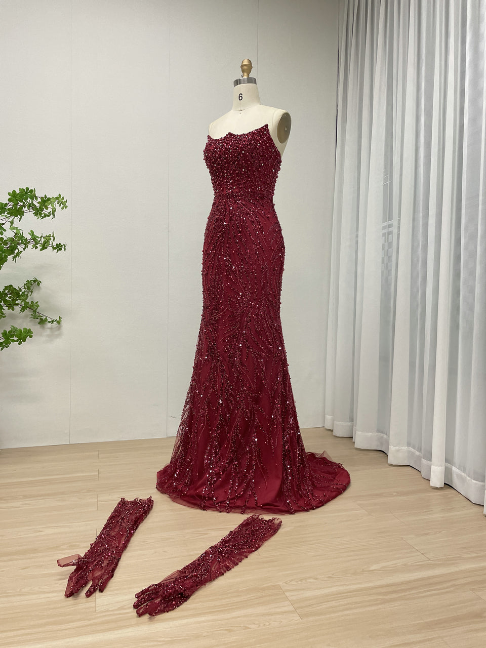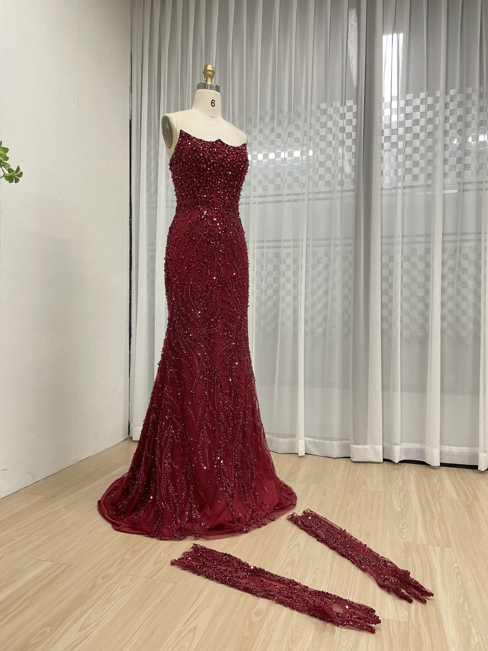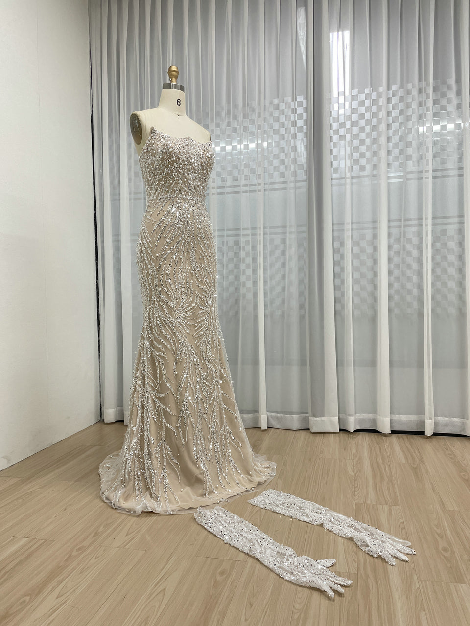 Luxury Strapless Beaded Evening Gown Suitable for Banquet With Gloves MB40156-2