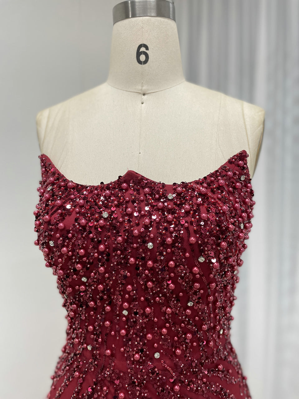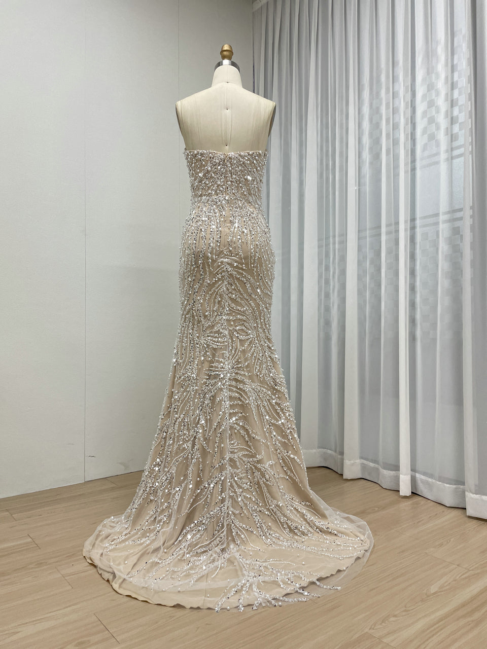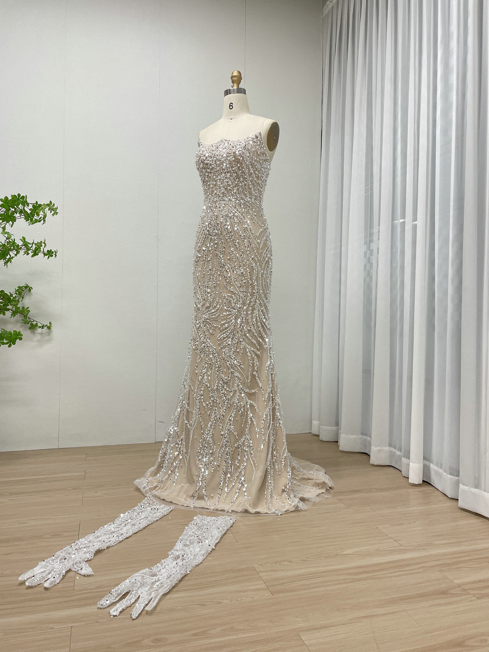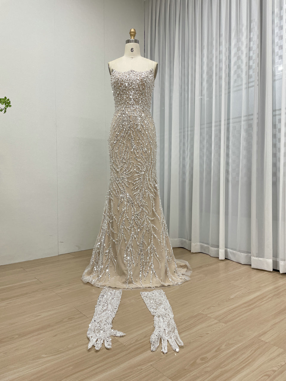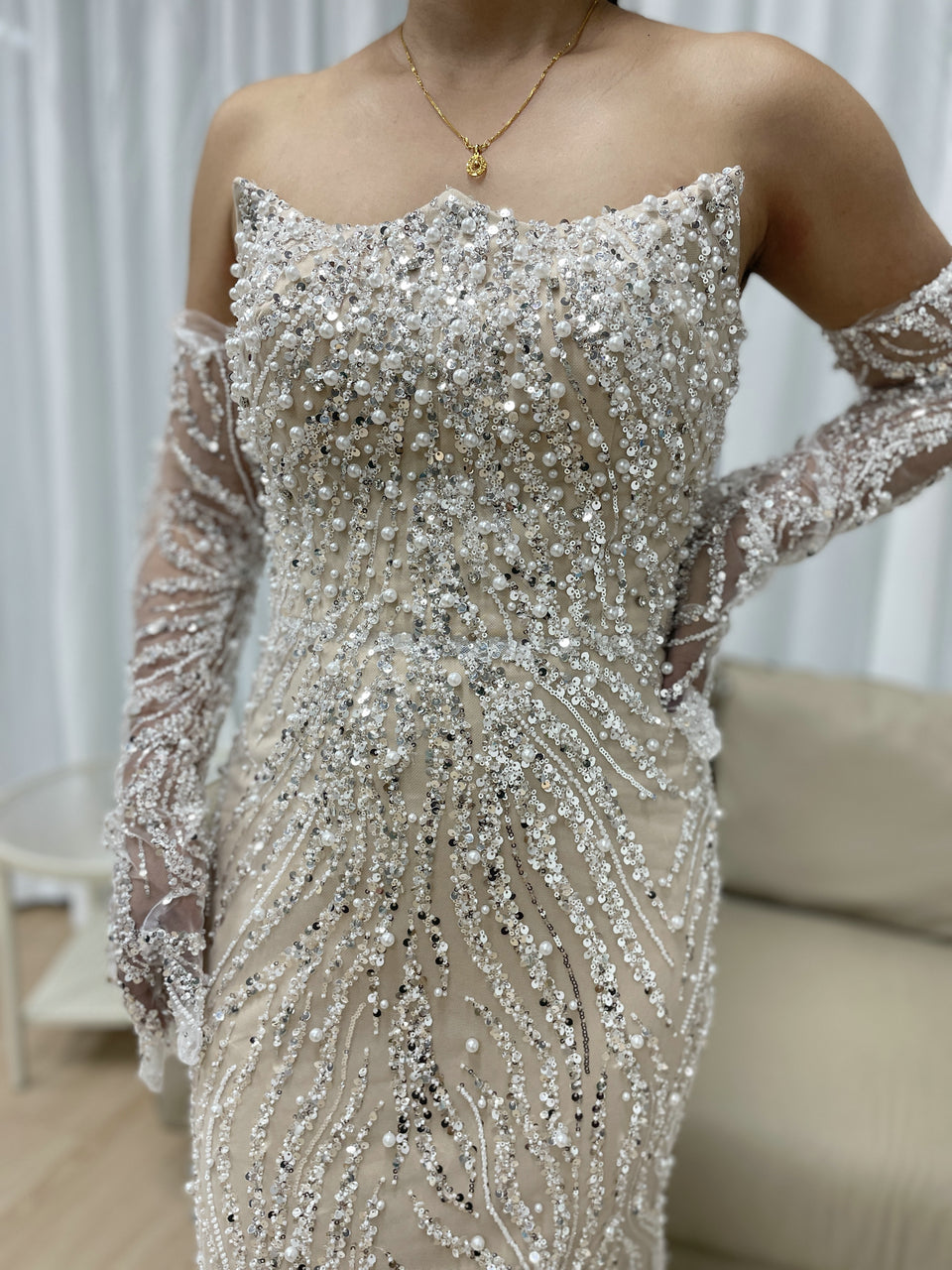 Luxury Strapless Beaded Evening Gown Suitable for Banquet With Gloves MB40156-2
