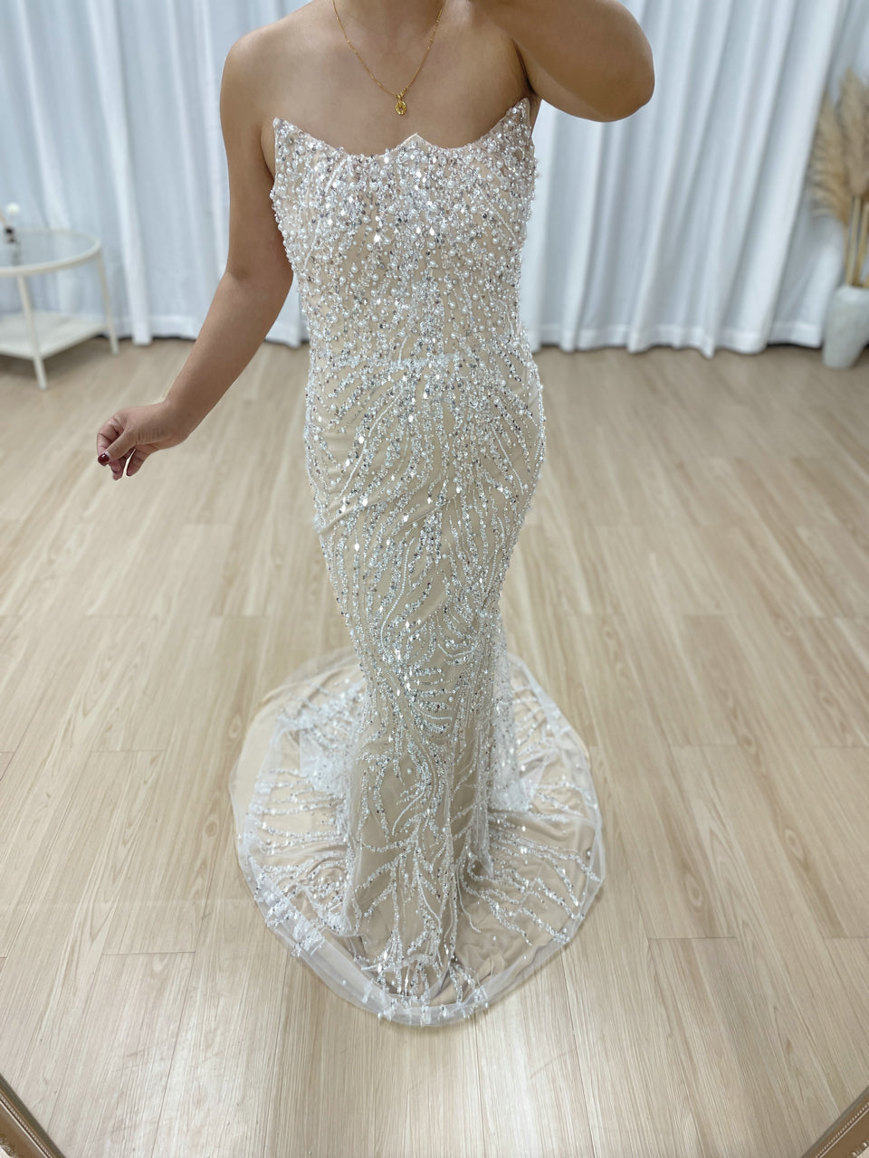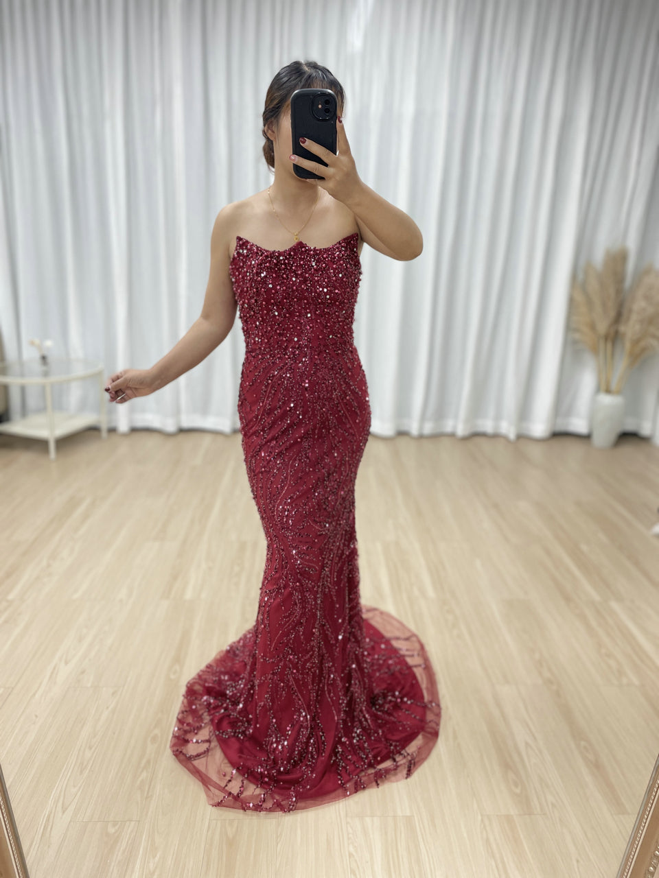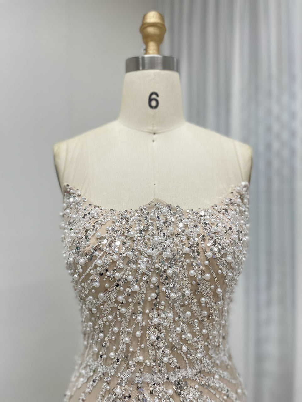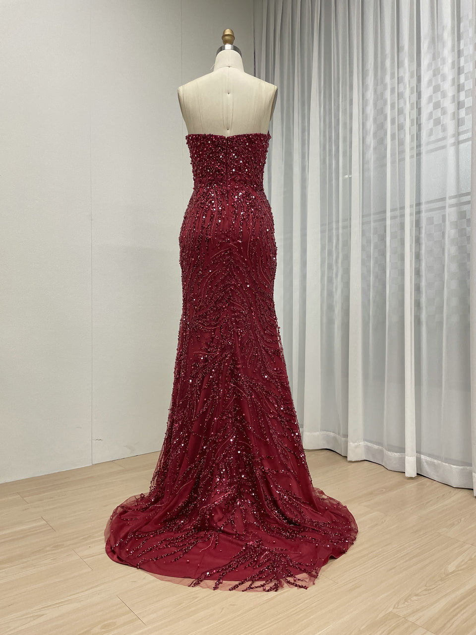 Luxury Strapless Beaded Evening Gown Suitable for Banquet With Gloves MB40156-2