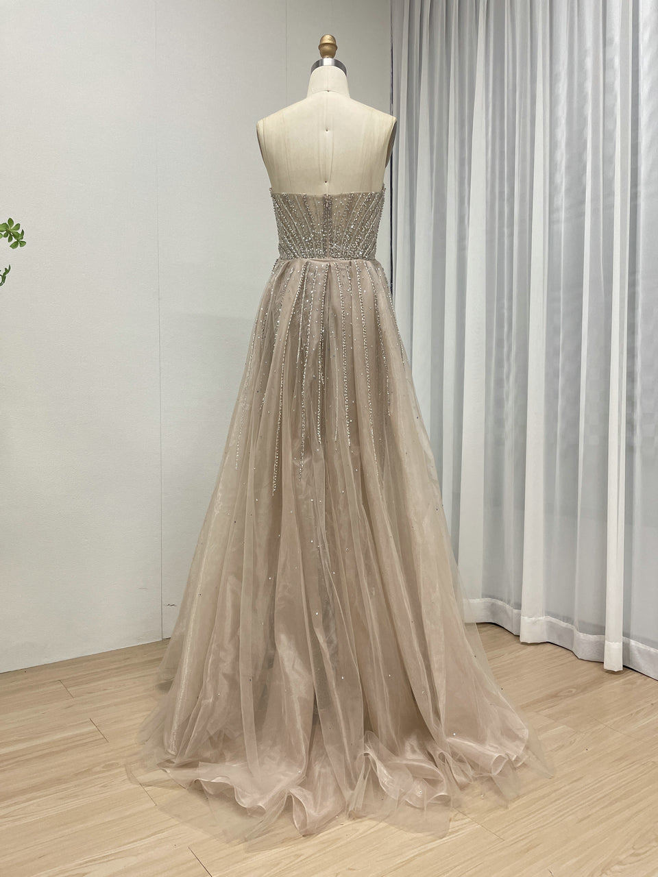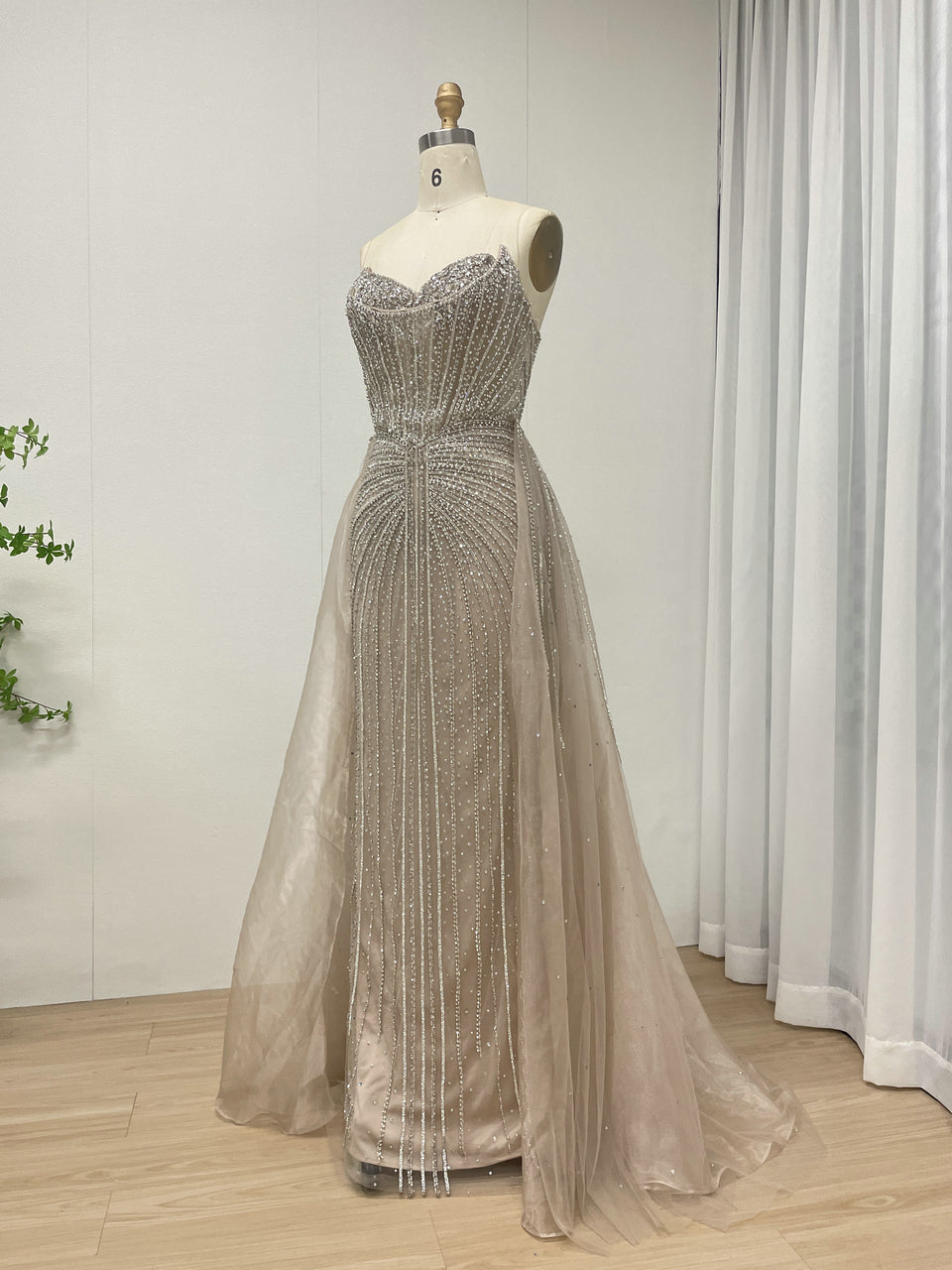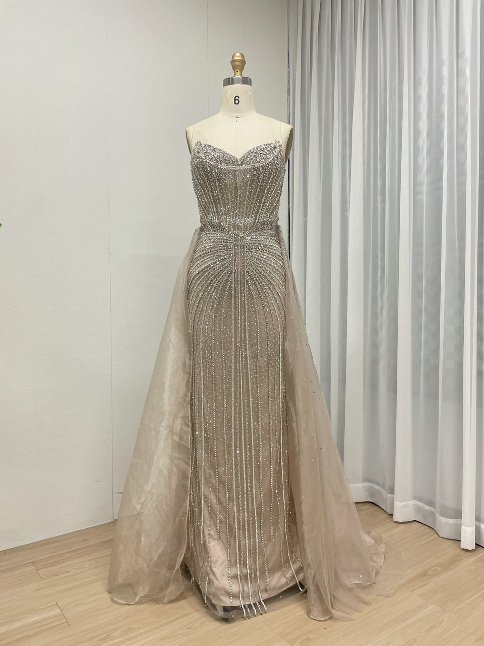 Luxury Strapless Handmade Beaded Decoration Evening Gown for Formal Occasion MB40365